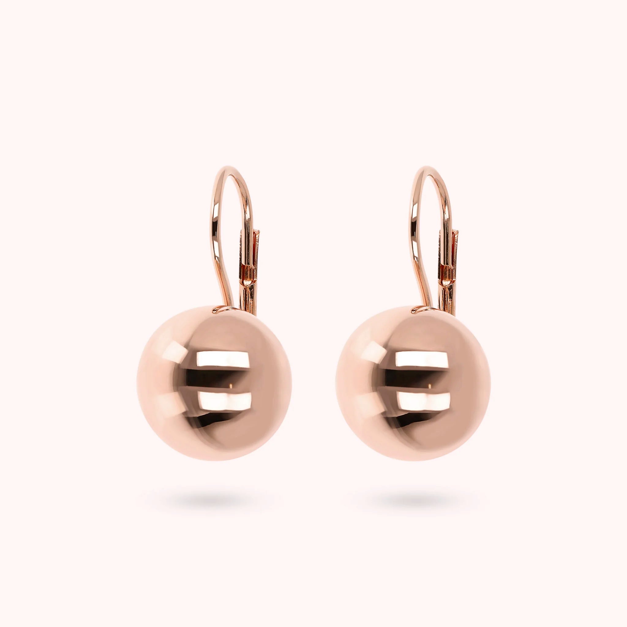 Bronzallure earrings made of Golden Rosé alloy, 18kt rose gold plated with round pendant element (13 mm). The earring has a hook fastening, length of 2.3 cm.