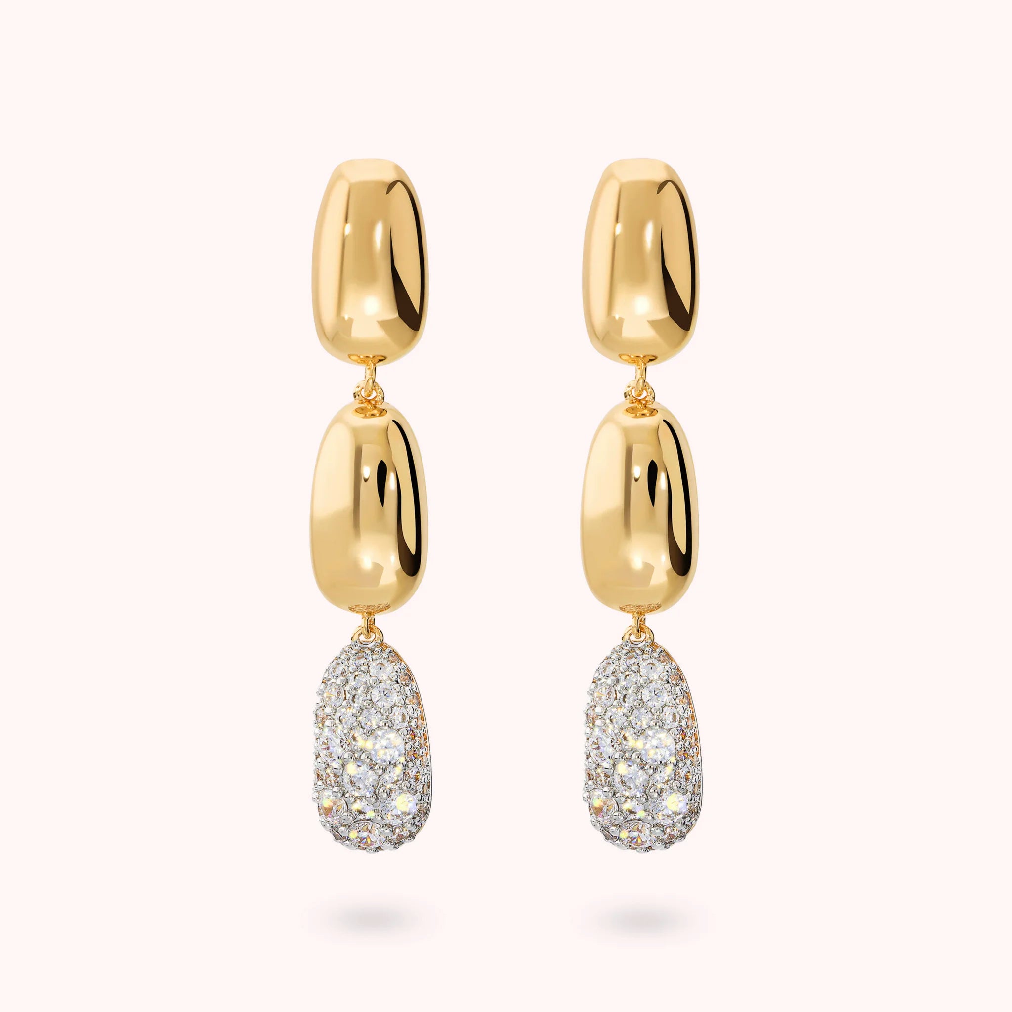 Pendant Earrings with Shiny Nuggets and Cubic Zirconia Pavé