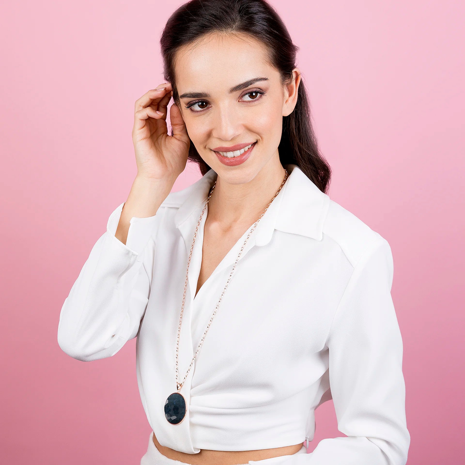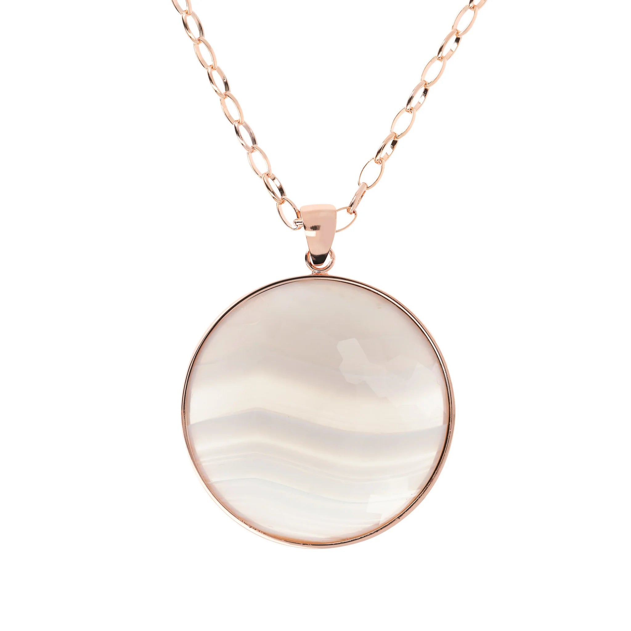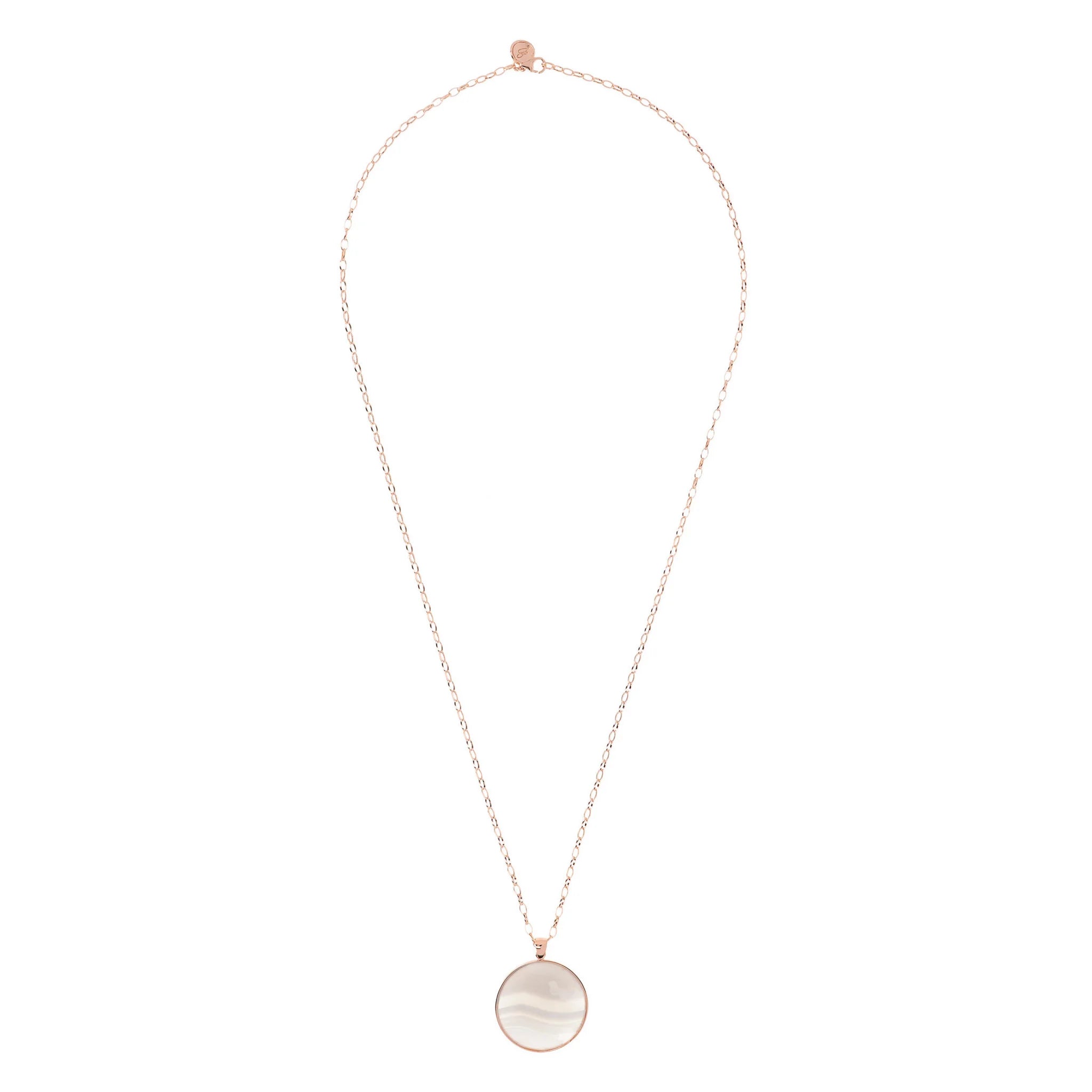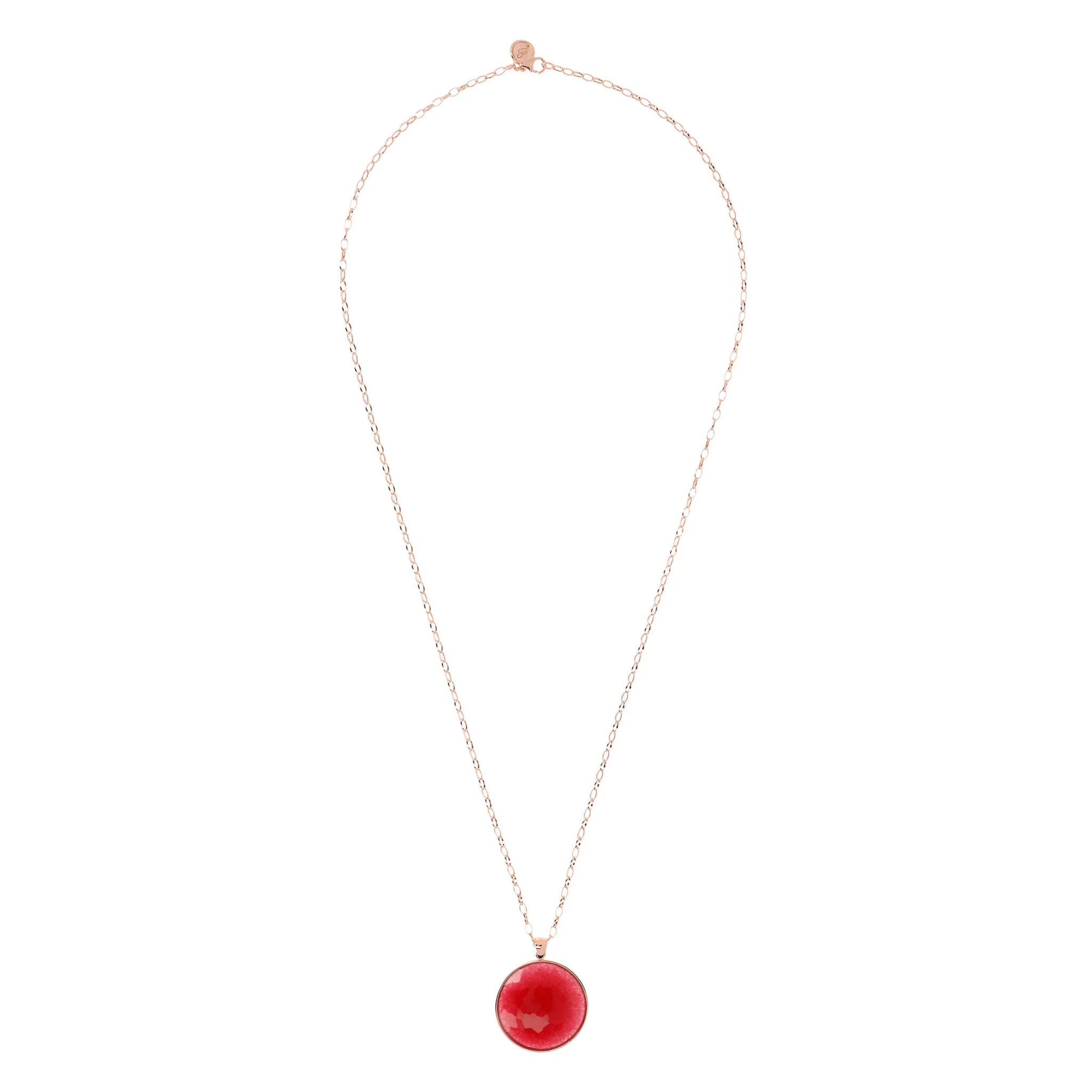 The necklace with natural stone maxi pendant from the Alba collection is enriched with new nuances for a unique jewelery experience. The Golden Rose jewel is offered in white agate, denim blue, red quartz and black onyx.