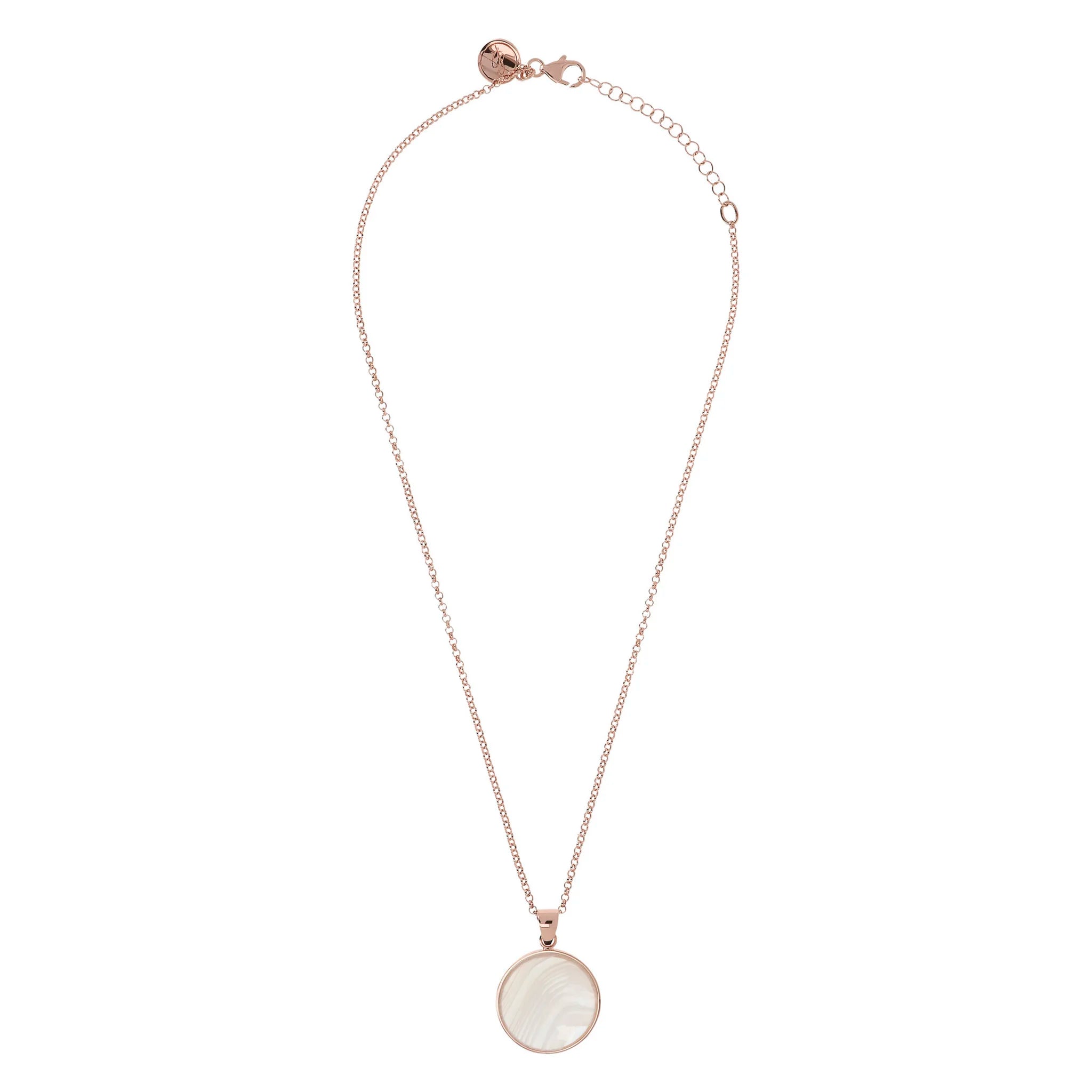 The necklace with medium pendant in natural stone from the Alba collection is enriched with new nuances for a unique jewelery experience. The Golden Rose jewel is offered in white agate, denim blue, red quartz and black onyx.