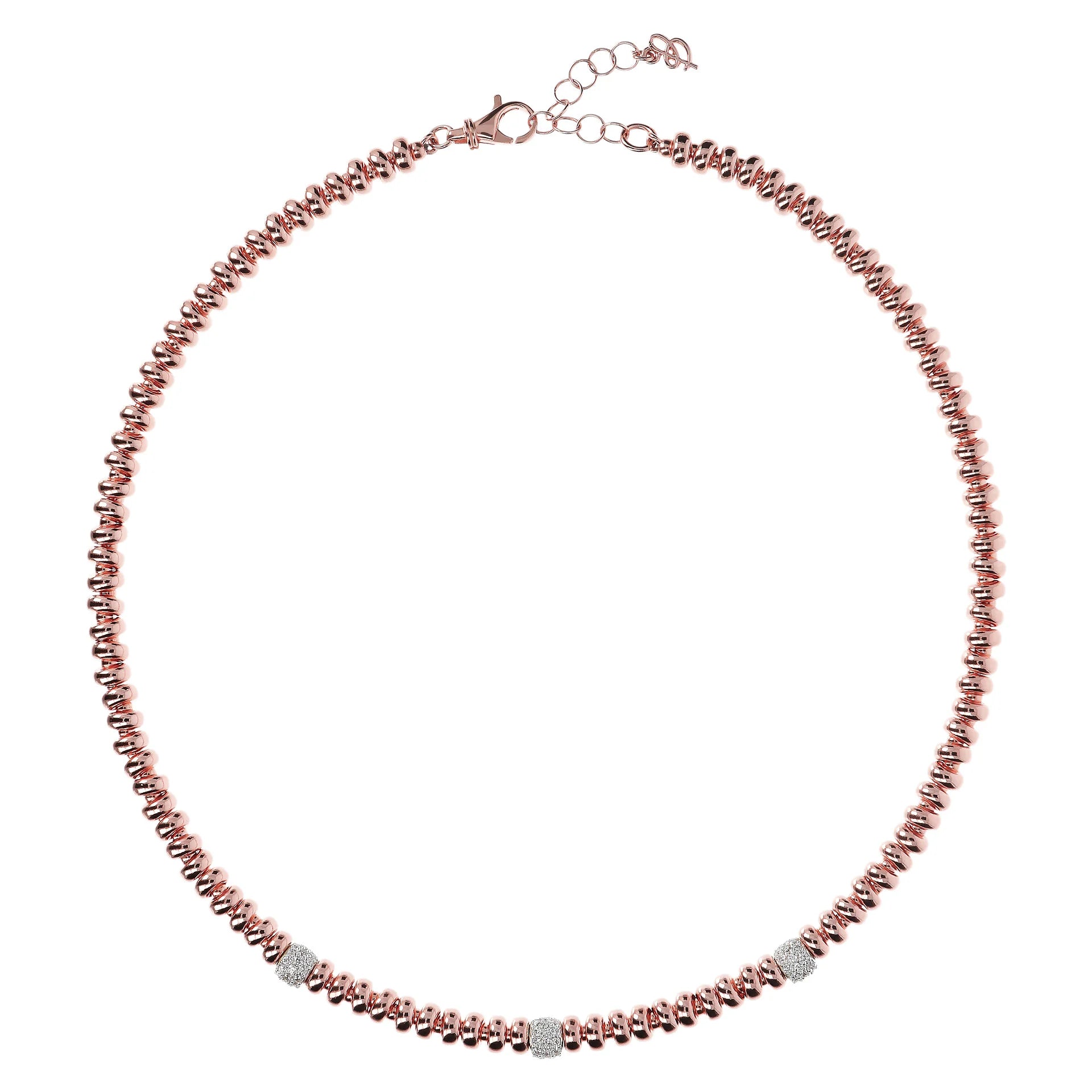 Bronzallure choker necklace made on a Golden Rosé base, 18kt rose gold plated, with three pavé elements in cubic zirconia, luminous quality, white in color; lobster clasp with extender. Elegant creation, with a perfect design to make your look shine.