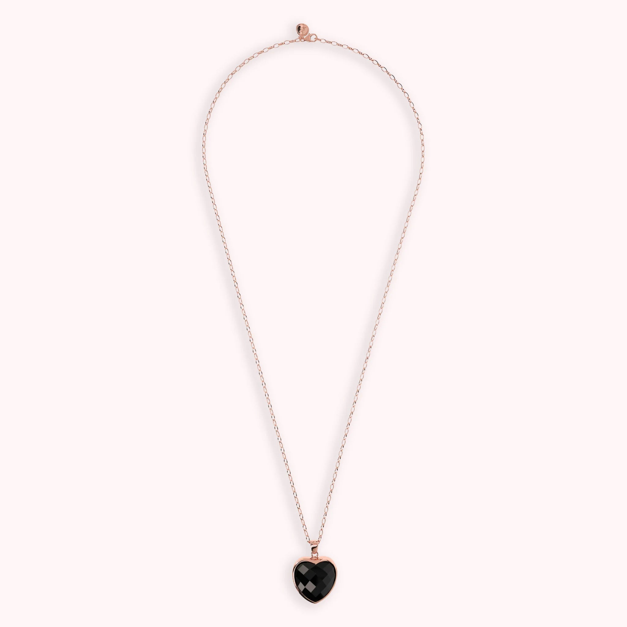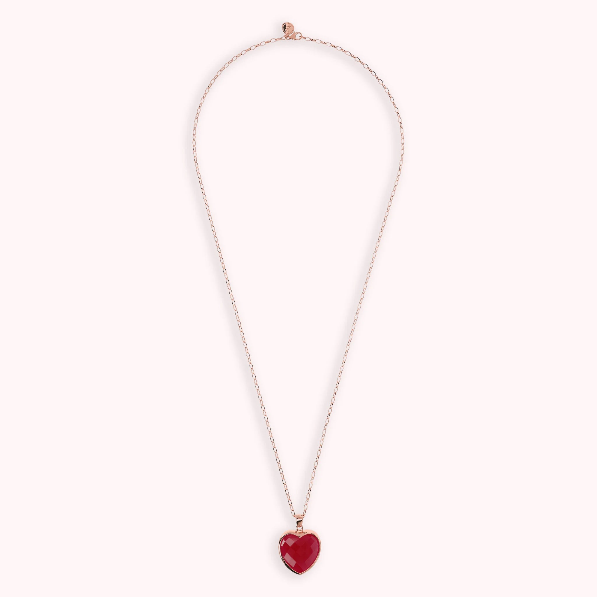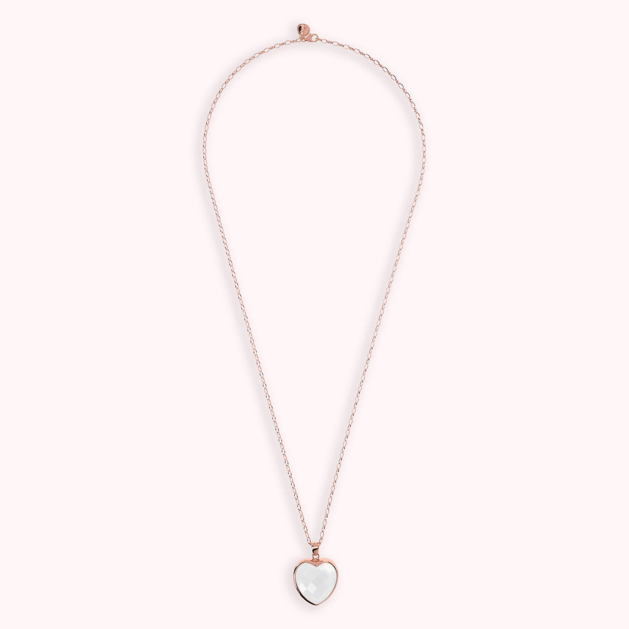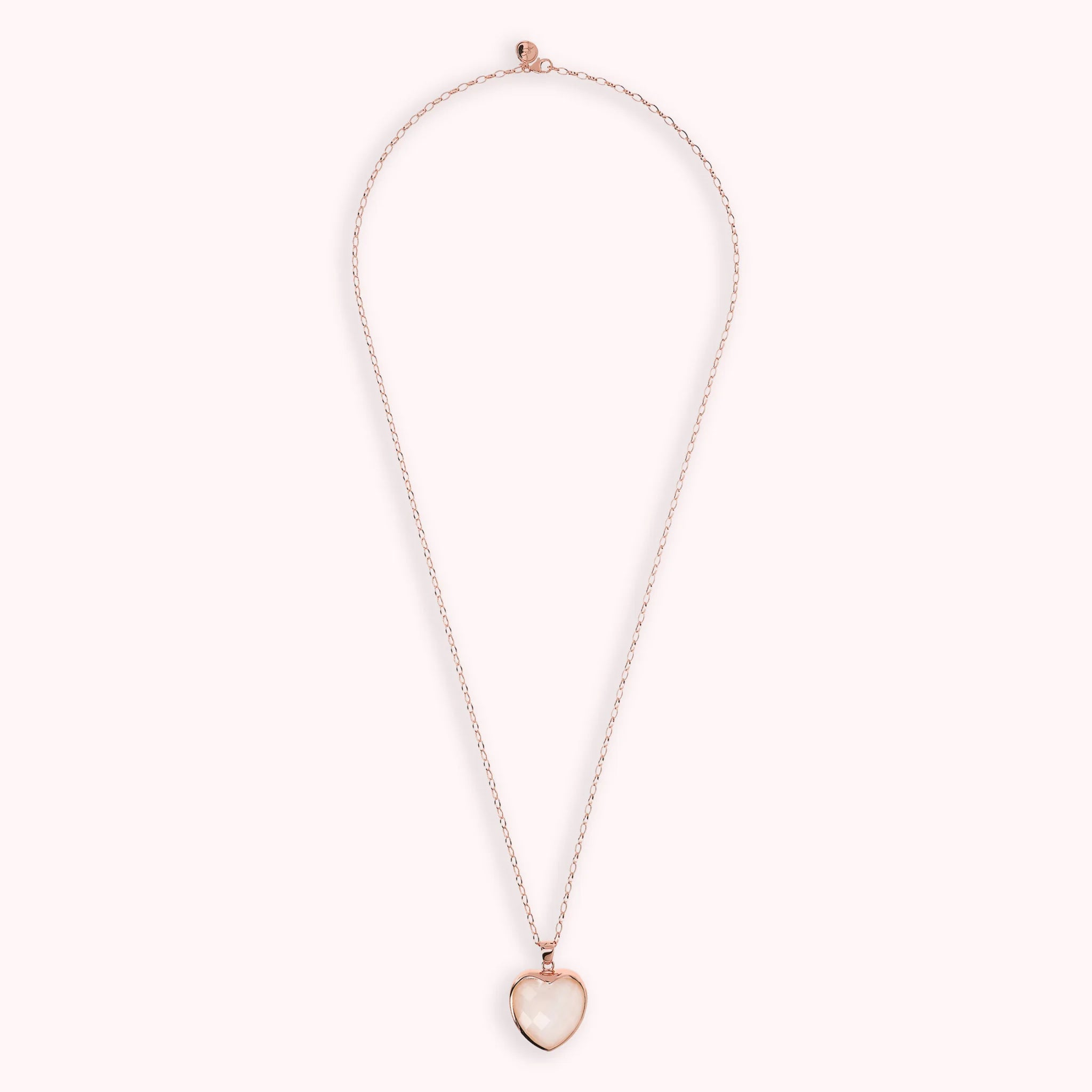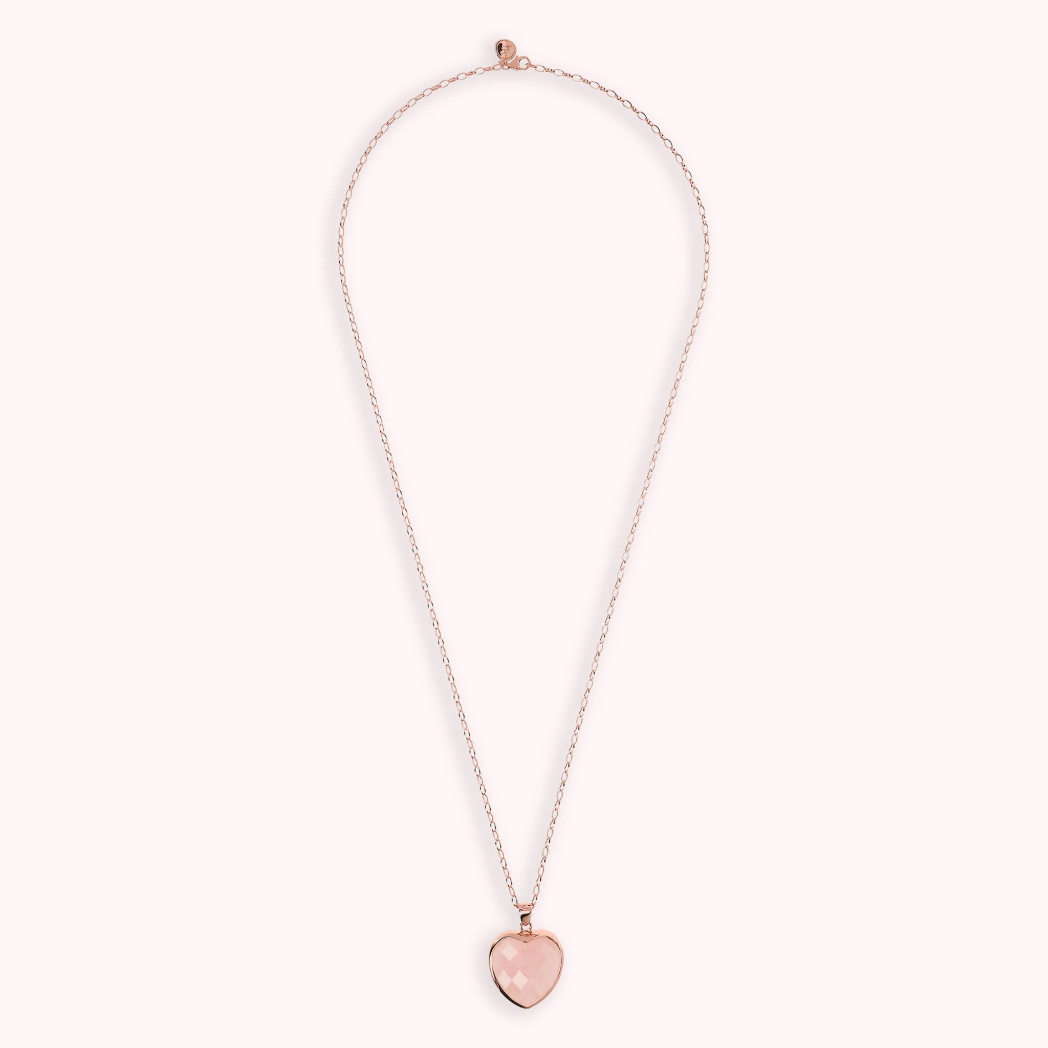 Bronzallure long necklace made of Golden Rosé alloy, 18kt rose gold plated, with oval rolo chain embellished with a heart-shaped pendant in faceted stone; lobster clasp closure. Elegant creation, with a perfect design to make your look shine.