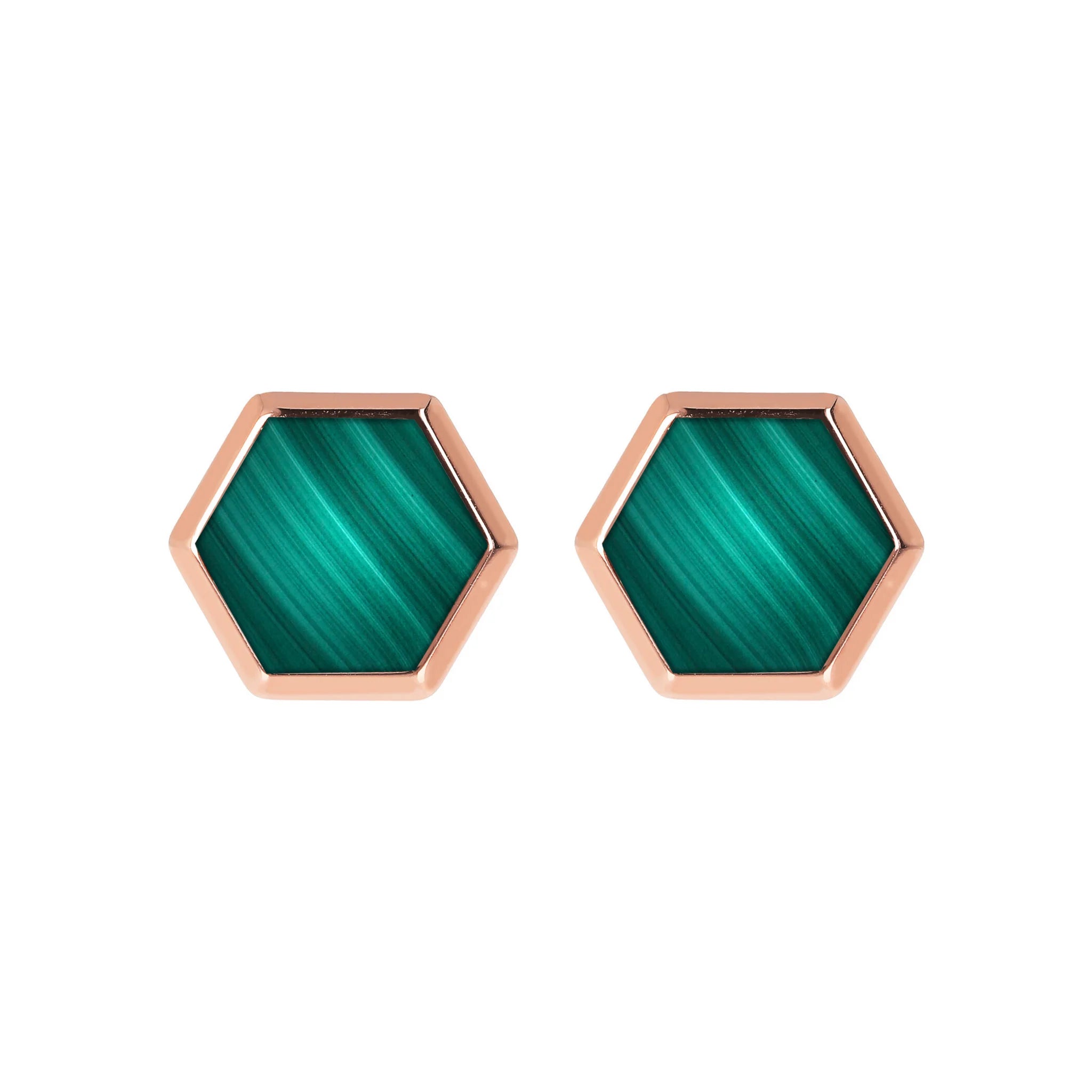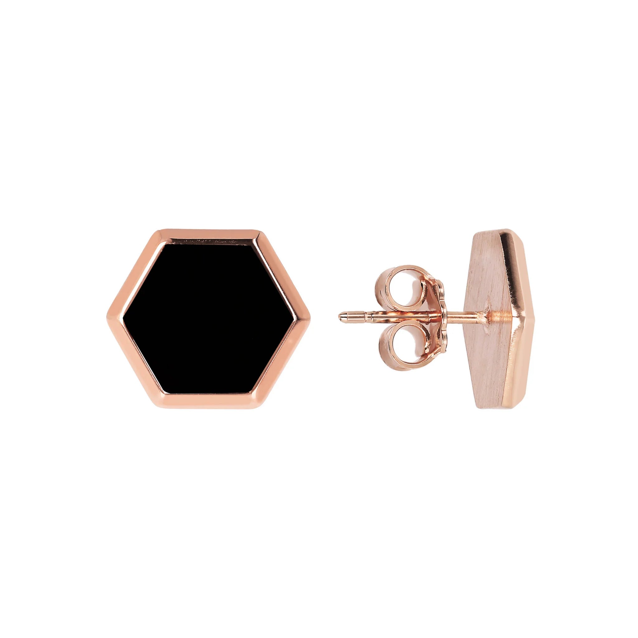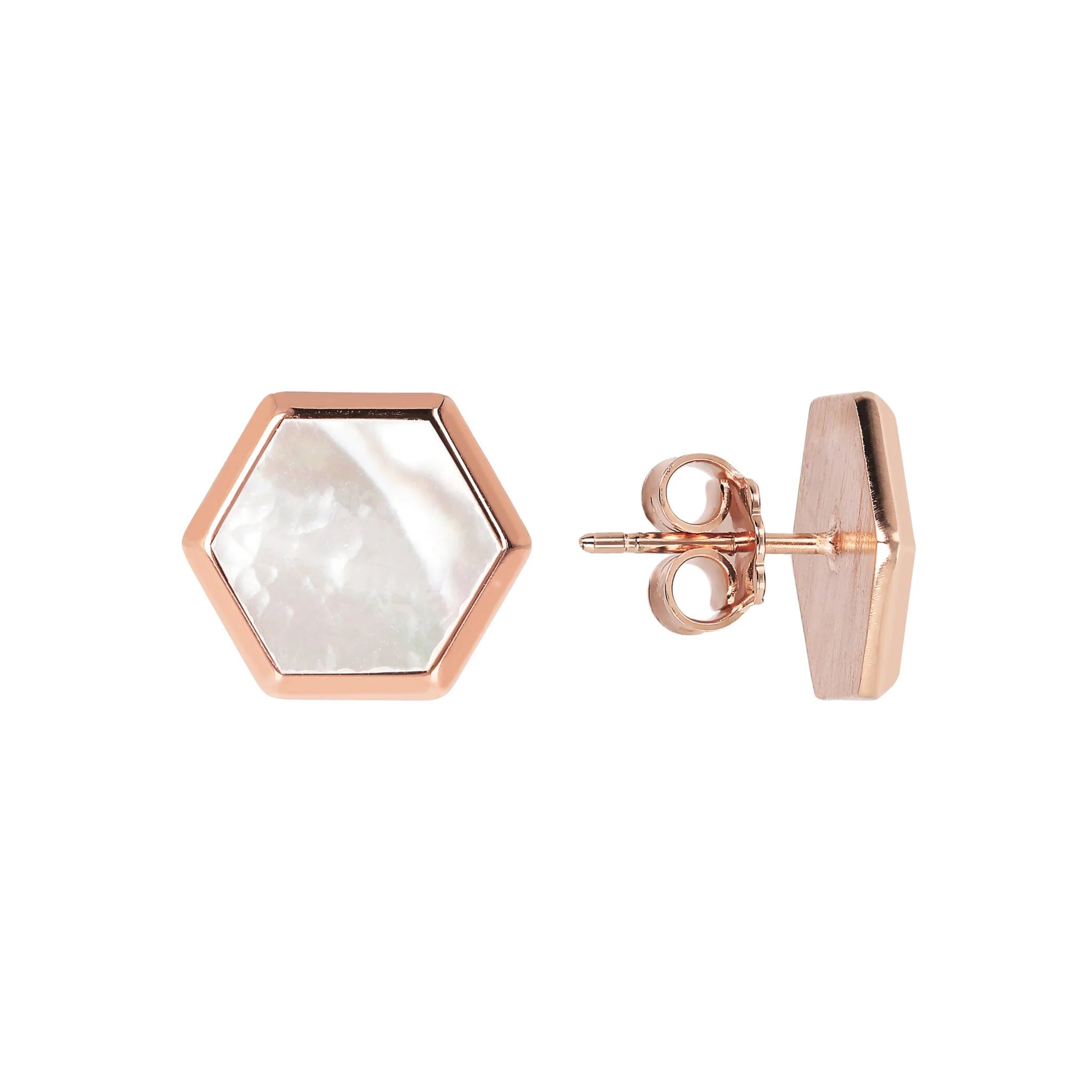 Bronzallure stud earrings made of Golden Rosé alloy, 18kt rose gold plated with flat natural stone hexagon (13 mm) mounted on an 18kt rose gold plated base. The earring features a post and butterfly fastening.