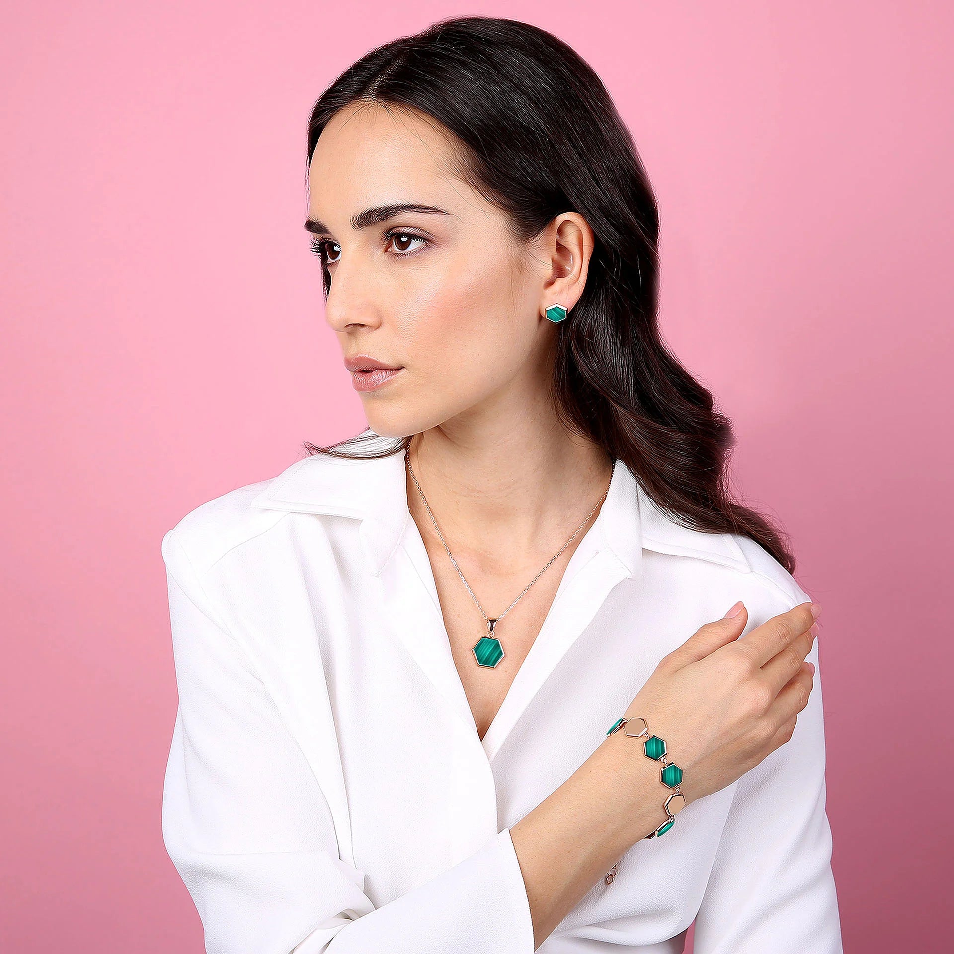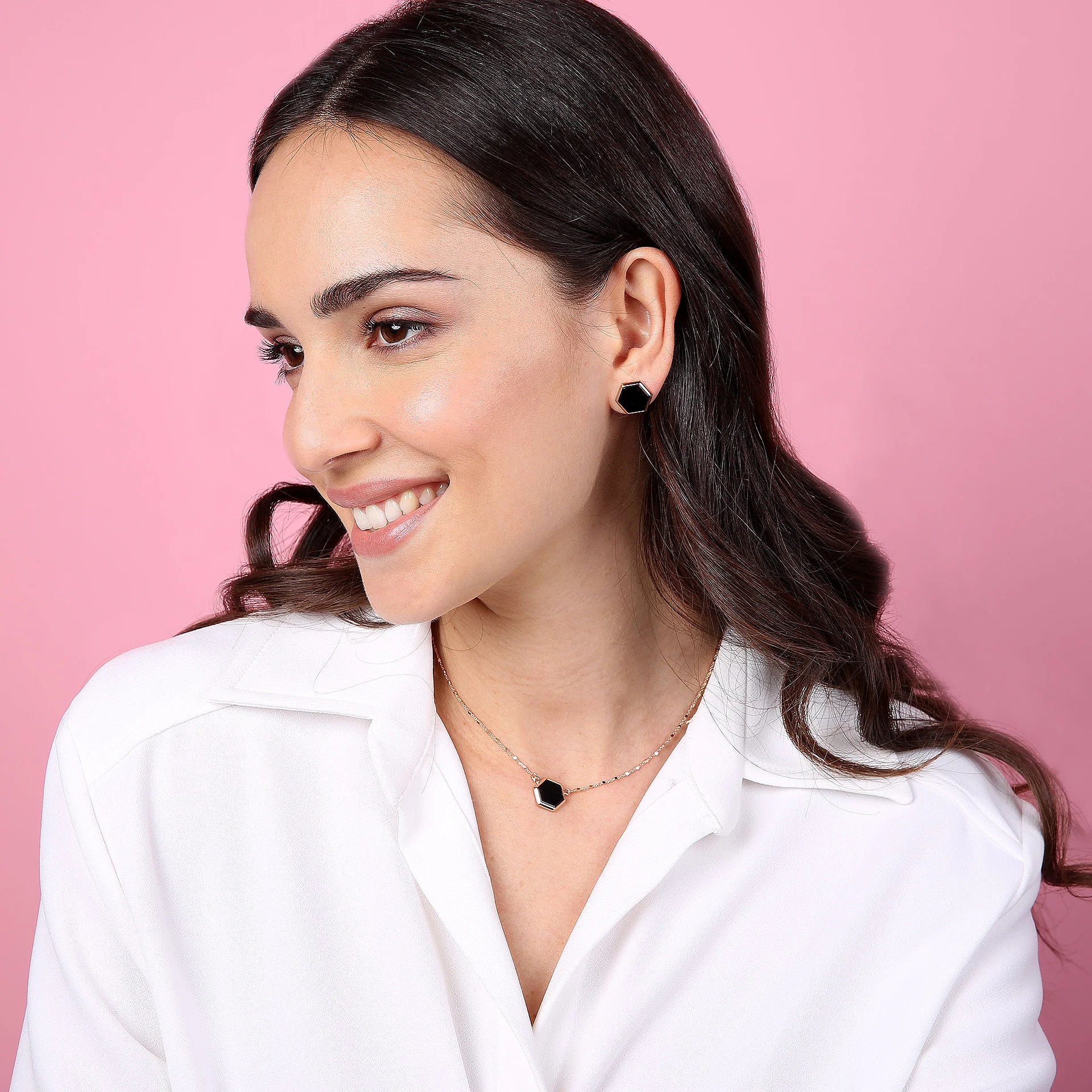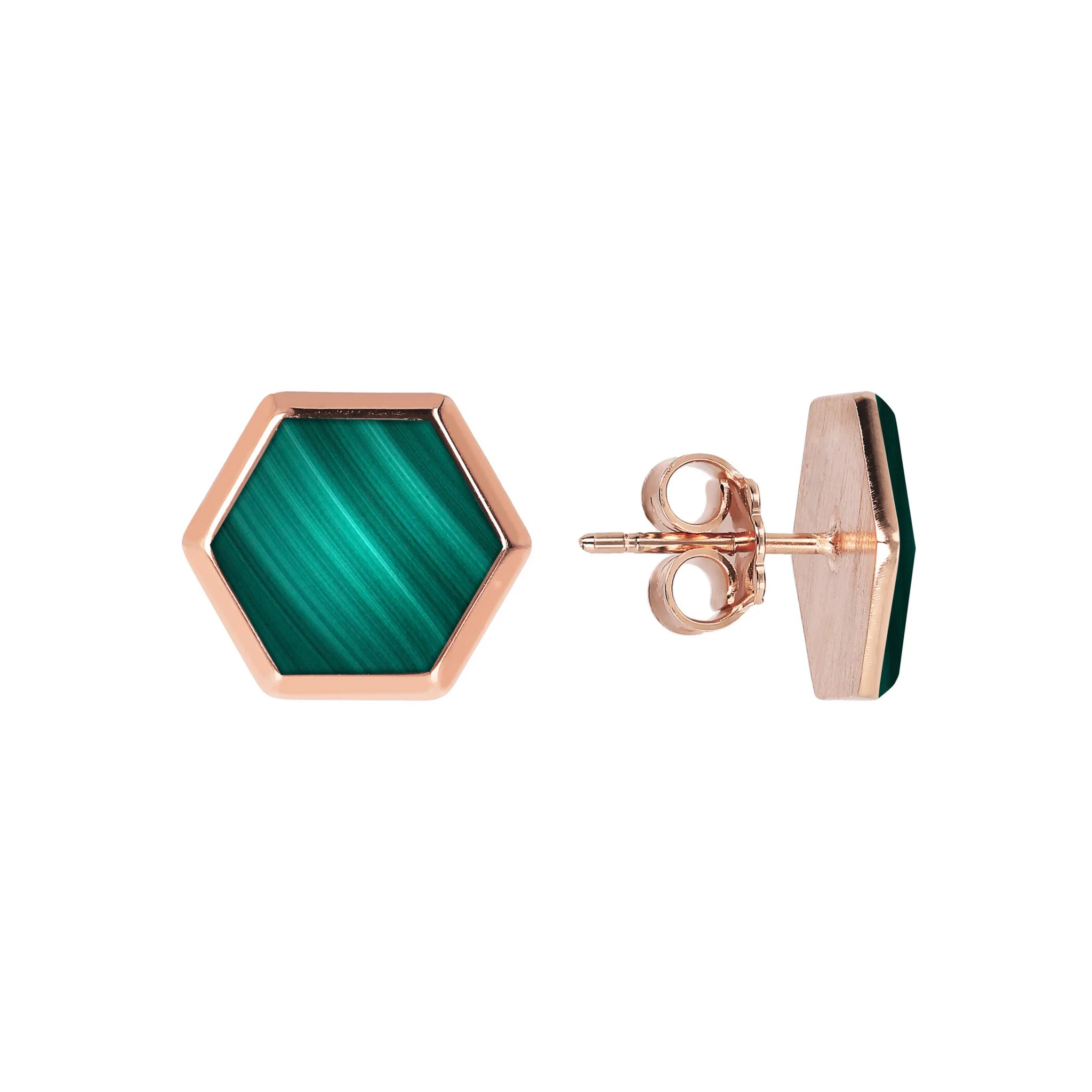 Bronzallure stud earrings made of Golden Rosé alloy, 18kt rose gold plated with flat natural stone hexagon (13 mm) mounted on an 18kt rose gold plated base. The earring features a post and butterfly fastening.
