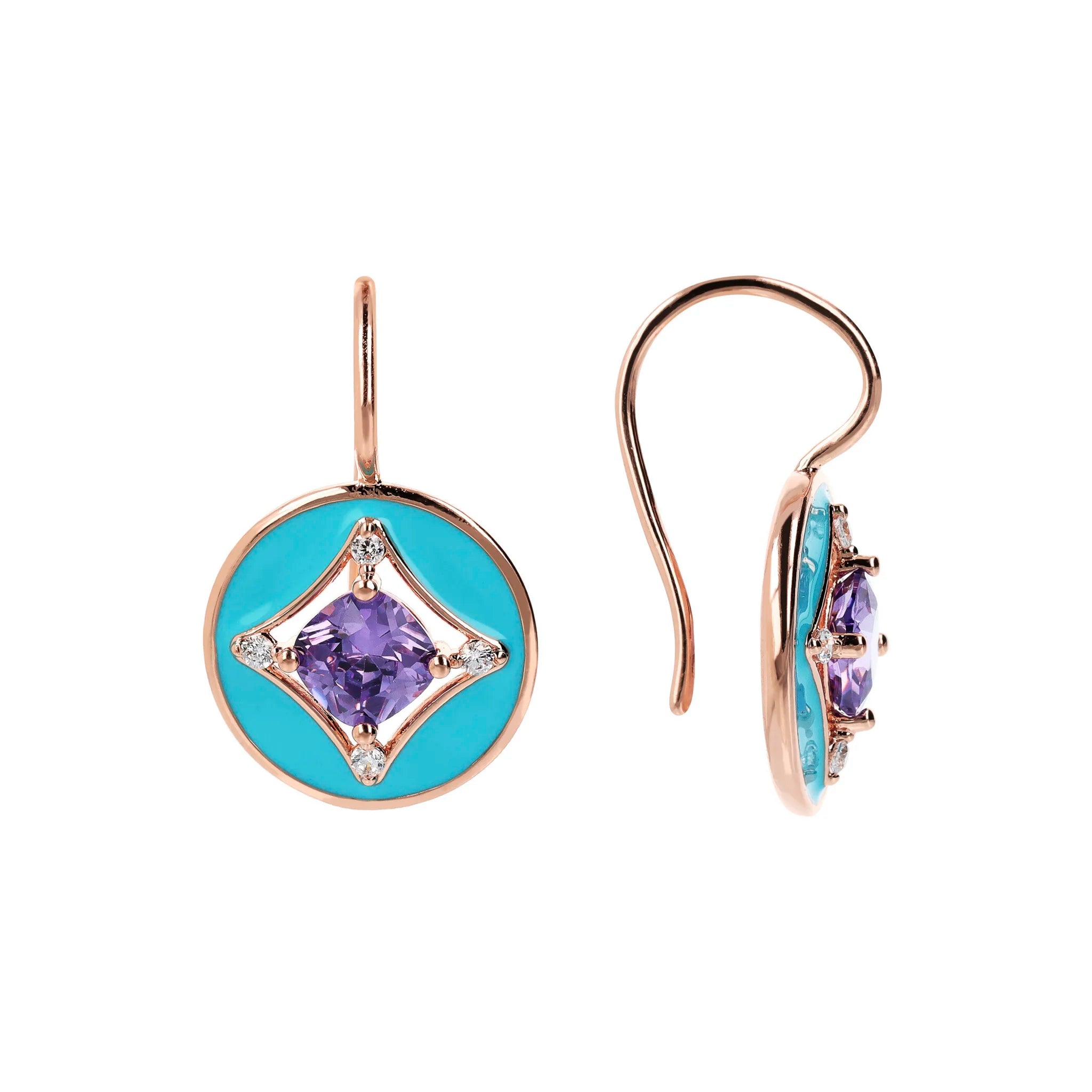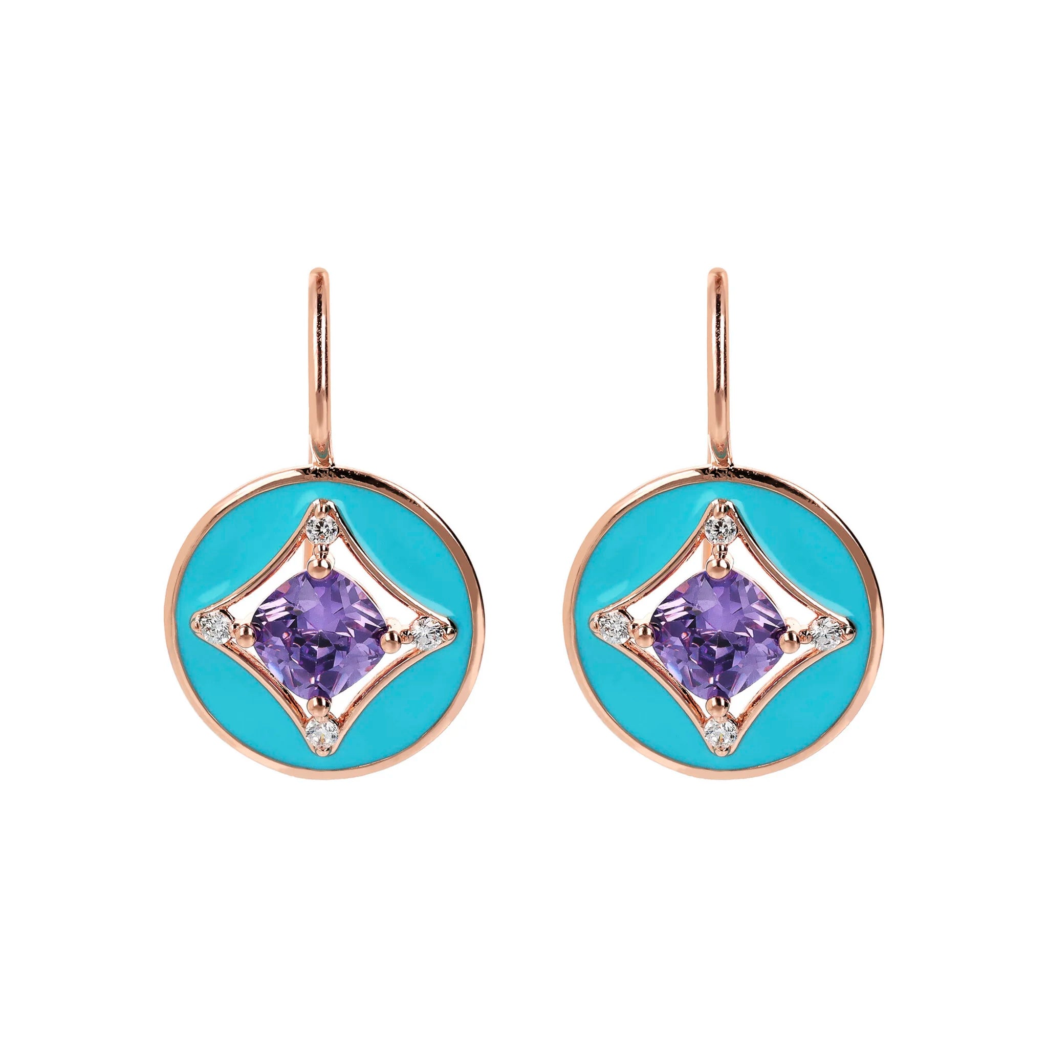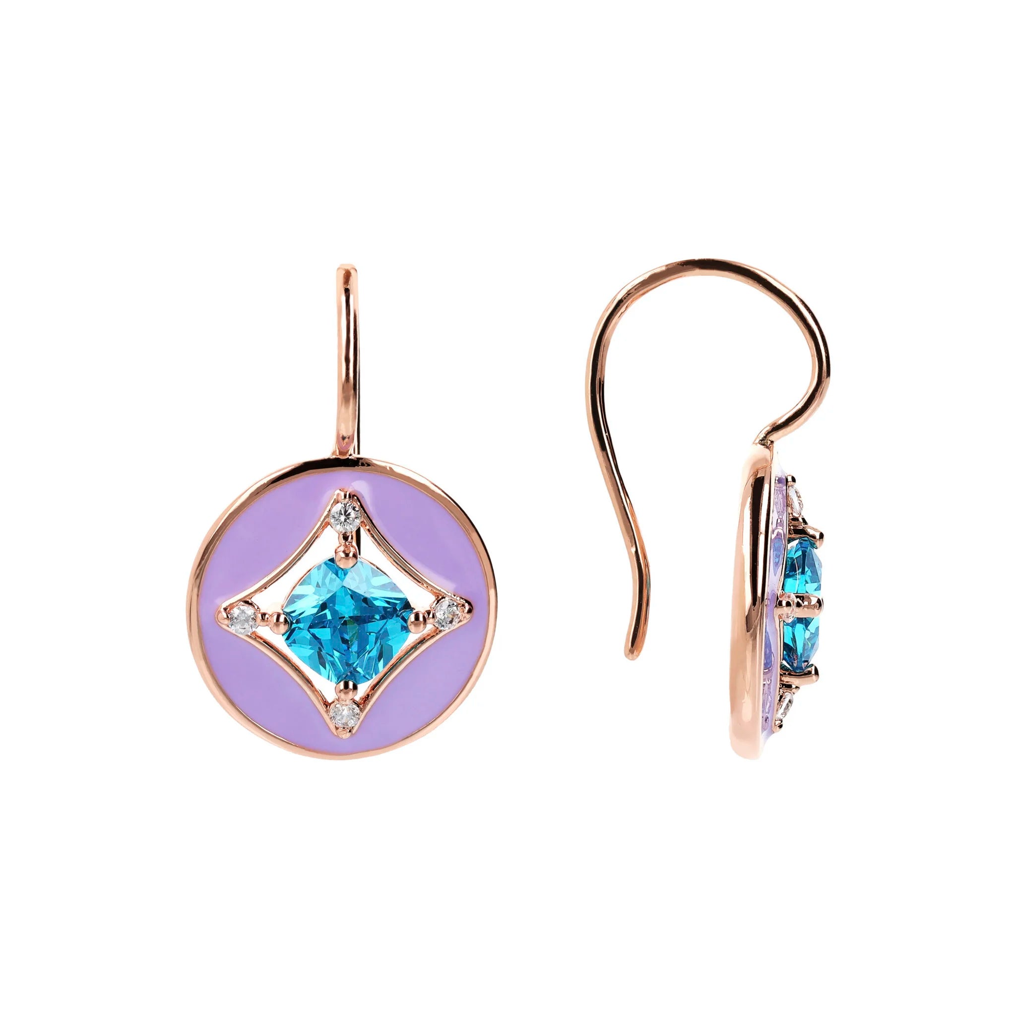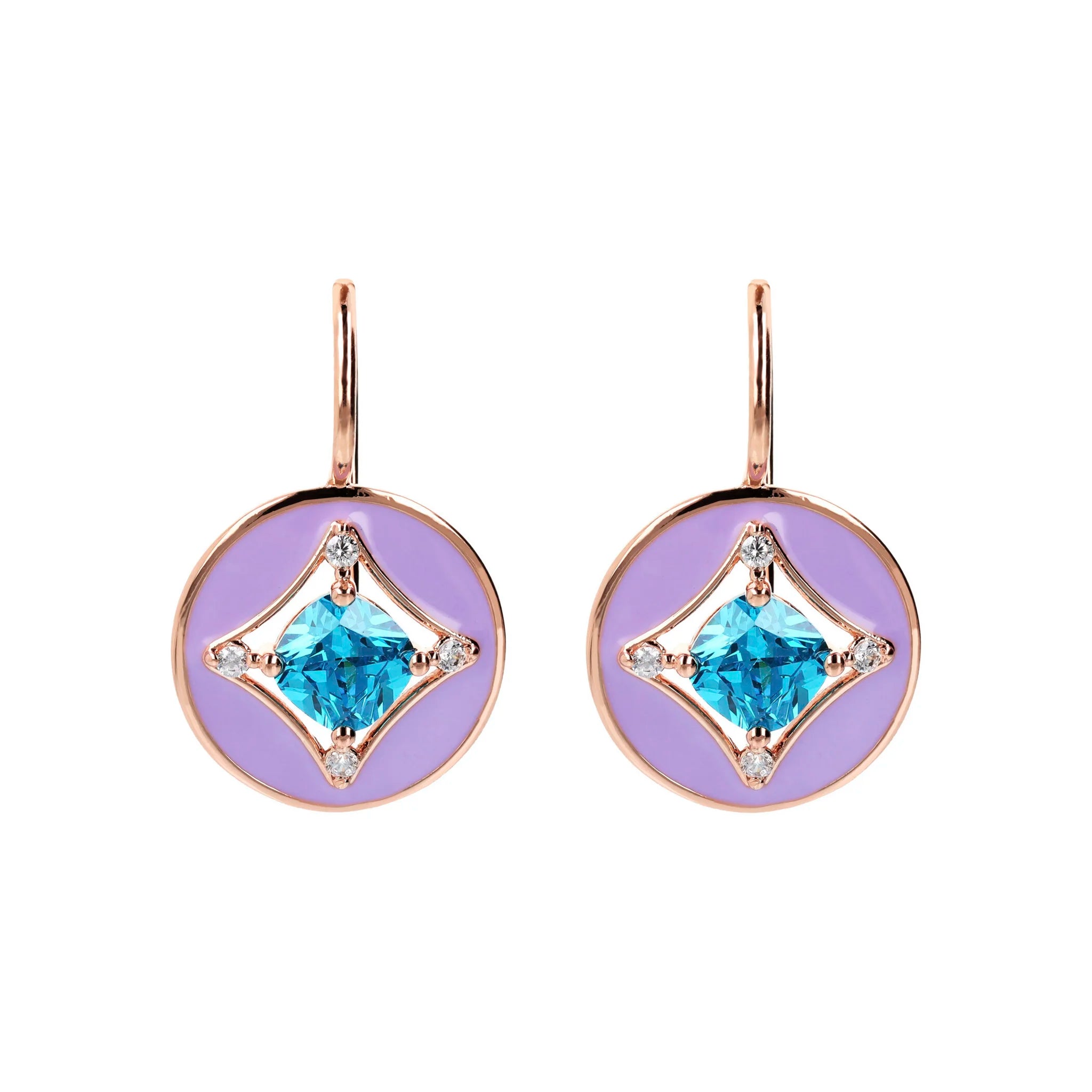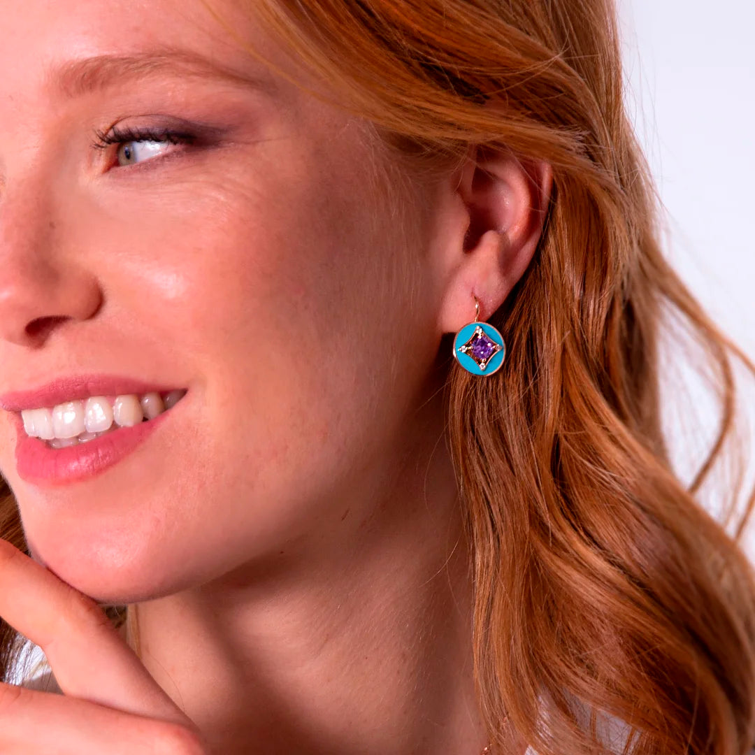 Étoile Pendant Earrings with Round Enamelled Element and Cubic Zirconia