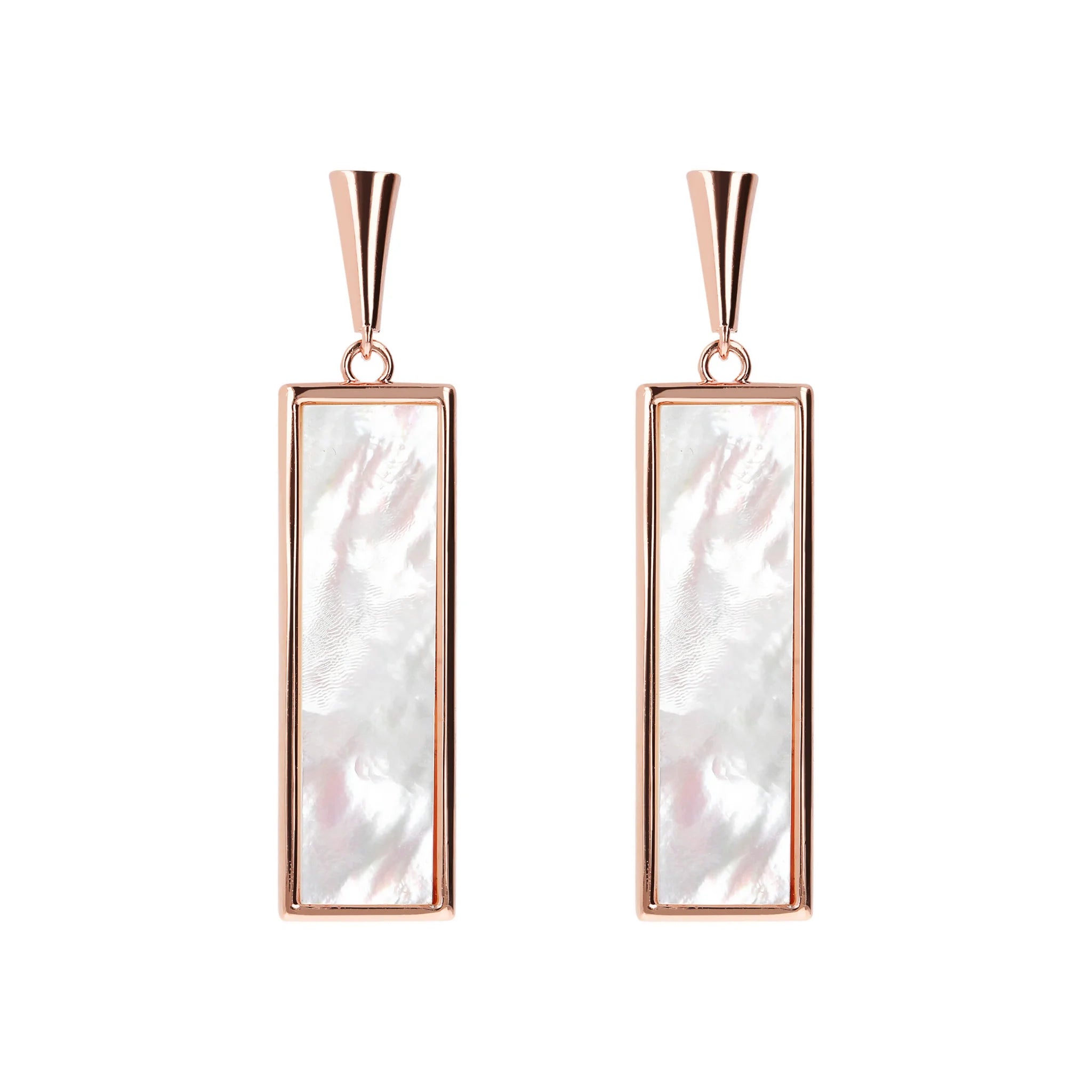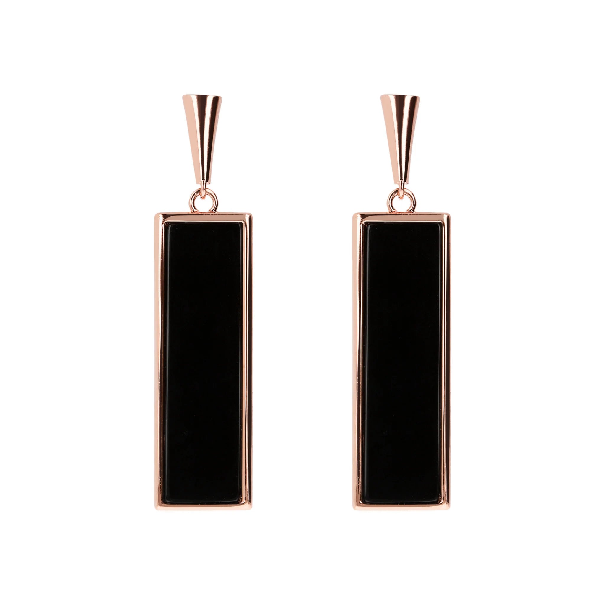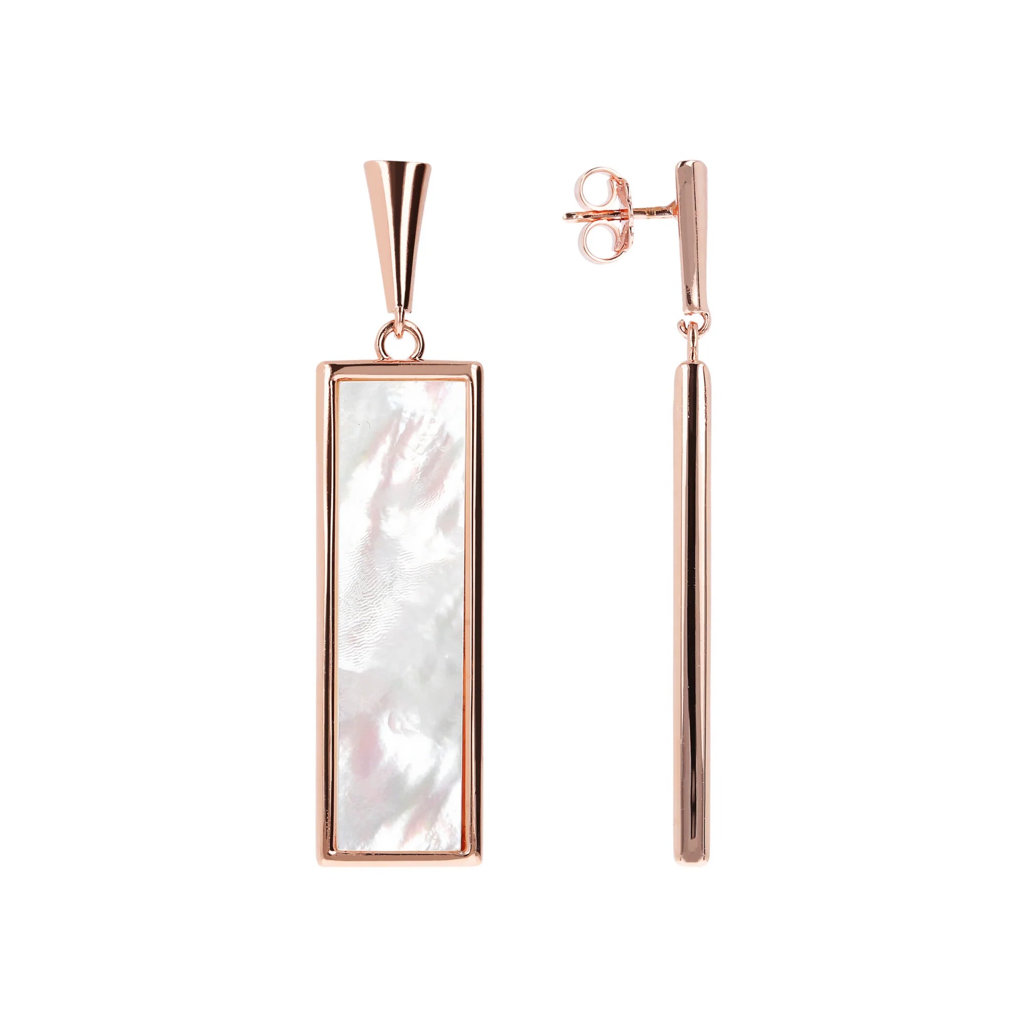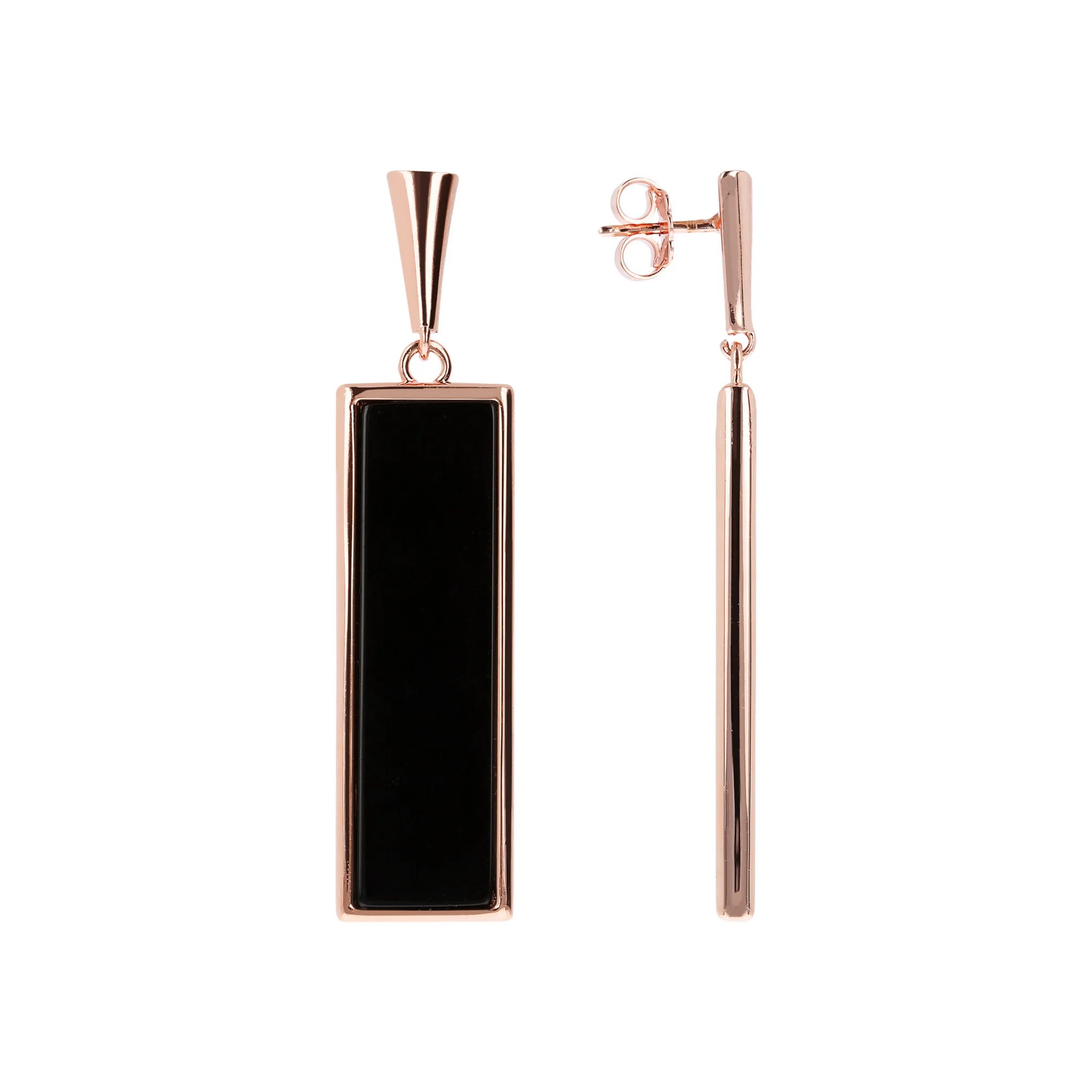 Bronzallure pendant earrings made of Golden Rosé alloy, 18kt rose gold plated, with rectangle (4 cm) in black onyx or pearl mounted on an 18kt rose gold plated base; stud and butterfly closure.
