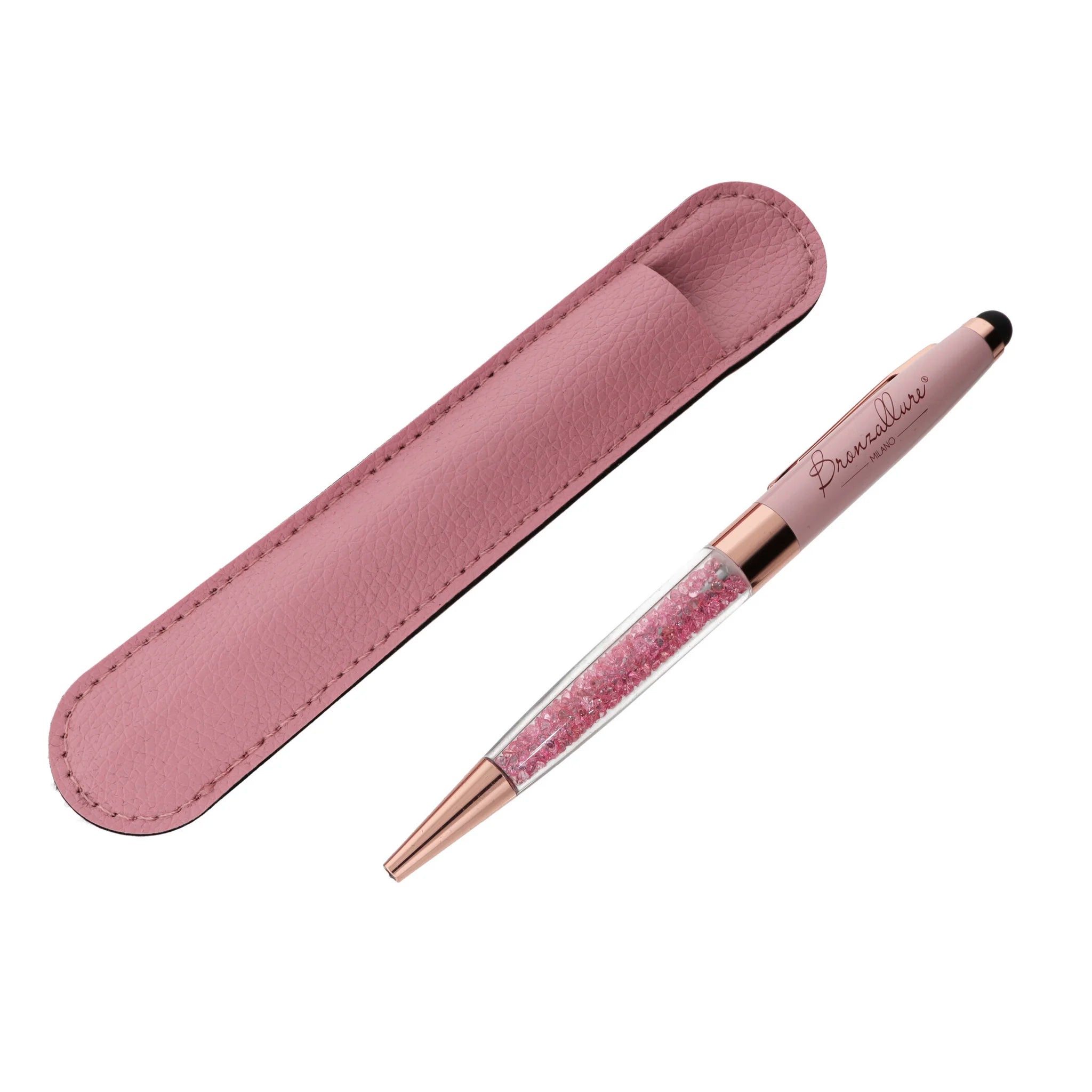 Bronzallure rechargeable ballpoint pen with a minimal and elegant design, whose strong point is the crystals that embellish the end of the pen. The color tones recall the Golden Rosé alloy of the brand.