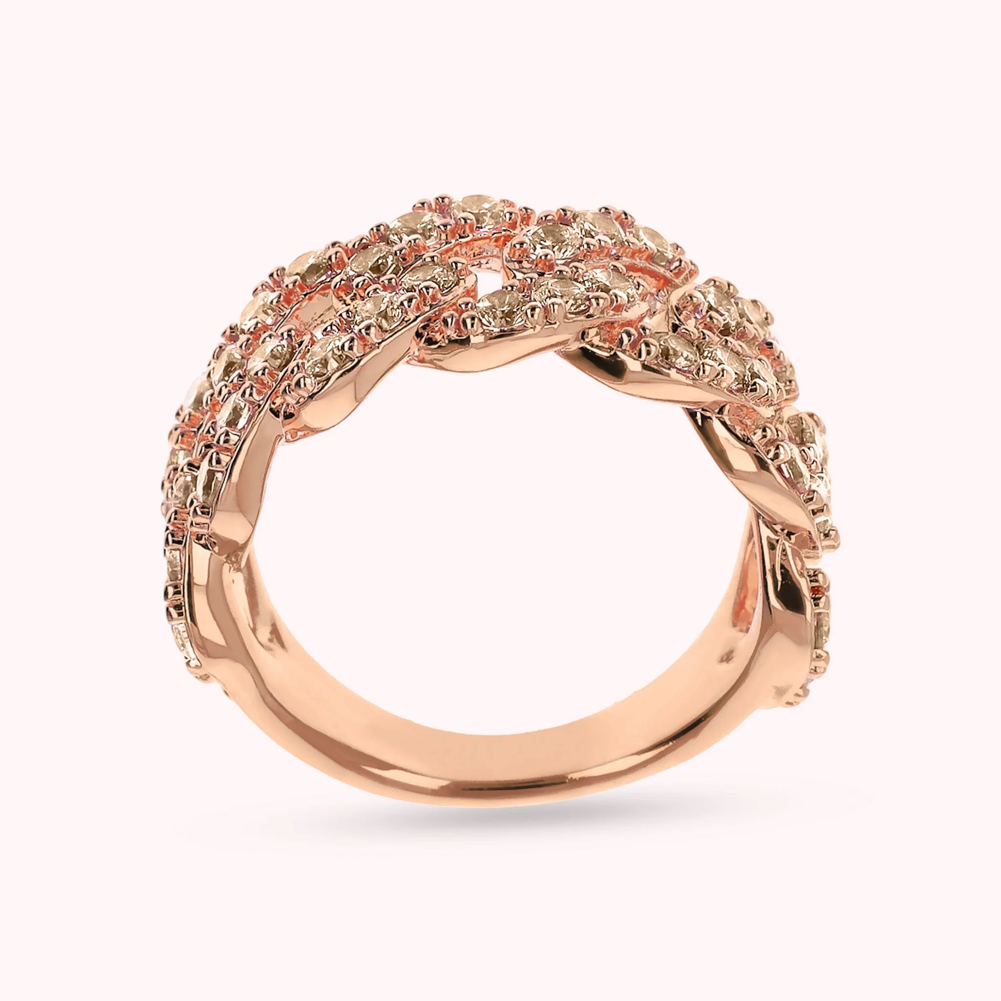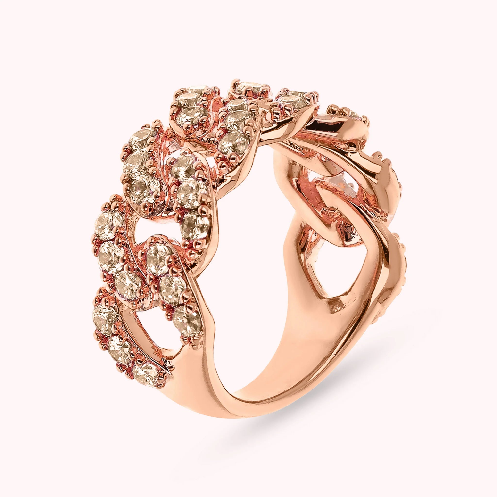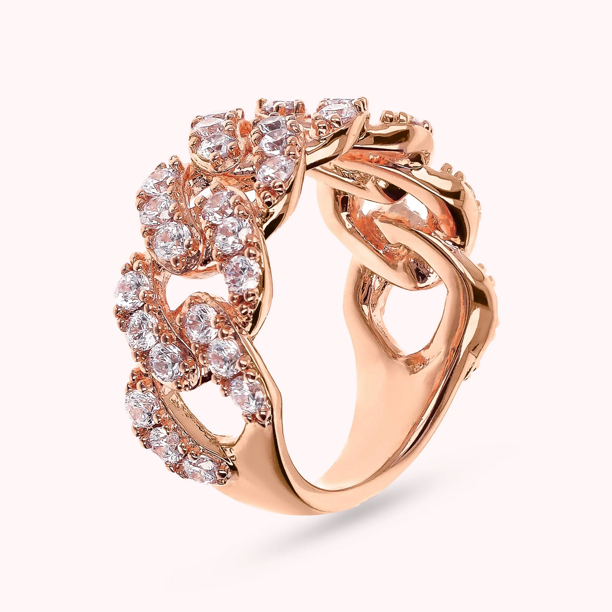 Bronzallure band ring made of Golden Rosé alloy, 18kt rose gold plated, with squared cubic zirconia pavé chain, luminous quality.