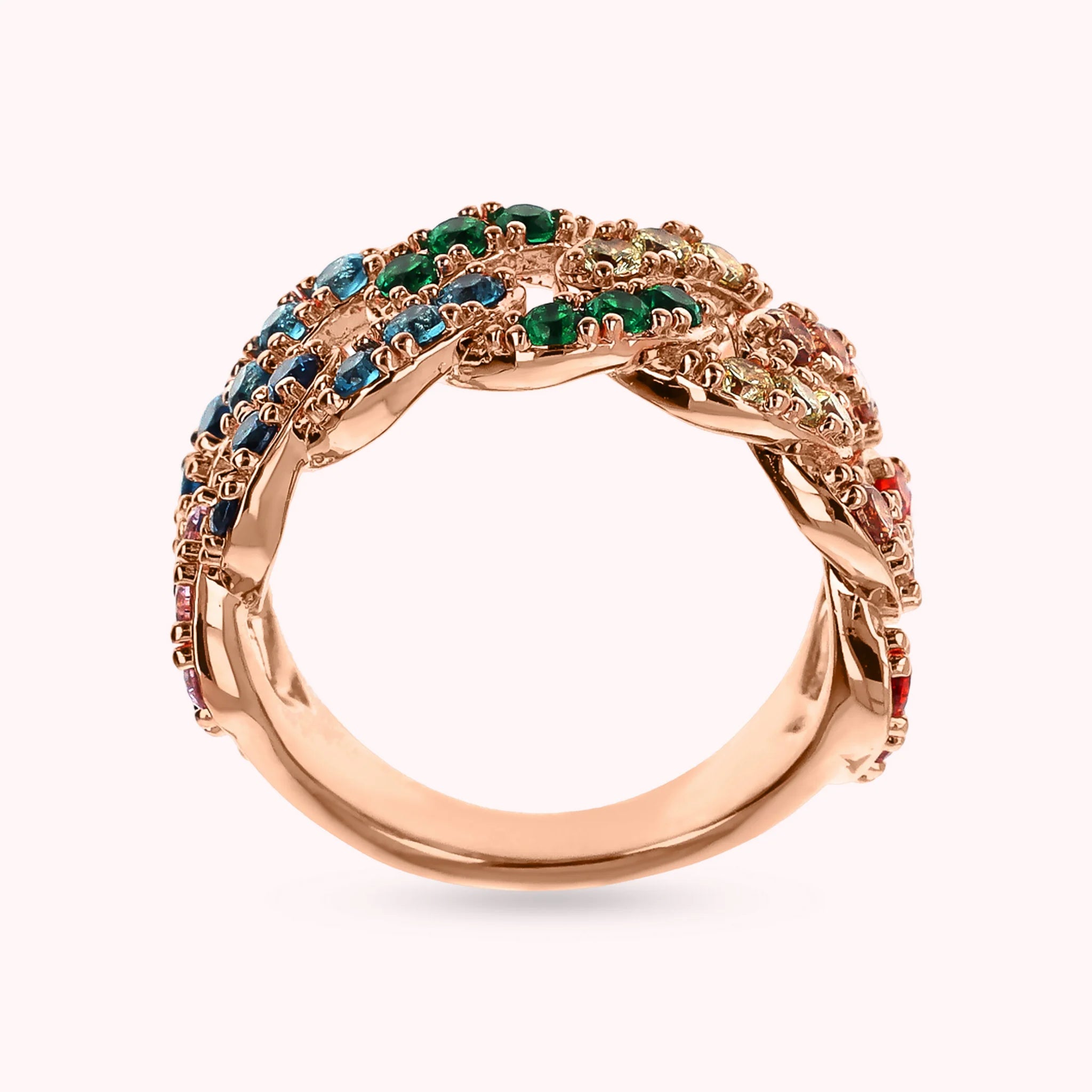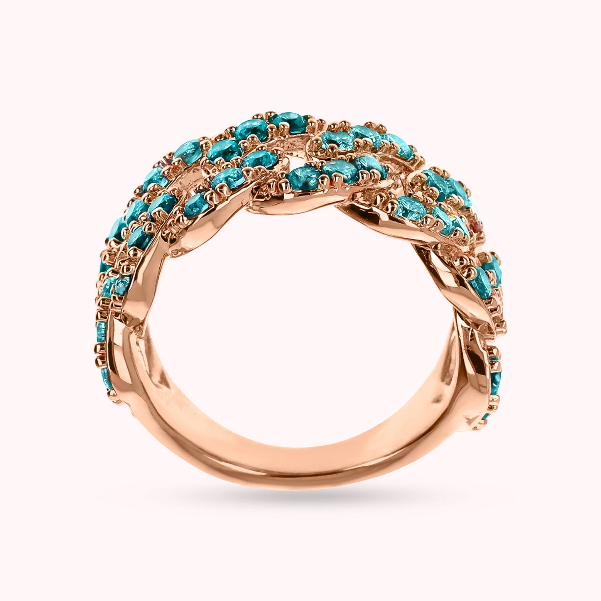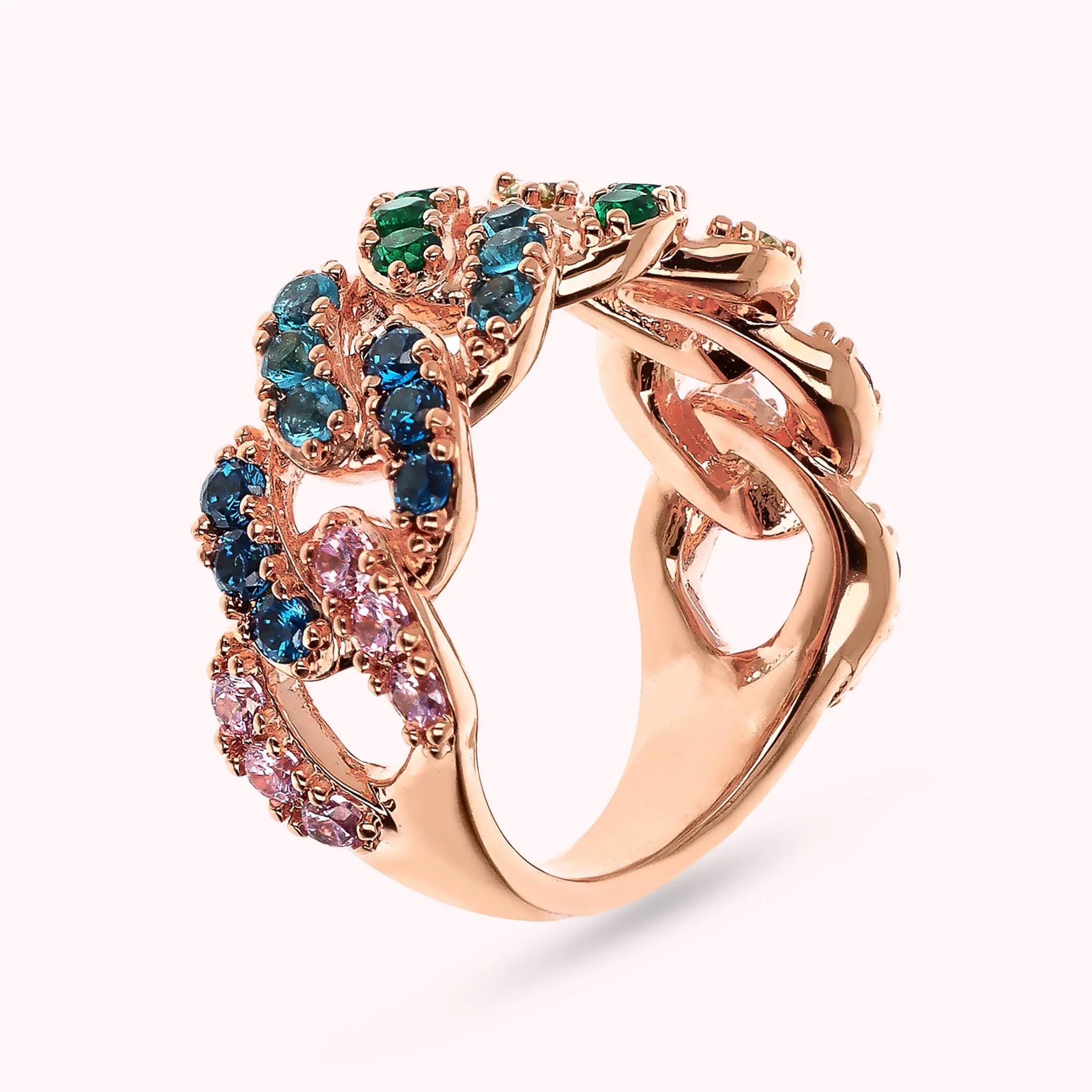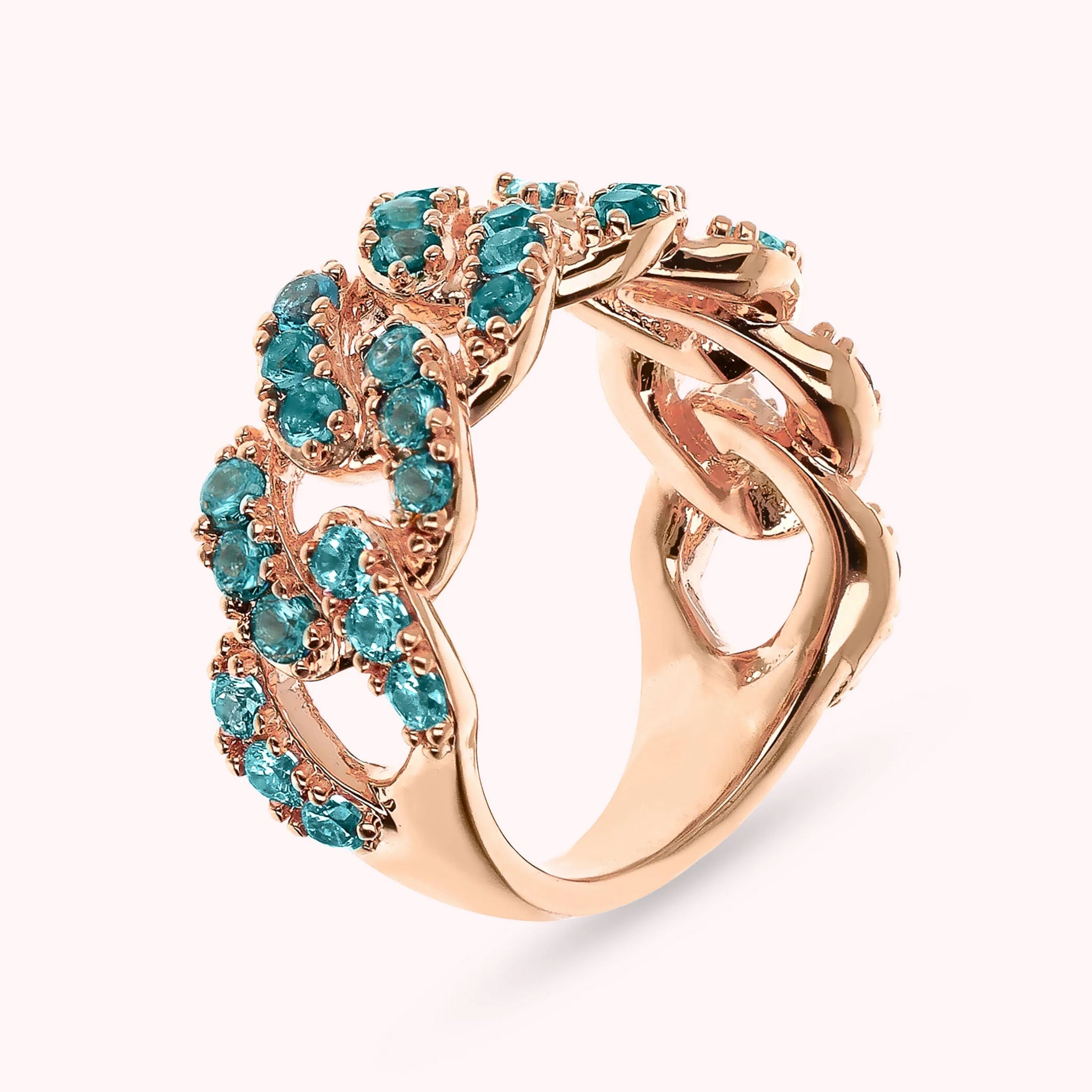 Bronzallure band ring made of Golden Rosé alloy, 18kt rose gold plated, with squared cubic zirconia pavé chain, luminous quality.