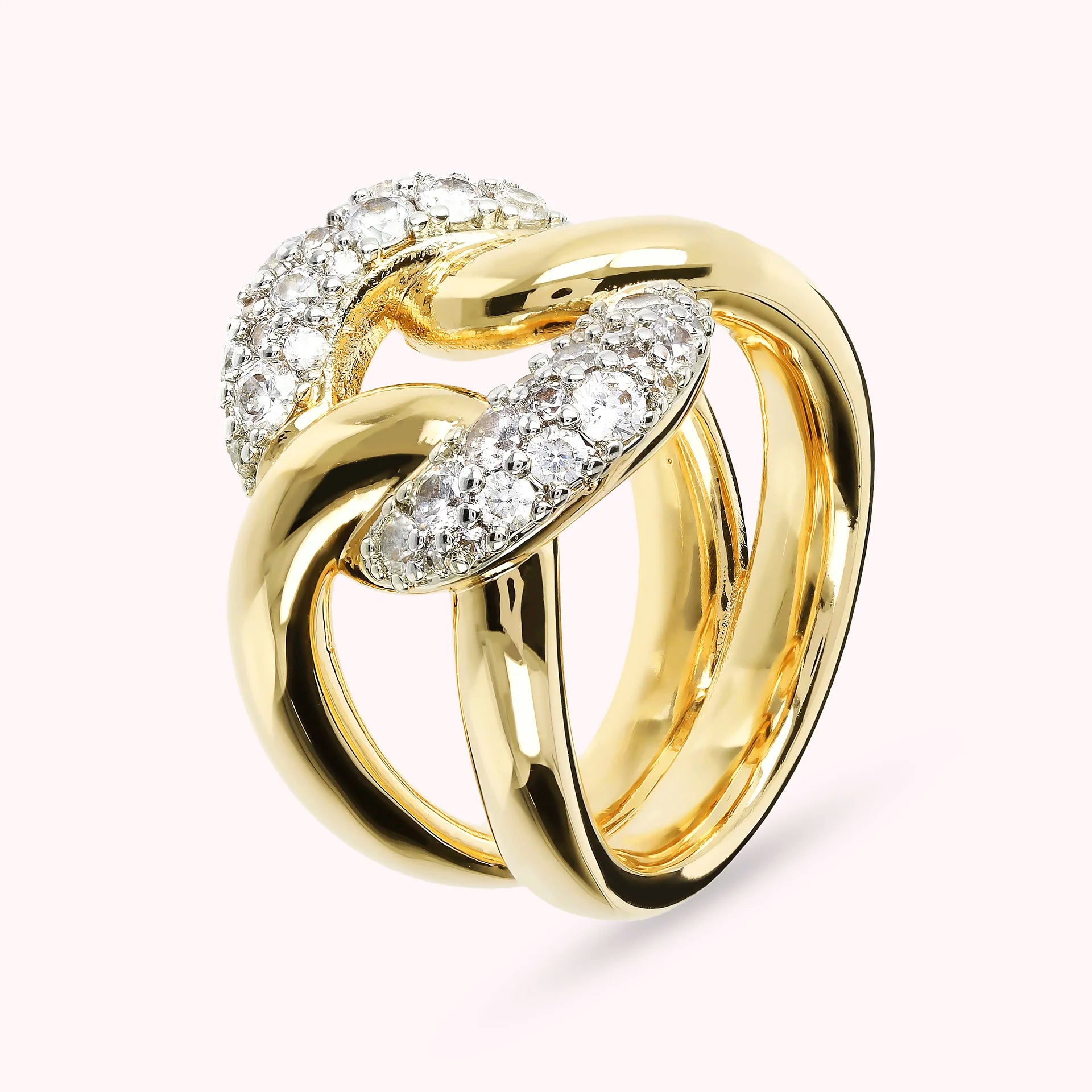 Bronzallure ring made of Golden Rosé alloy, 18kt yellow gold plated, embellished with a central oval-shaped element with cubic zirconia, luminous quality. Elegant creation, with a perfect design to make your look shine.