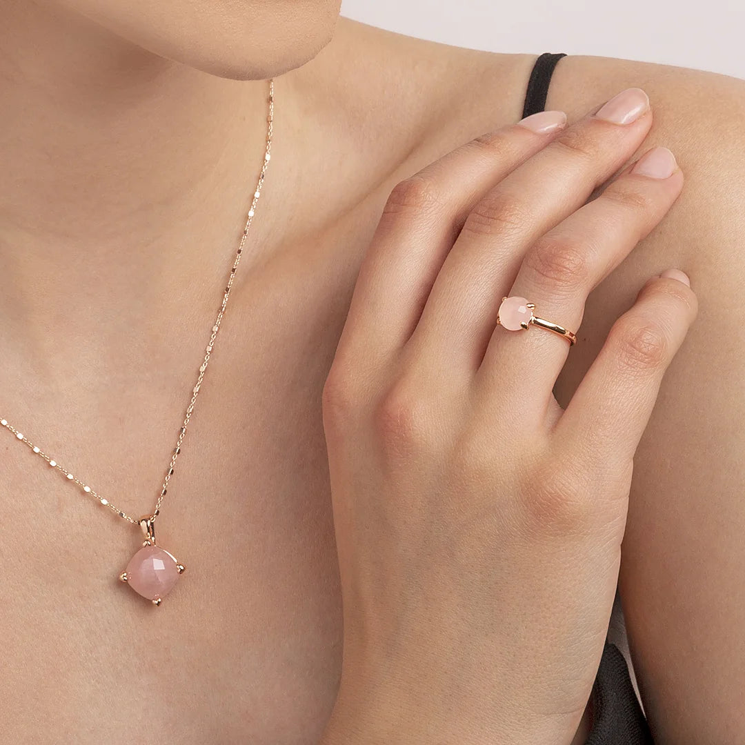 Bronzallure cocktail ring made of Golden Rosé alloy, 18kt rose gold plated, with small natural stone (8 mm) with bright colors and a round shape.