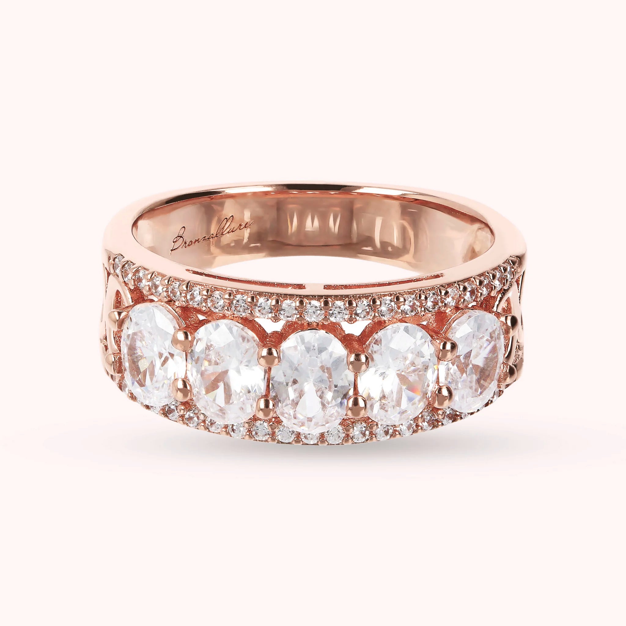 Bronzallure riviera ring made of Golden Rosé alloy, 18kt rose gold plated, embellished with five light points flanked by small cubic zirconia, luminous quality.
