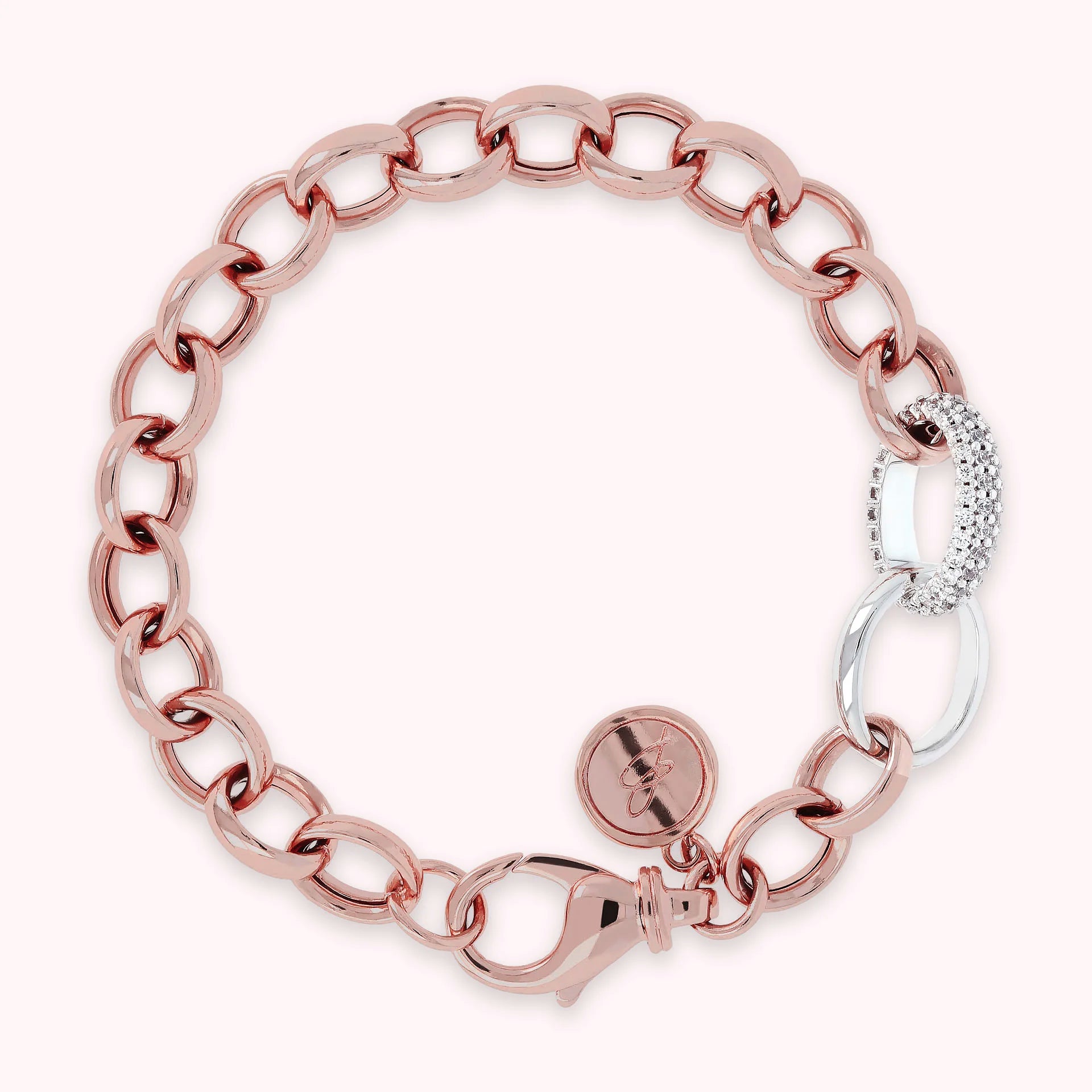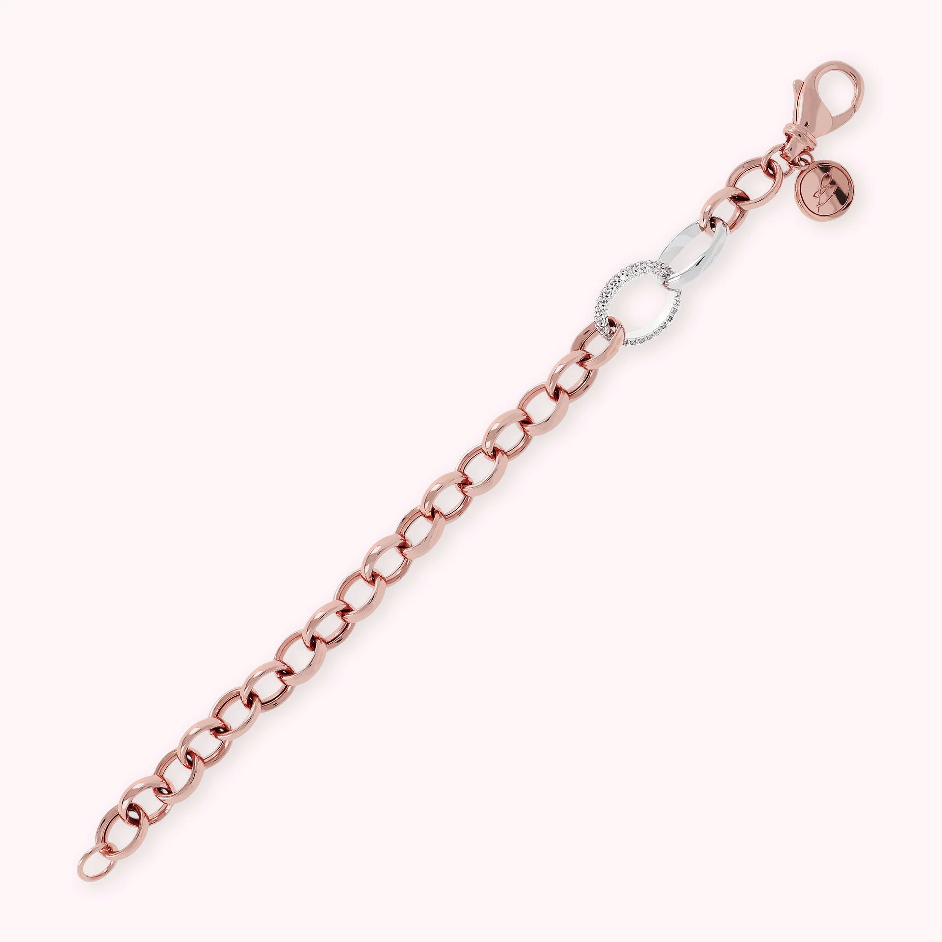 Rolo Chain Bracelet with Pavé Element in Cubic Zirconia