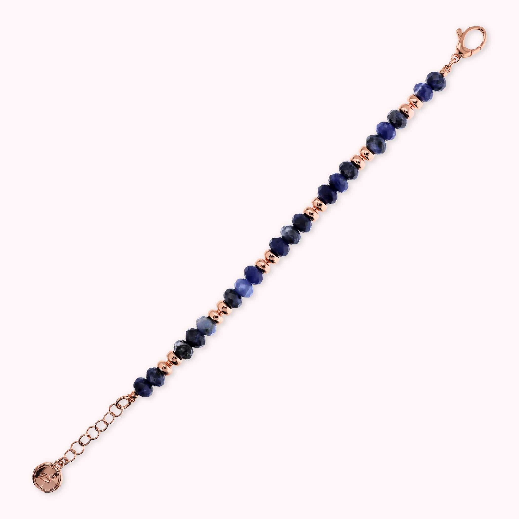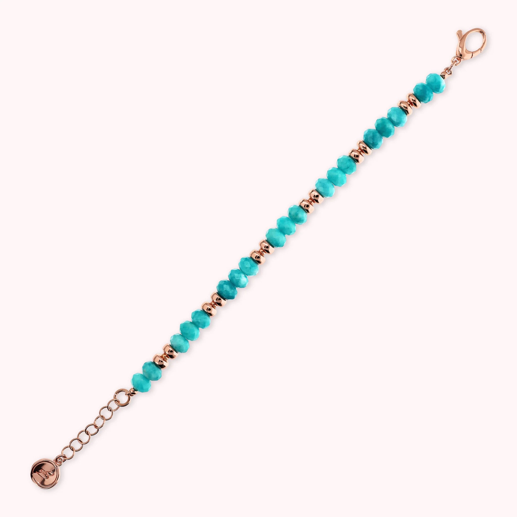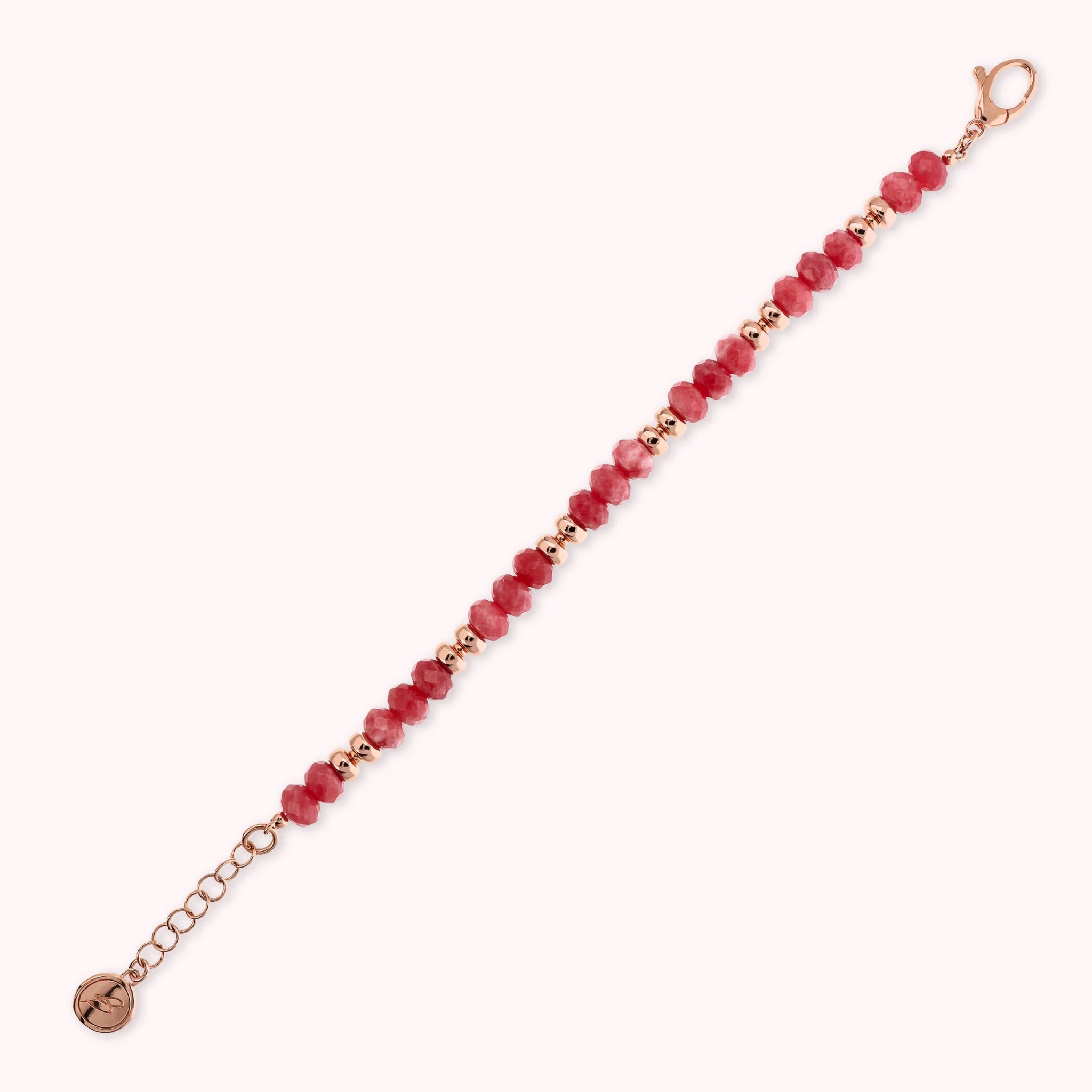 Bracelet made of Golden Rosé alloy, 18kt rose gold plated, embellished with faceted natural stones (8 mm) alternating with shiny Golden Rosé washers. Lobster clasp closure.