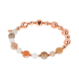 Elastic Bracelet with Natural Stones and Nuggets in Golden Rosé