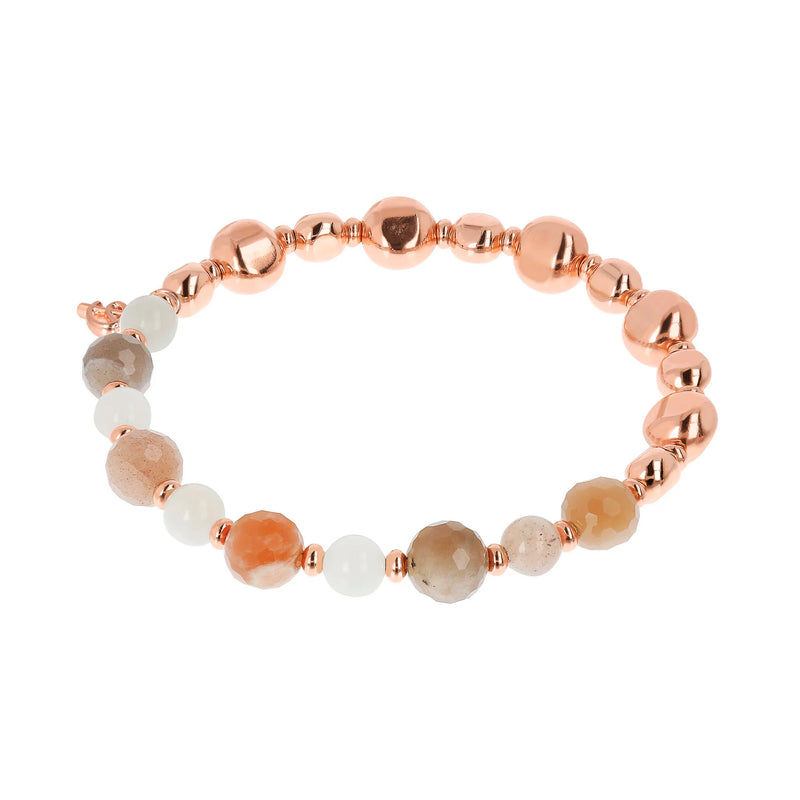 Bronzallure elastic bracelet made on a Golden Rosé base, 18kt rose gold plated, embellished with spheres (6/8 mm) in natural stones alternating with irregular nuggets (6/8 mm) and small links (3 mm) in Golden Rosé.