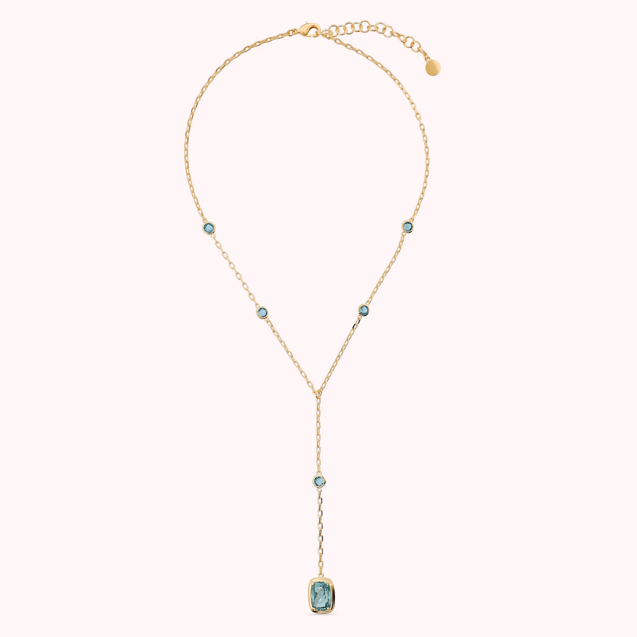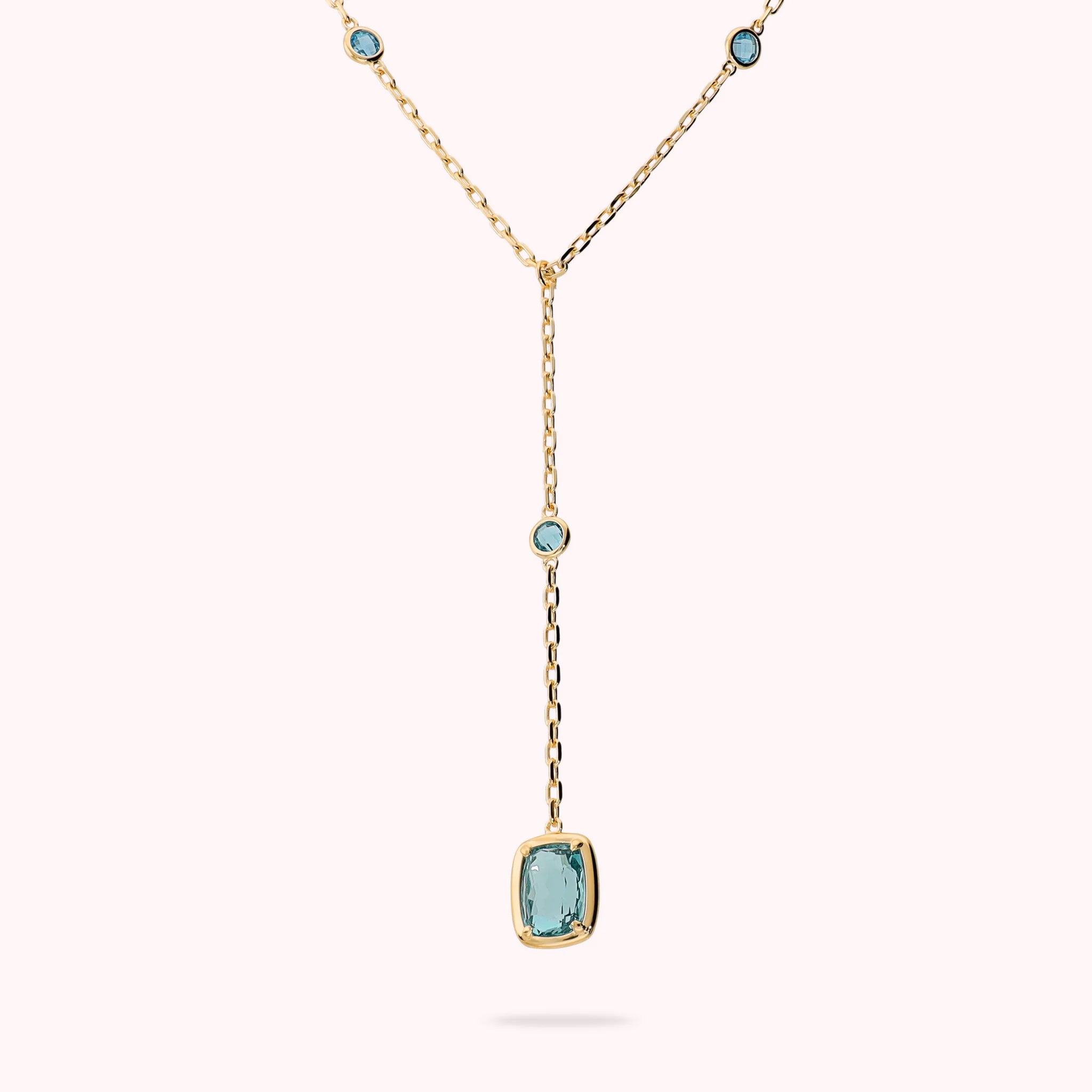 Tie Necklace with Round and Baguette Gem Prism