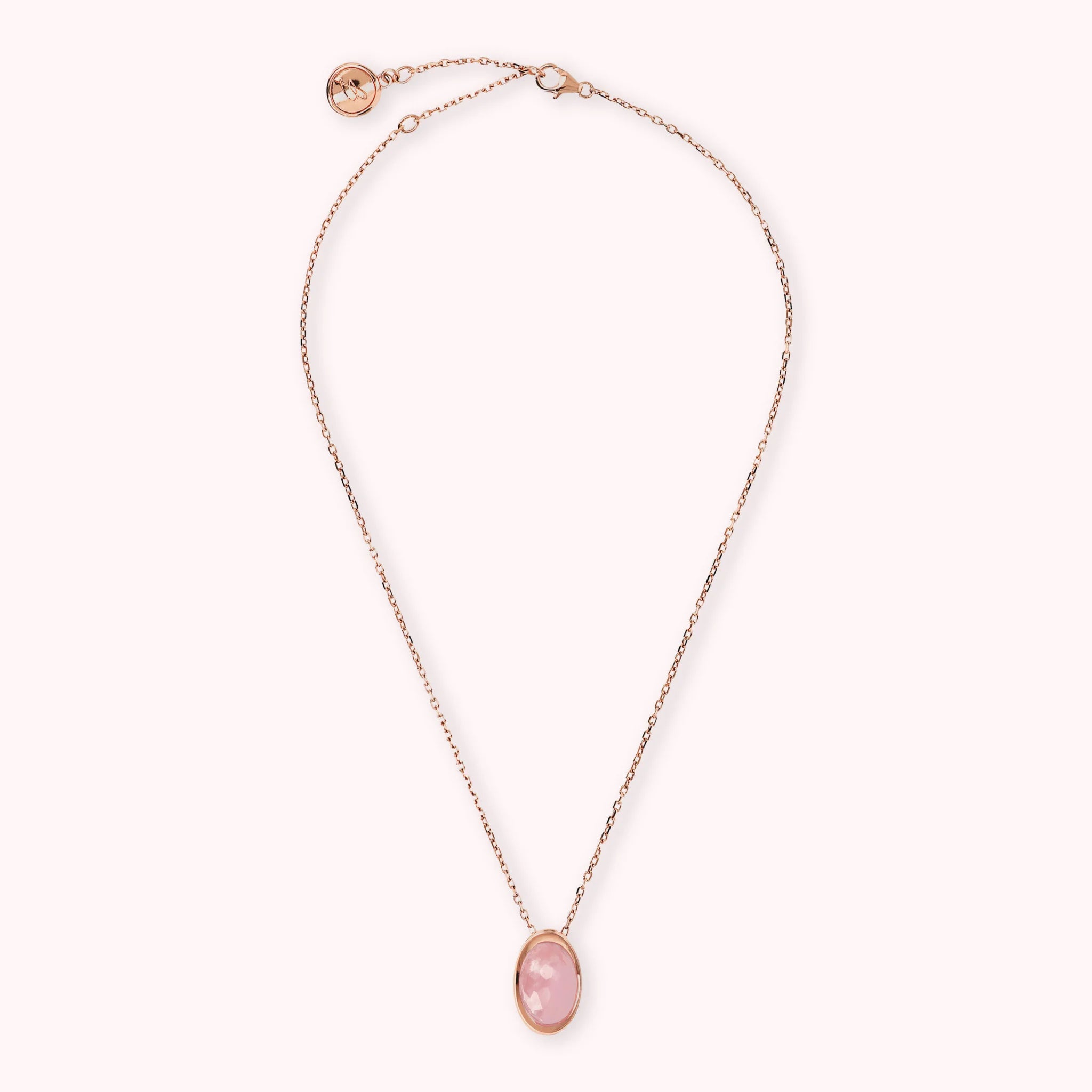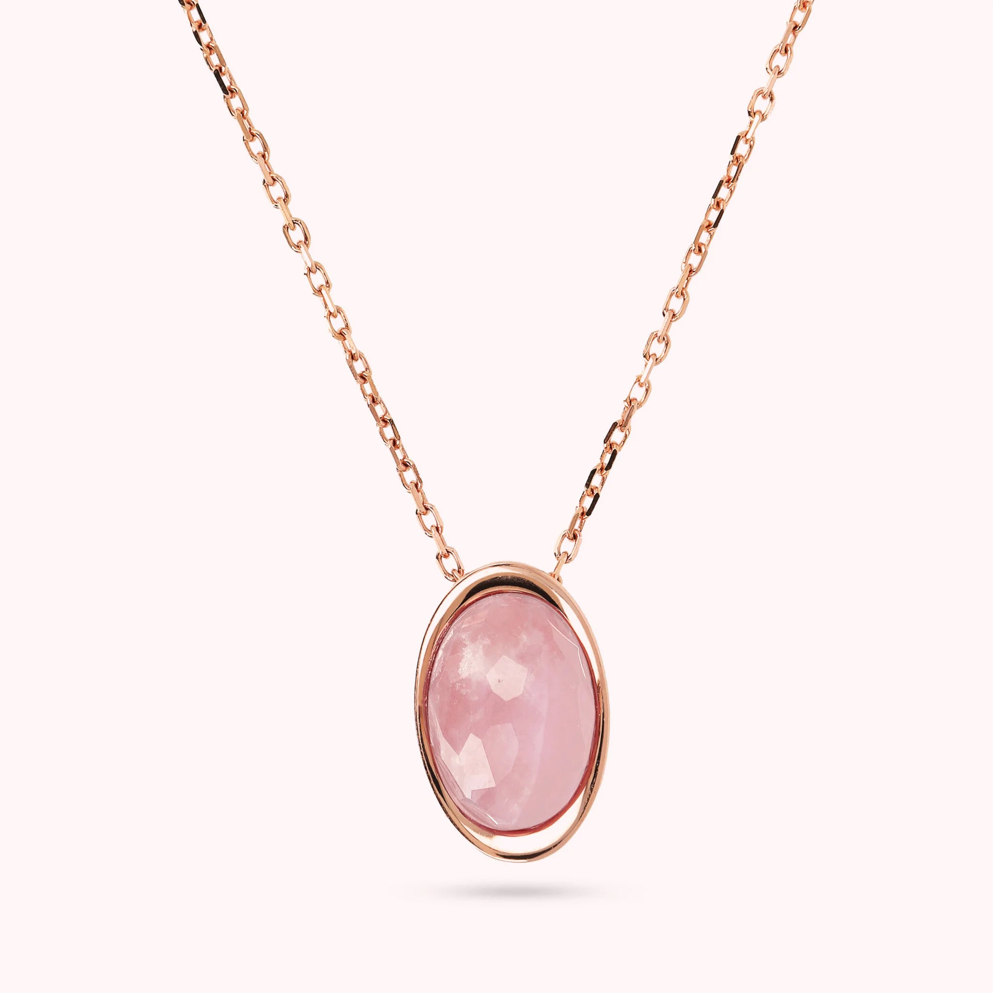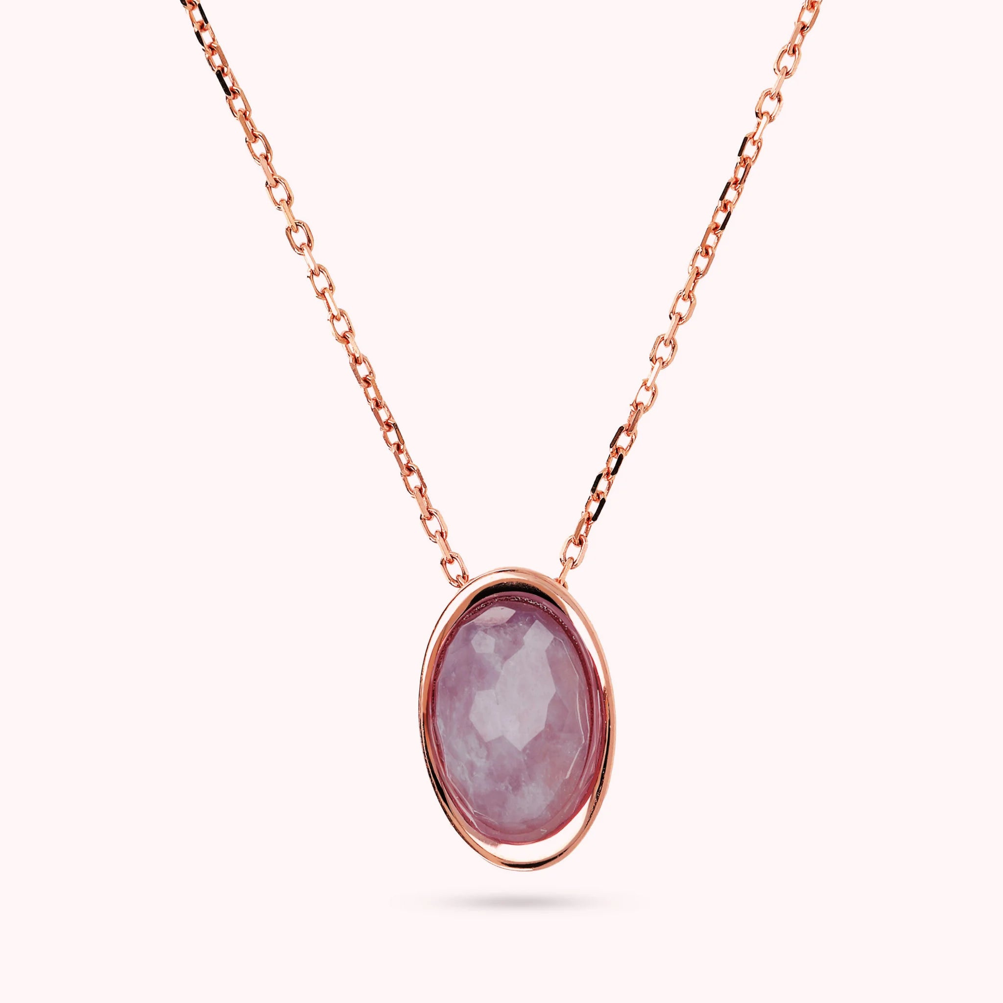 Bronzallure necklace made on a Golden Rosé base, 18kt rose gold plated, with forzatina chain embellished with a natural stone pendant with an oval shape (12x17 mm) and faceted surface; Lobster clasp closure with extender.