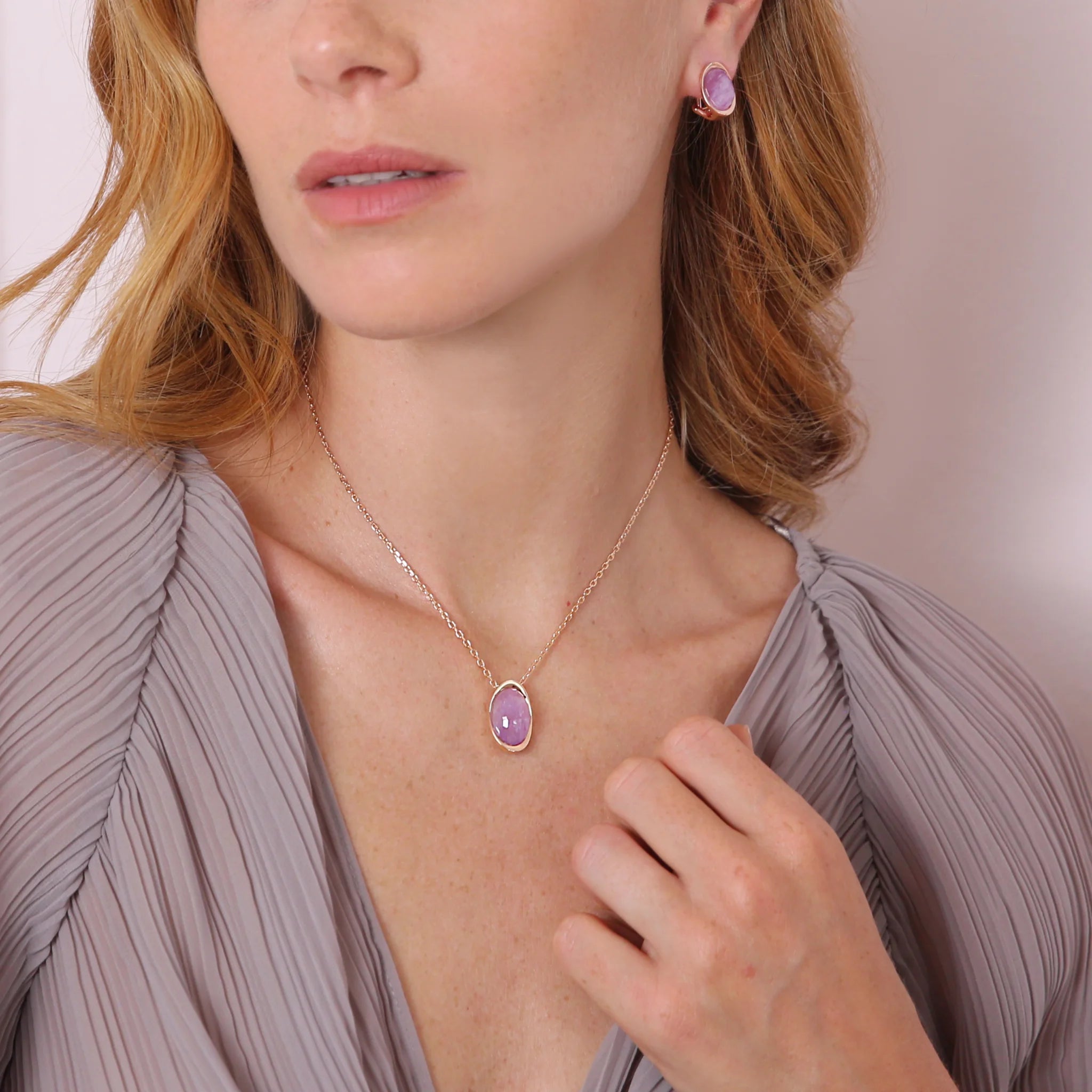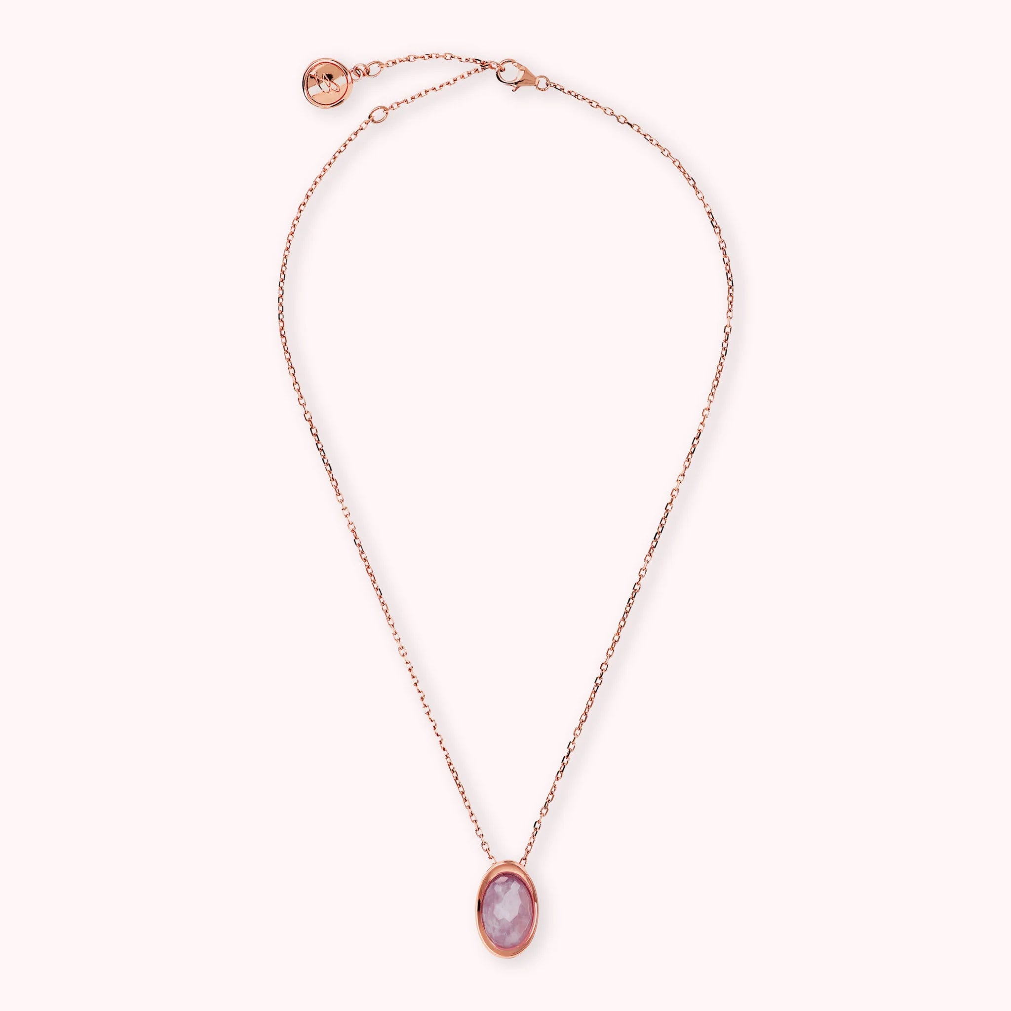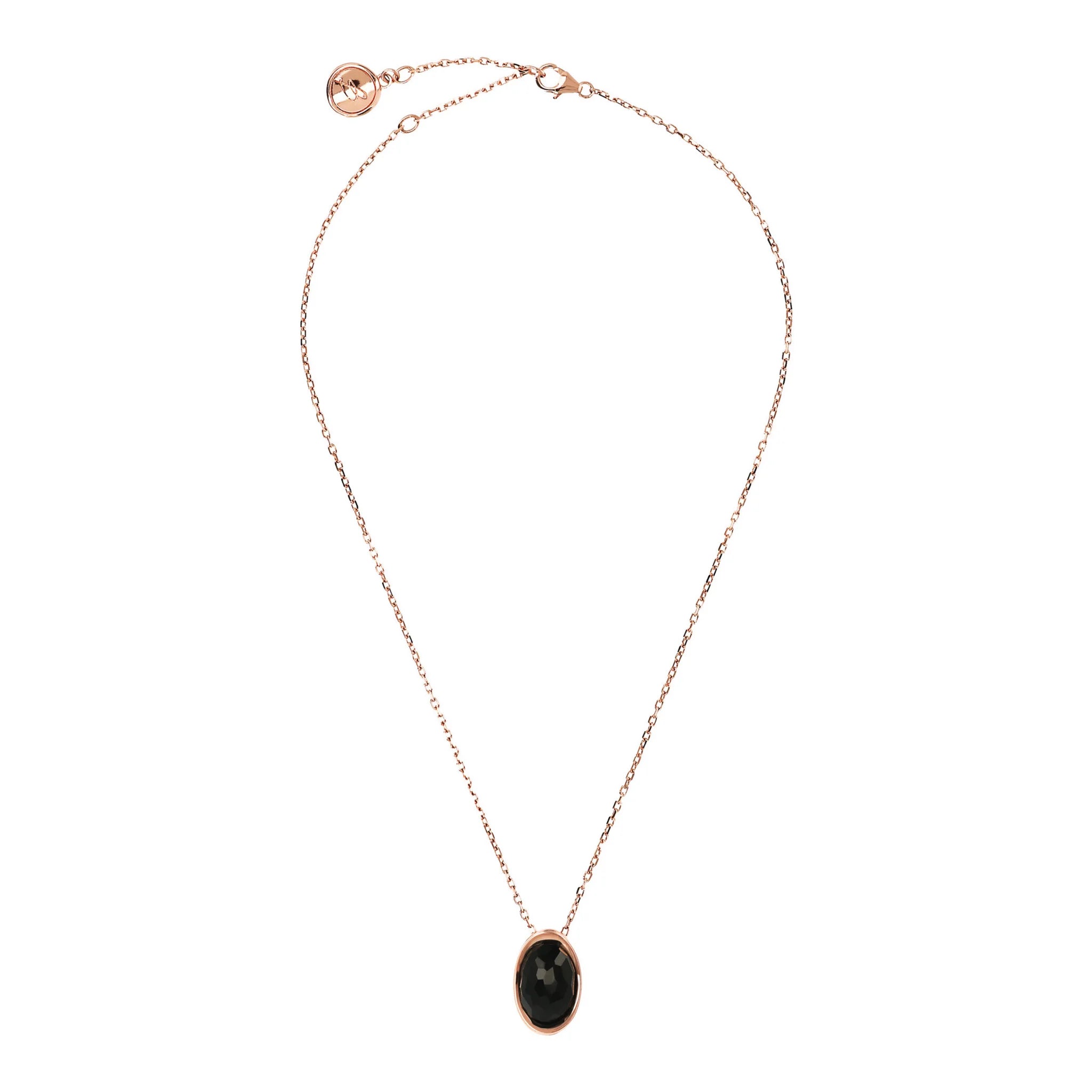 Bronzallure necklace made on a Golden Rosé base, 18kt rose gold plated, with forzatina chain embellished with a natural stone pendant with an oval shape (12x17 mm) and faceted surface; Lobster clasp closure with extender.