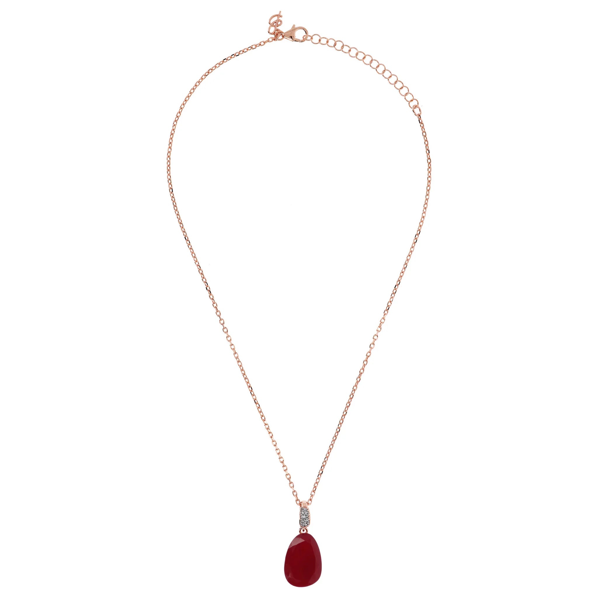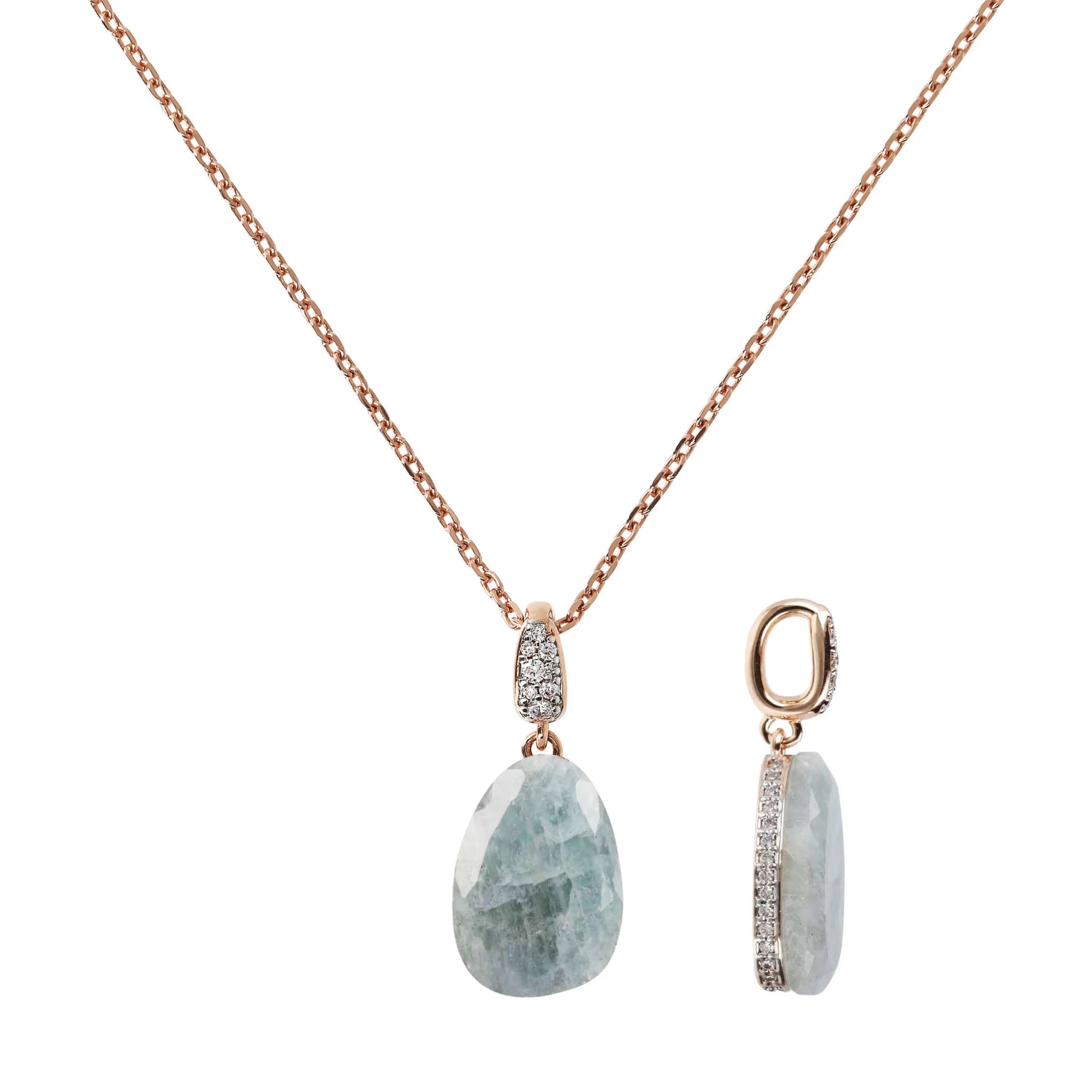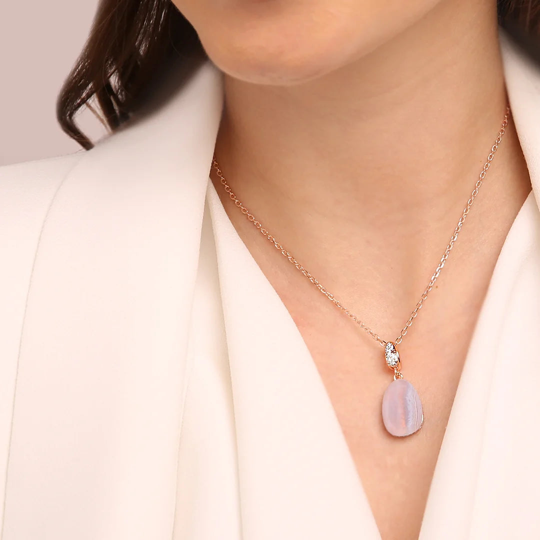 Necklace with Drop Pendant in Natural Stone and Cubic Zirconia