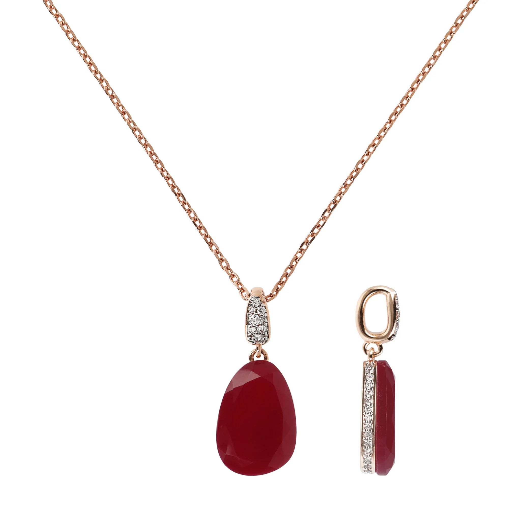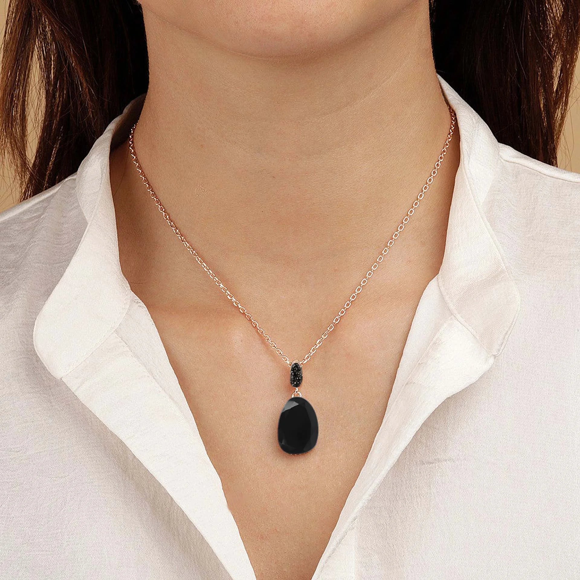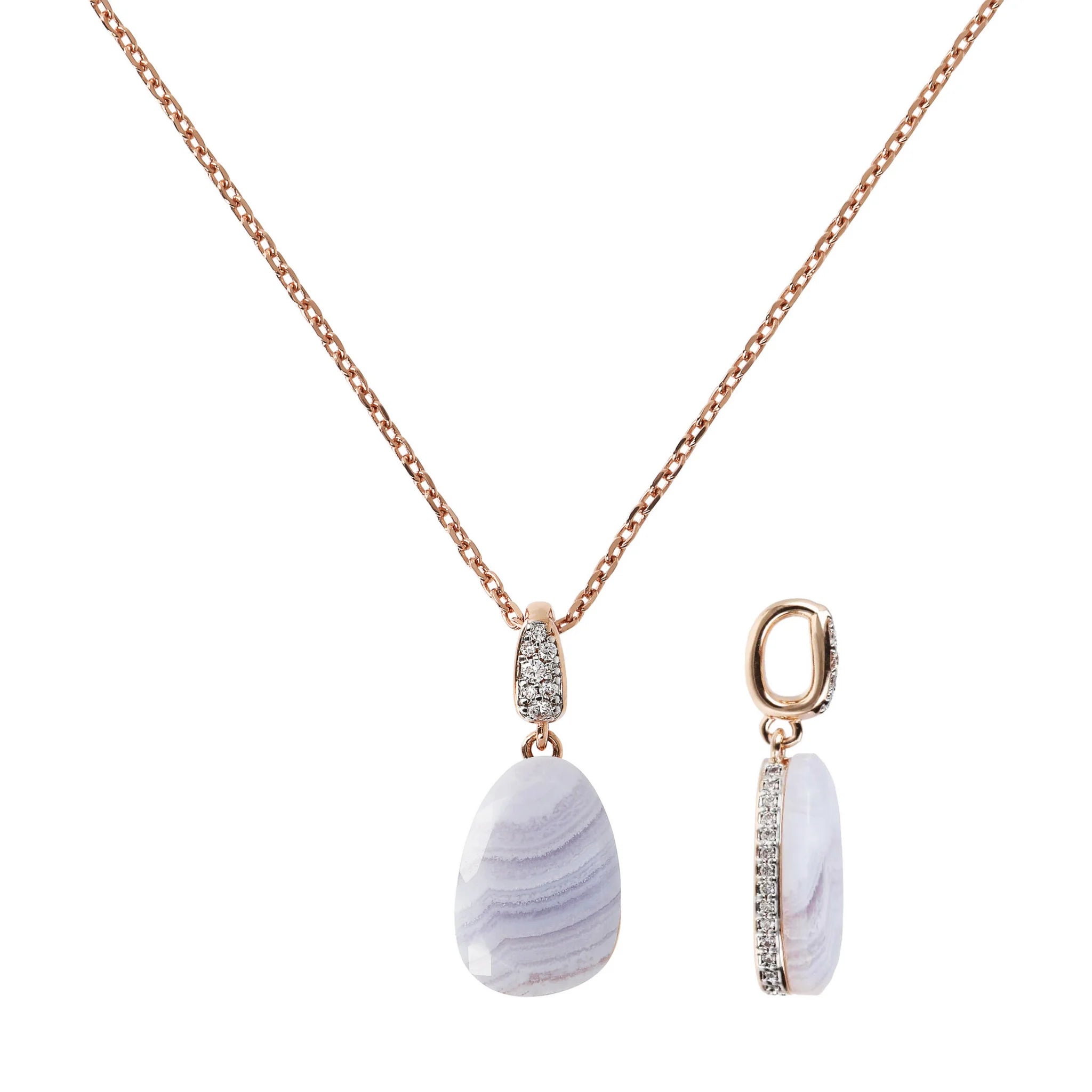 Necklace with Drop Pendant in Natural Stone and Cubic Zirconia