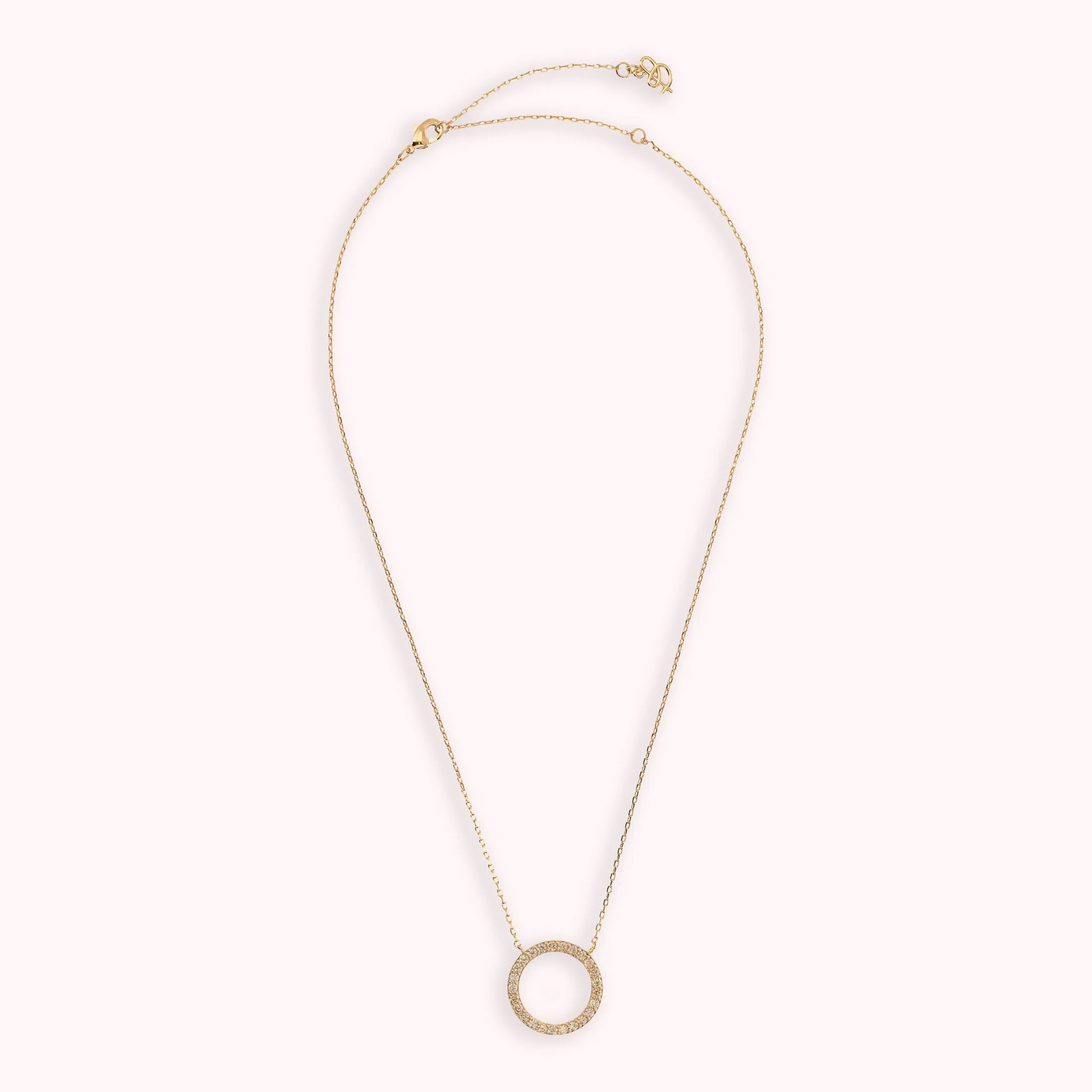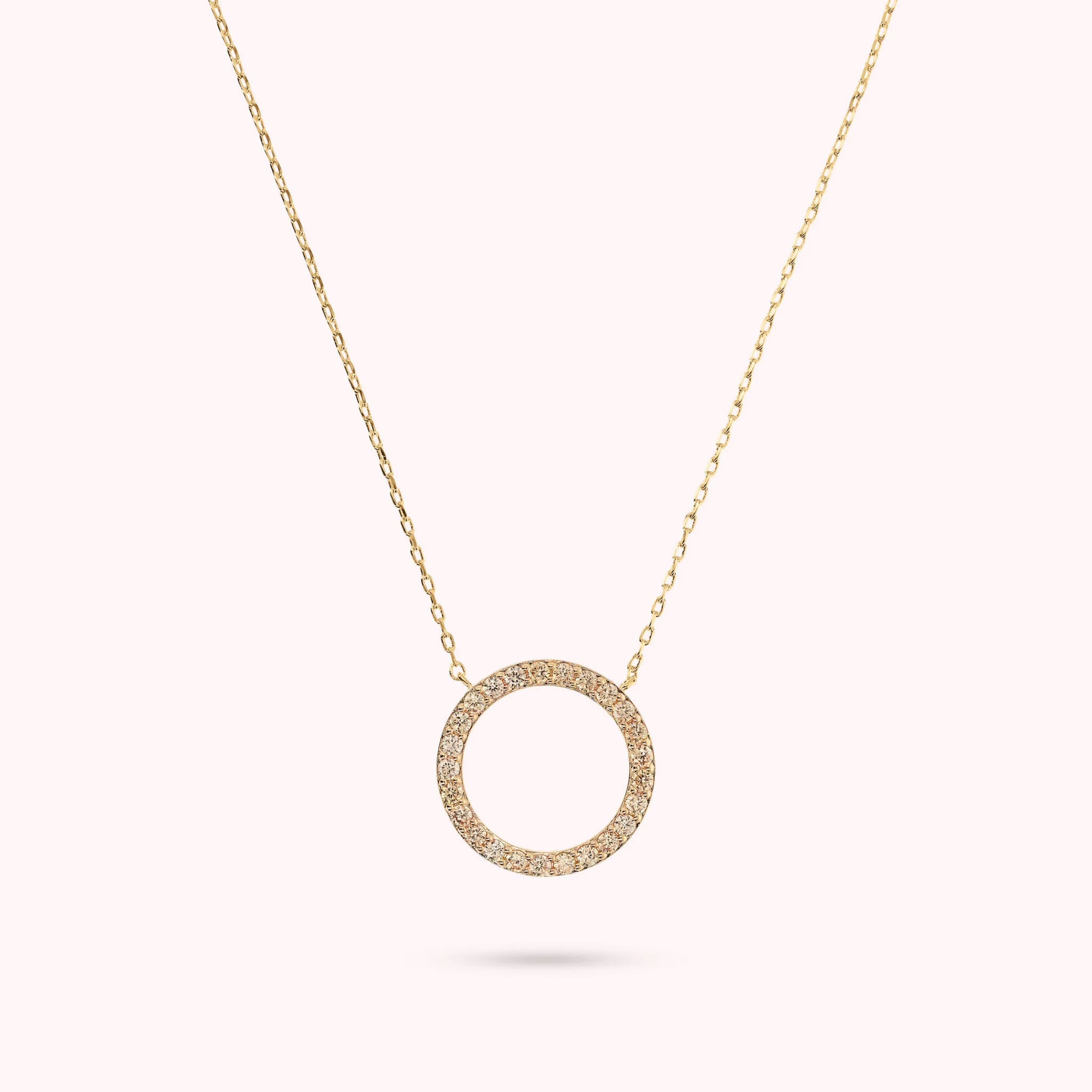 Golden Necklace with Ring Pendant in Cubic Zirconia