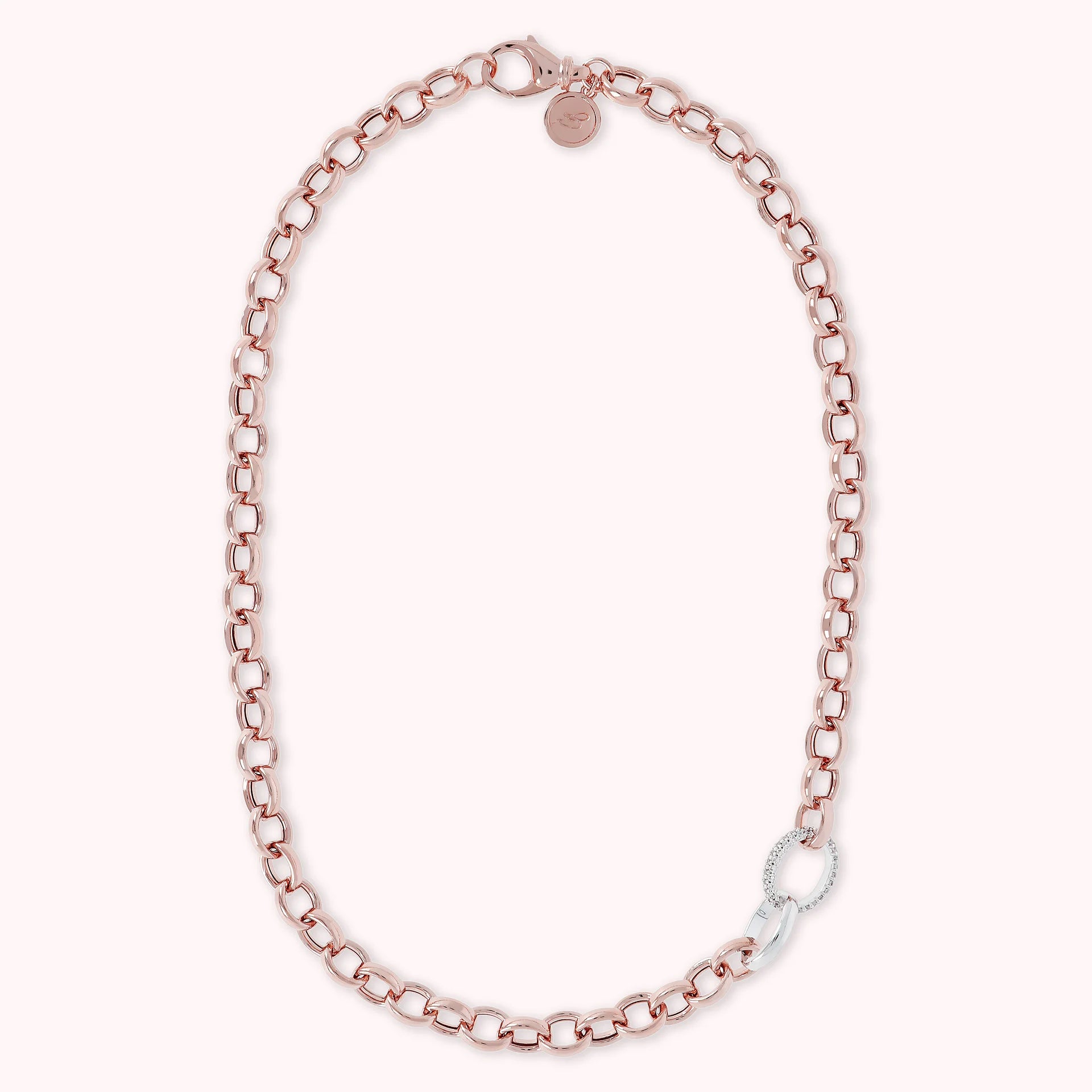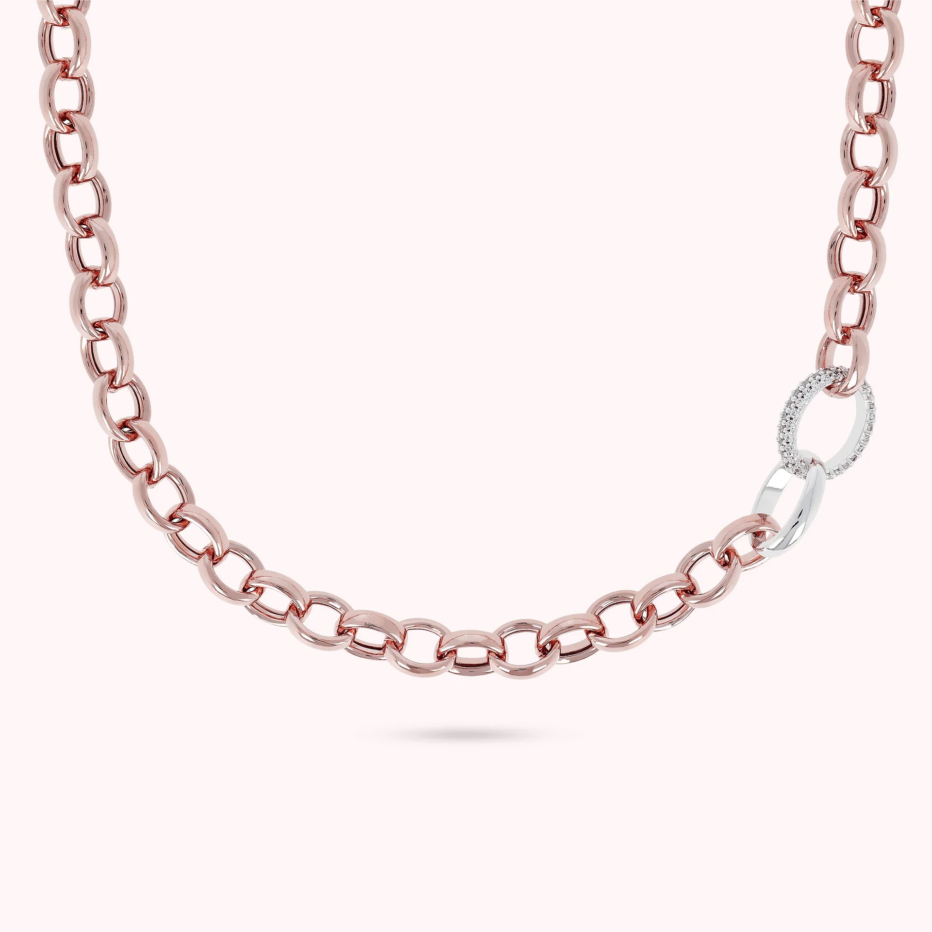 Bronzallure matinee necklace made of Golden Rosé alloy, 18kt rose gold plated, formed by a thick rolo chain embellished with a cubic zirconia pavé detail, luminous quality; lobster clasp. Elegant creation, with a perfect design to make your look shine.