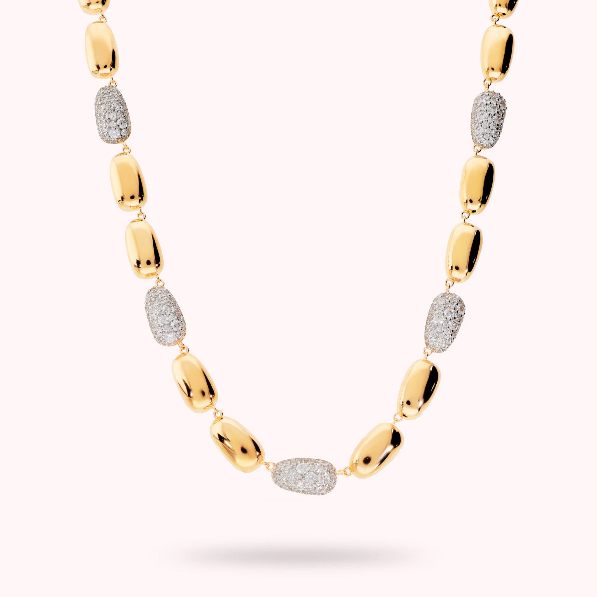Necklace with Shiny Nuggets and Cubic Zirconia Pavé
