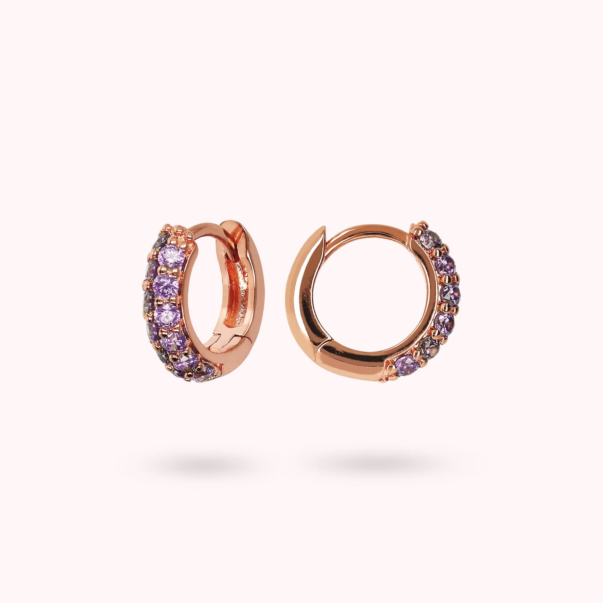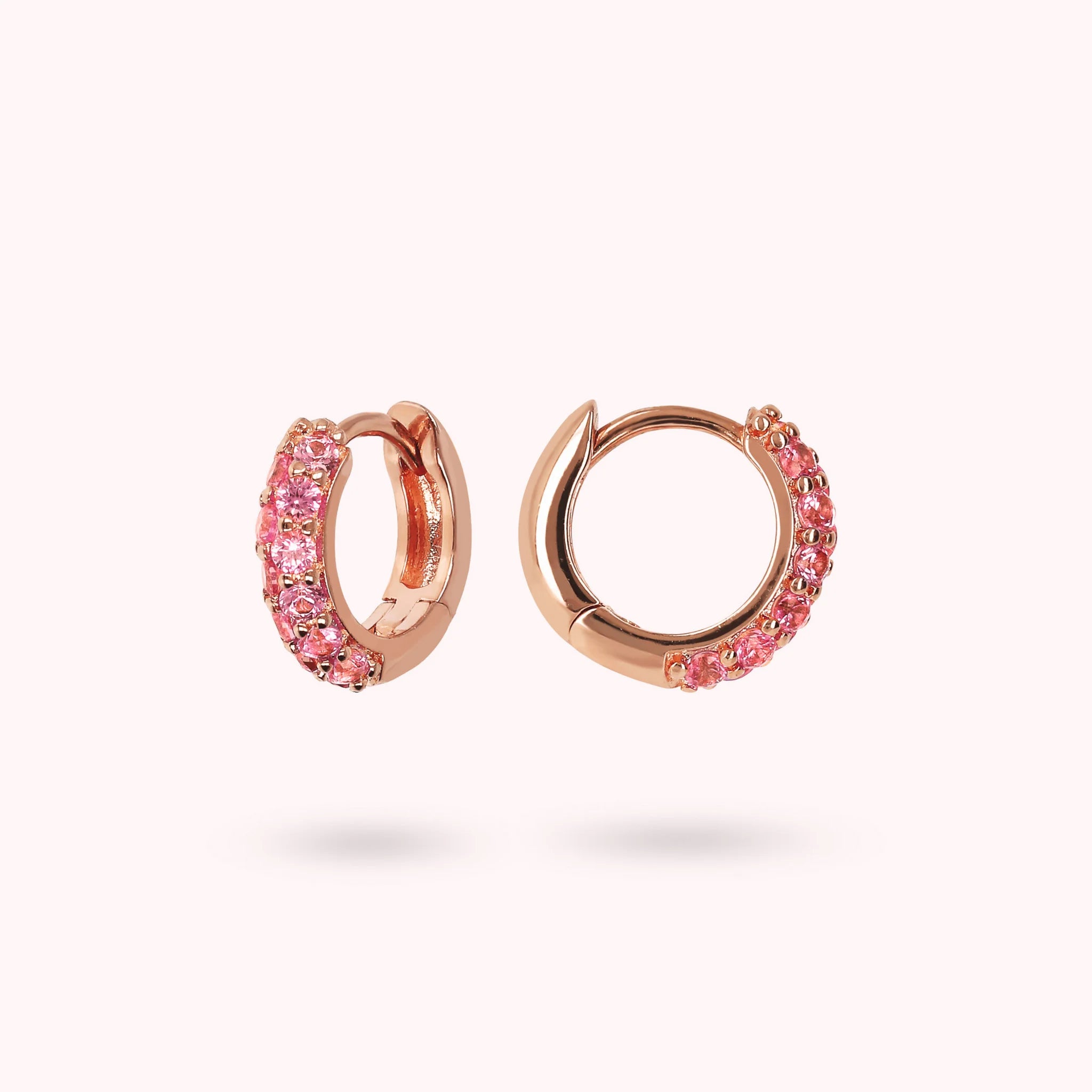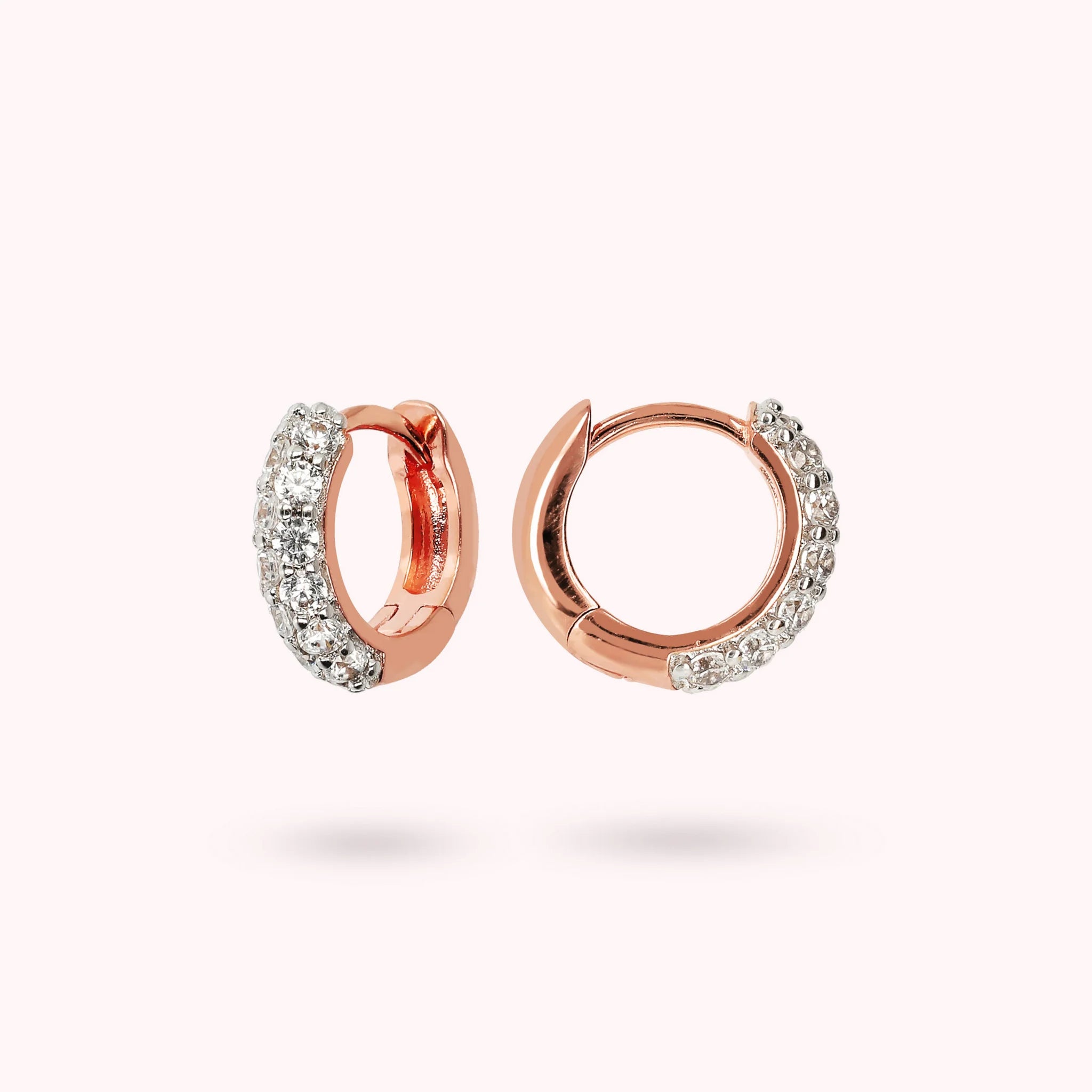 Bronzallure hoop earrings made of Golden Rosé alloy, 18kt rose gold plated, embellished with cubic zirconia pavé, luminous quality; closure with interlocking pin. External diameter 1 cm.