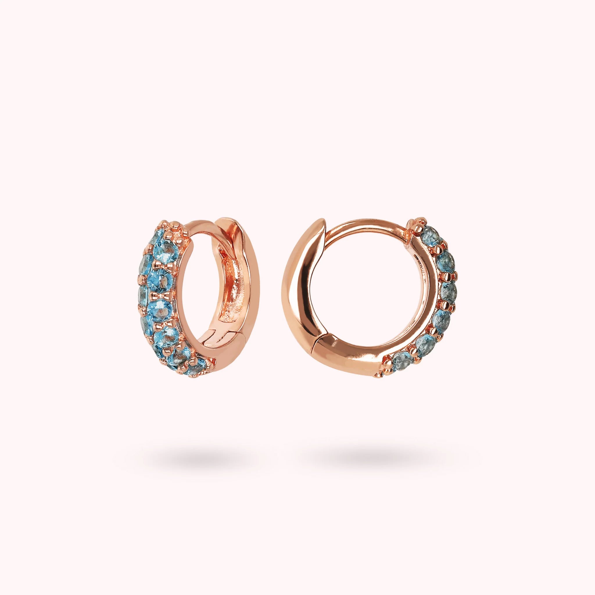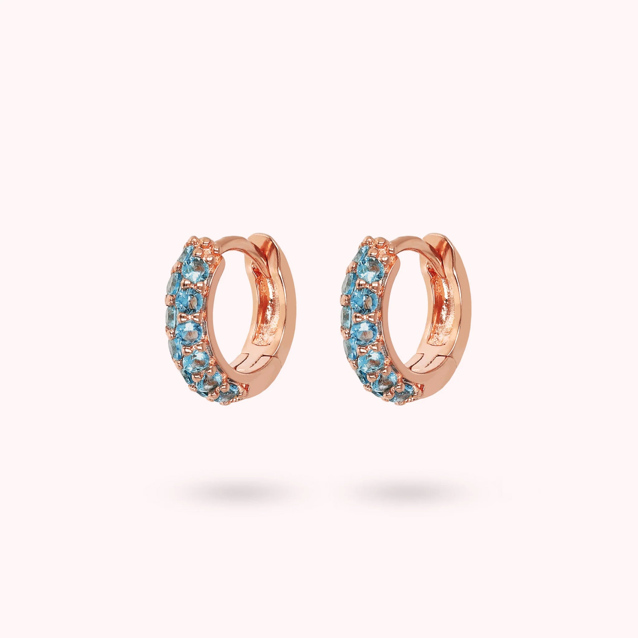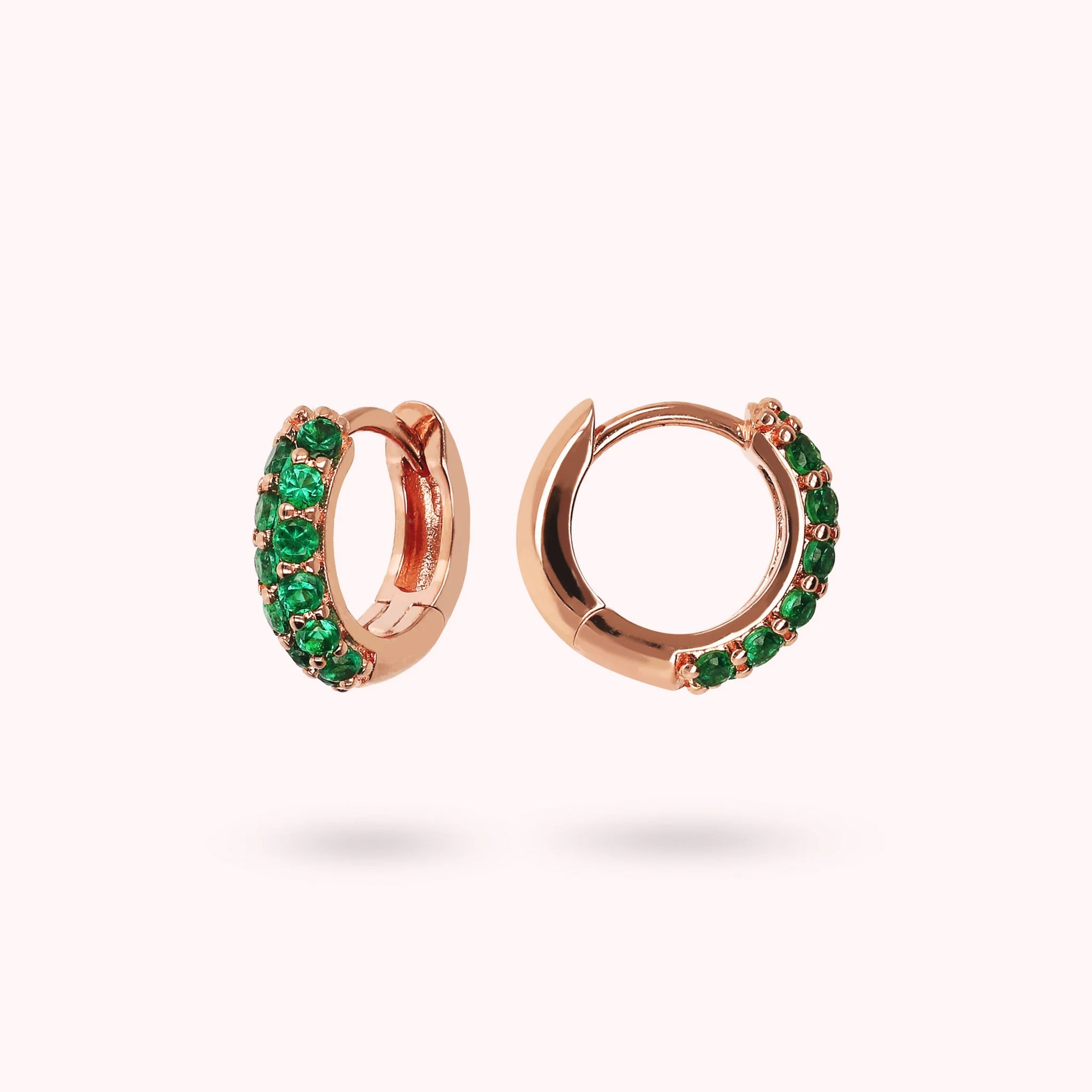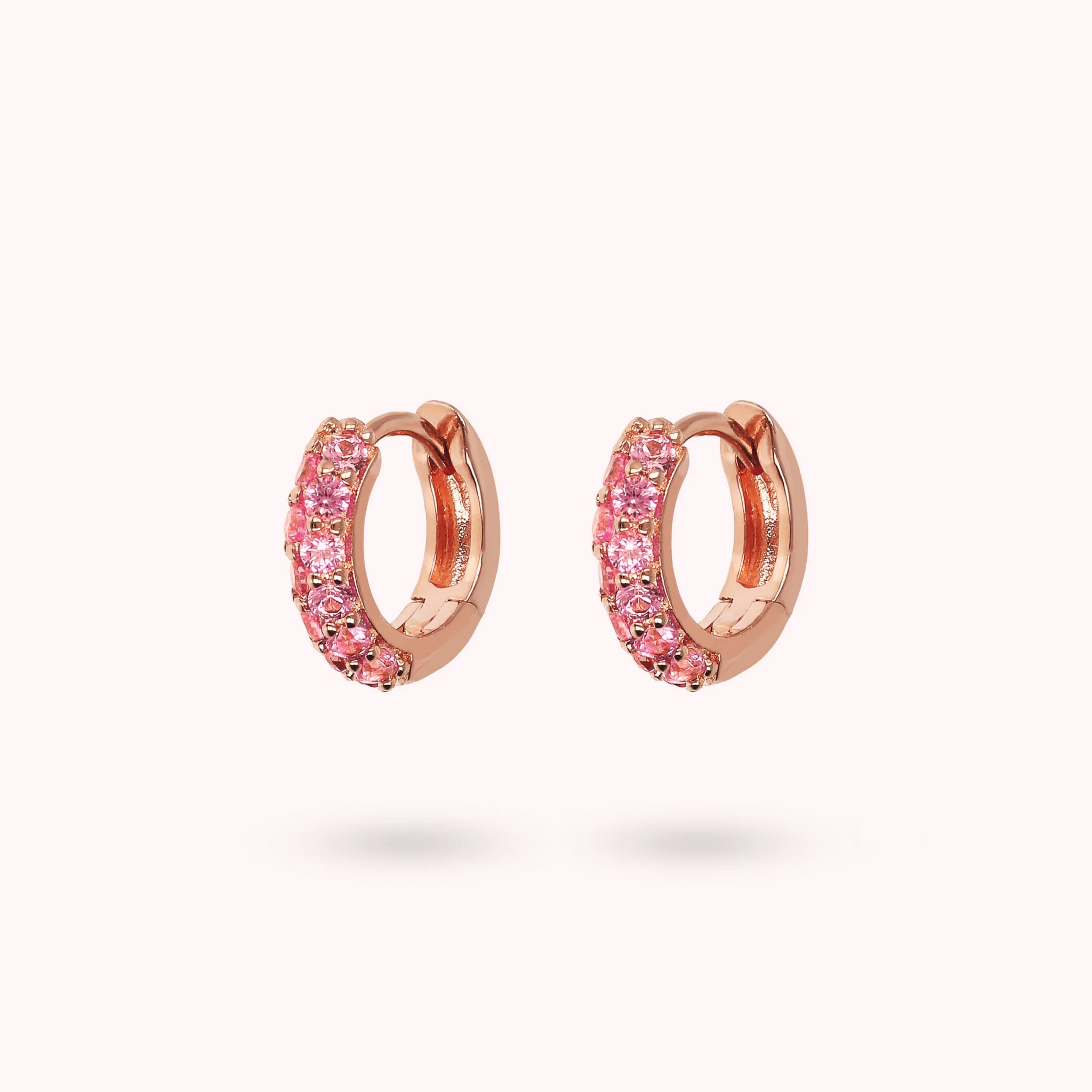 Bronzallure hoop earrings made of Golden Rosé alloy, 18kt rose gold plated, embellished with cubic zirconia pavé, luminous quality; closure with interlocking pin. External diameter 1 cm.