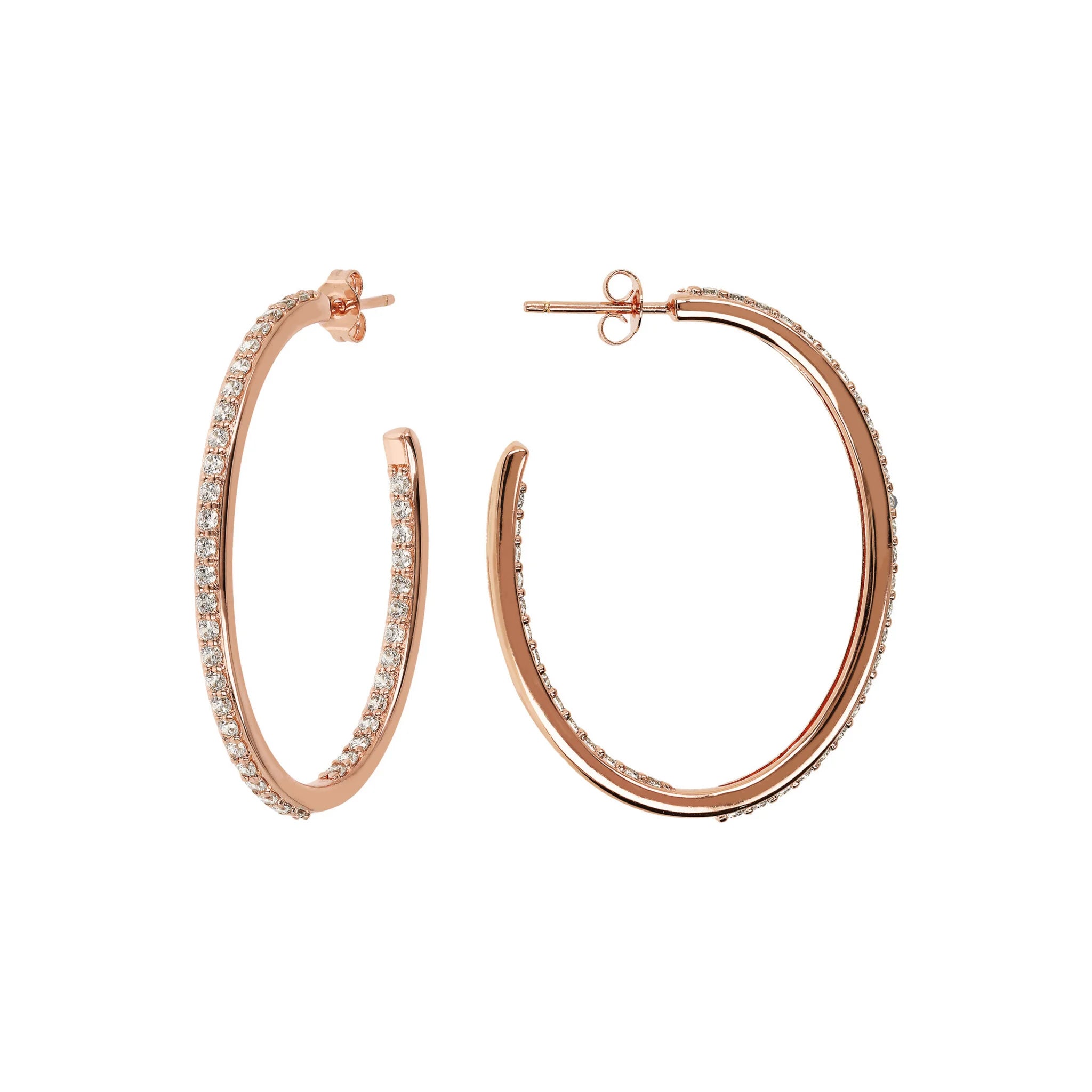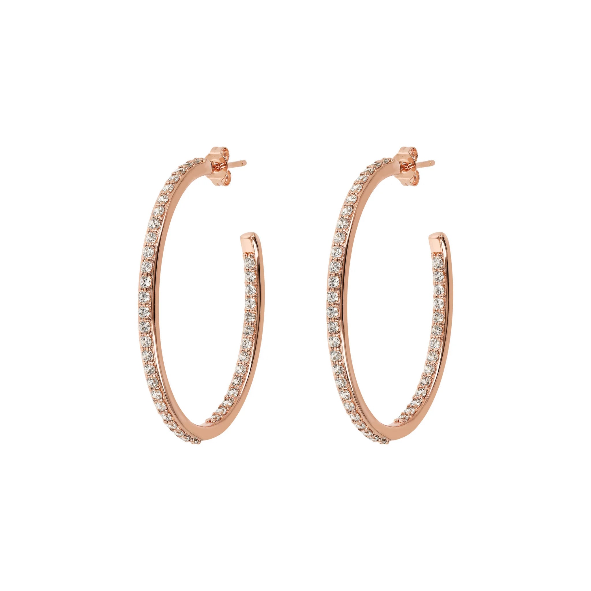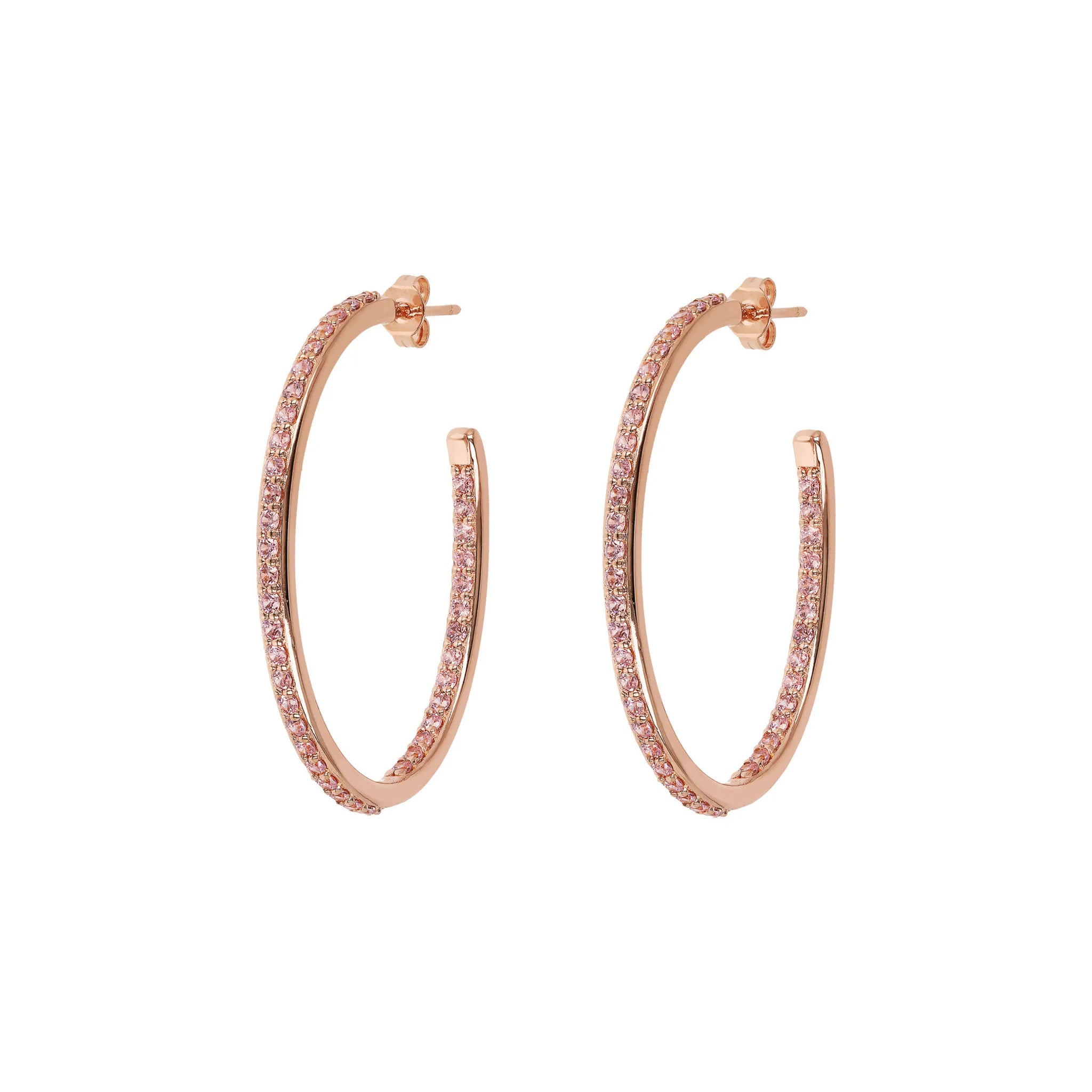 Bronzallure hoop earrings made of Golden Rosé alloy, 18kt rose gold plated, embellished with cubic zirconia, with joyful and radiant colors, placed externally on the front and internally on the back; stud and butterfly closure. Elegant creation, with a perfect design to make your look shine.