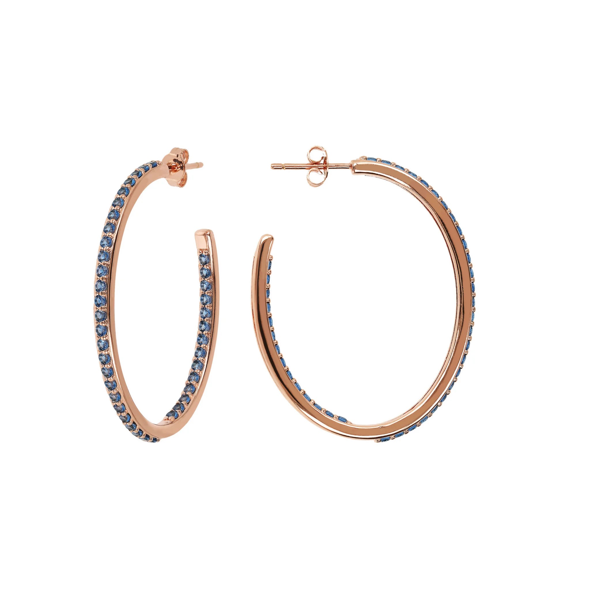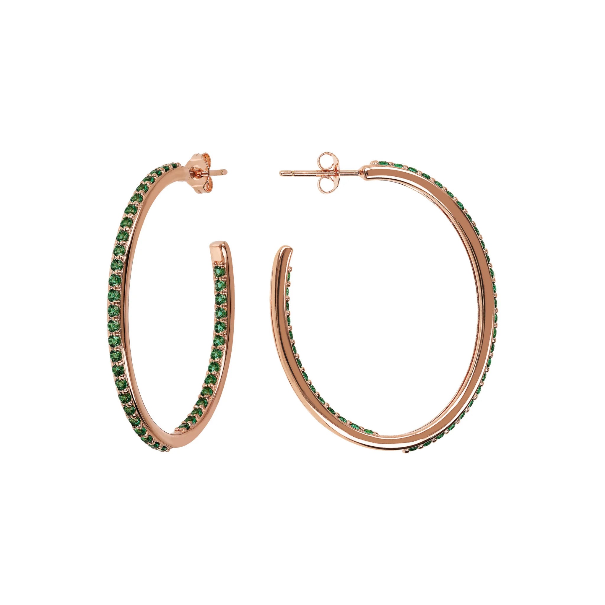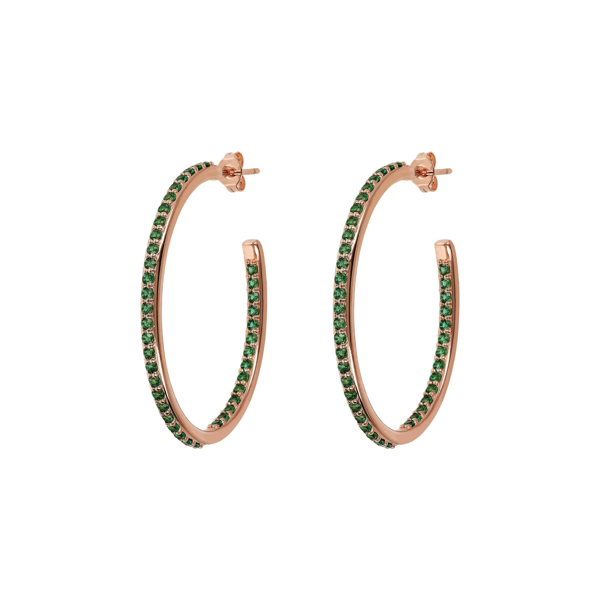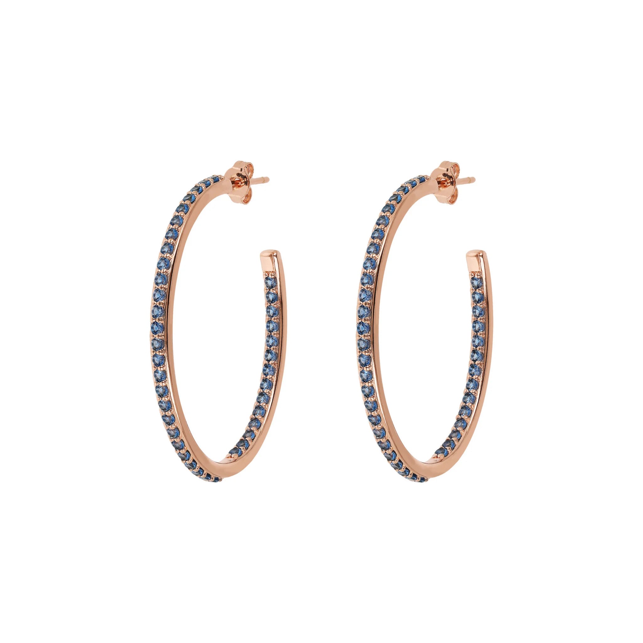 Bronzallure hoop earrings made of Golden Rosé alloy, 18kt rose gold plated, embellished with cubic zirconia, with joyful and radiant colors, placed externally on the front and internally on the back; stud and butterfly closure. Elegant creation, with a perfect design to make your look shine.