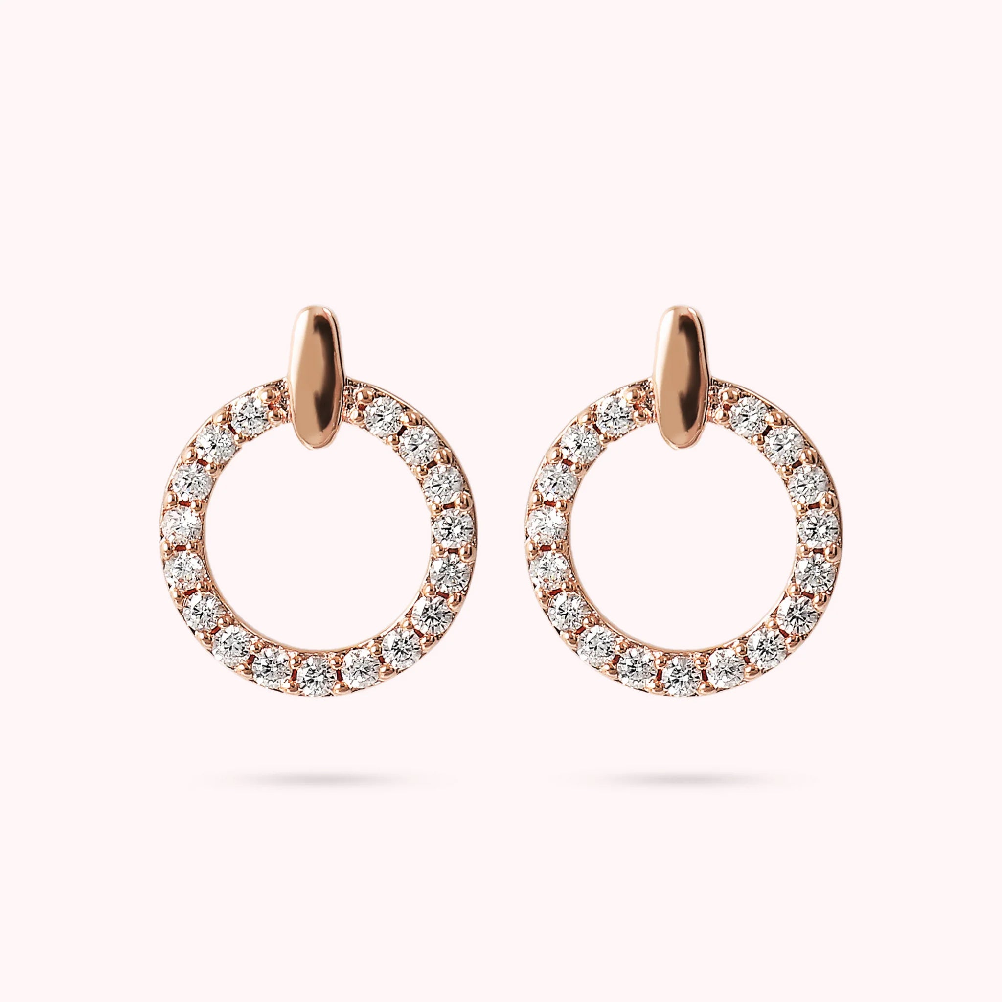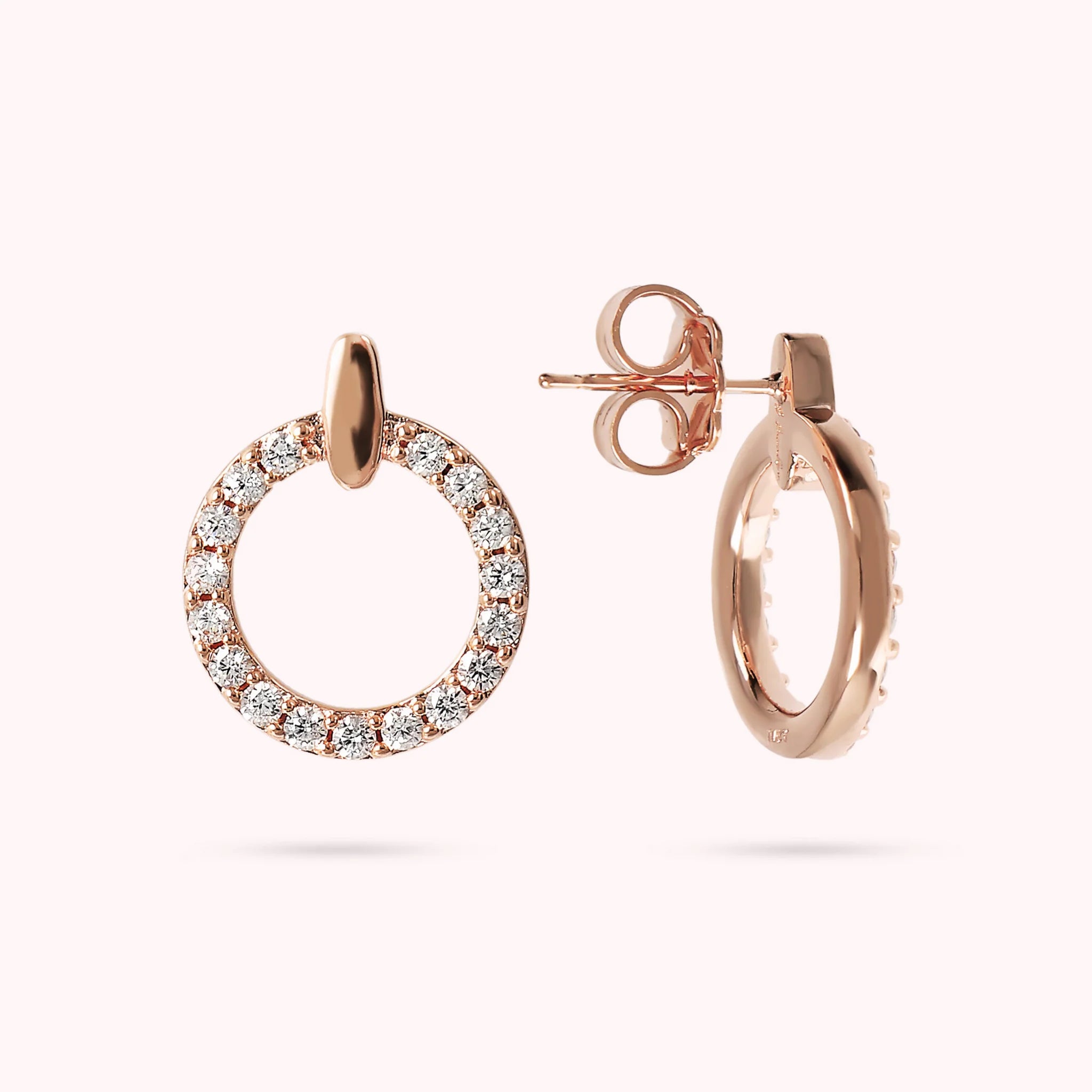 Bronzallure stud earrings made of Golden Rosé alloy, 18kt rose gold plated, embellished with cubic zirconia circles, luminous quality, mounted on an 18kt rose gold plated base; stud and butterfly closure. Elegant creation, with a perfect design to make your look shine.