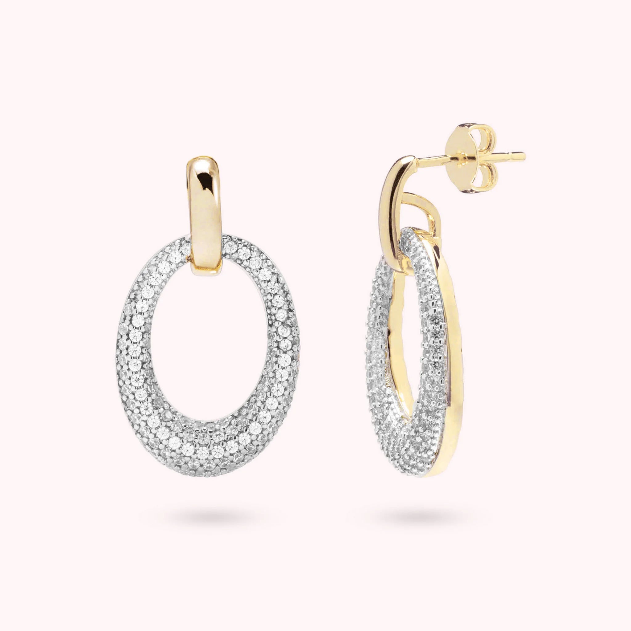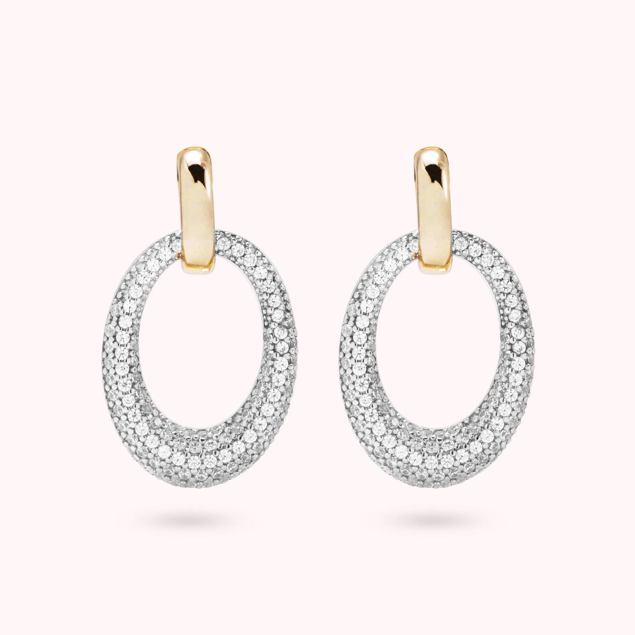 Golden Oval Pavé Earrings in Cubic Zirconia