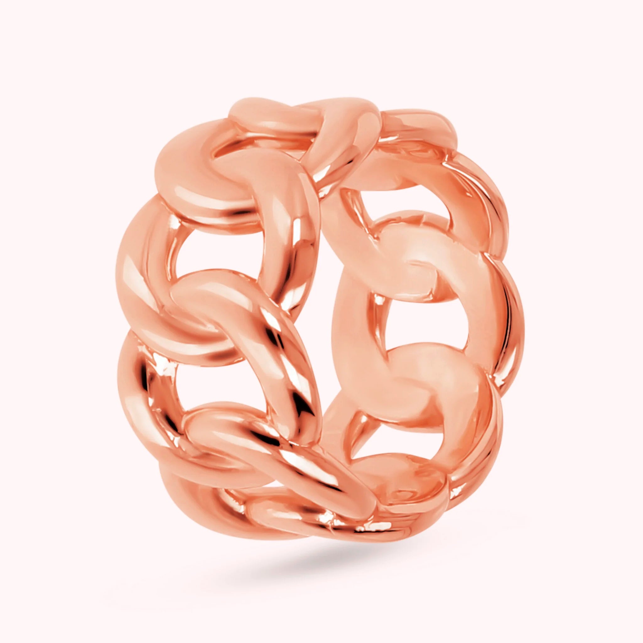 Bronzallure band ring made on a Golden Rosé base, 18kt rose gold plated with curb chain.