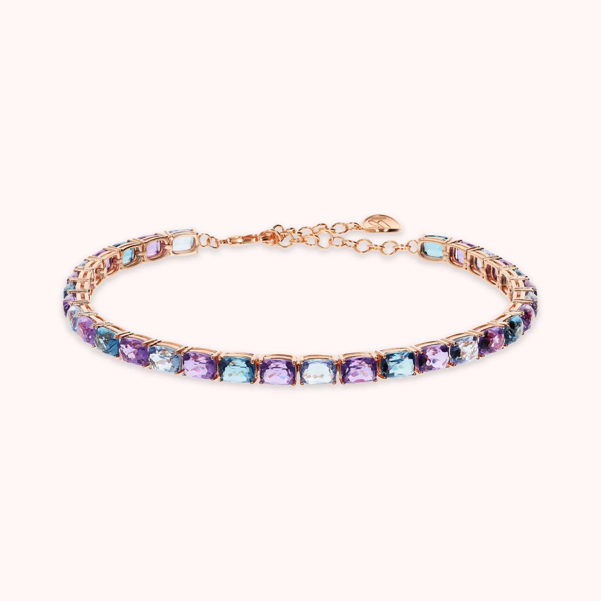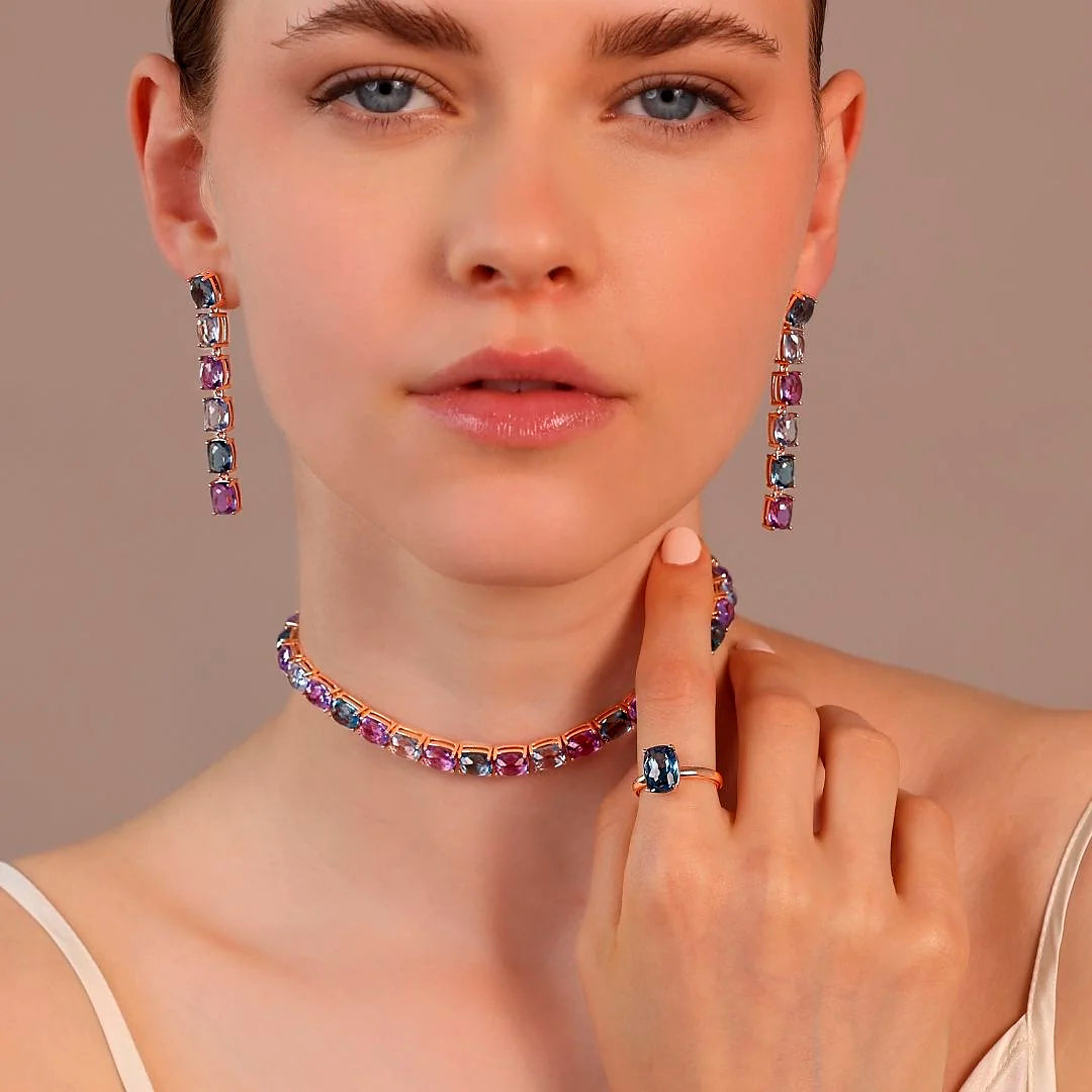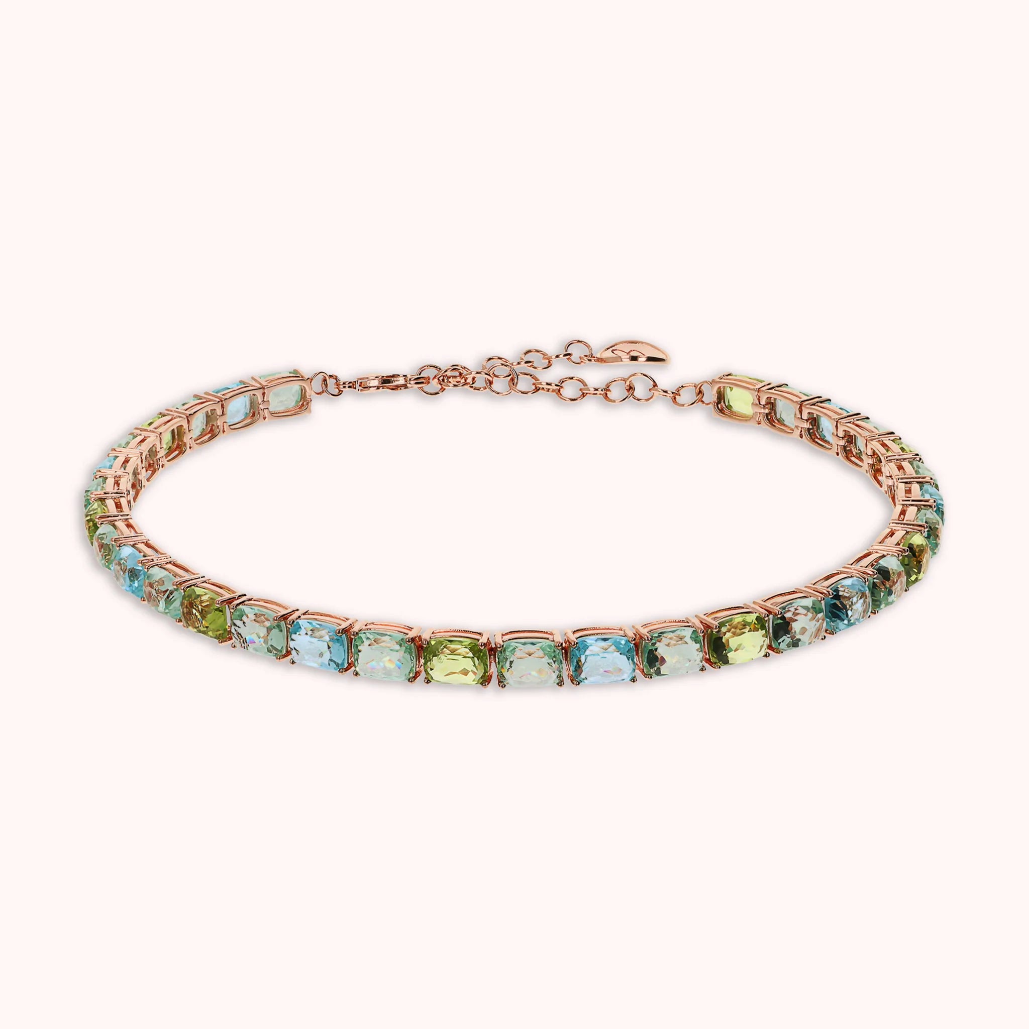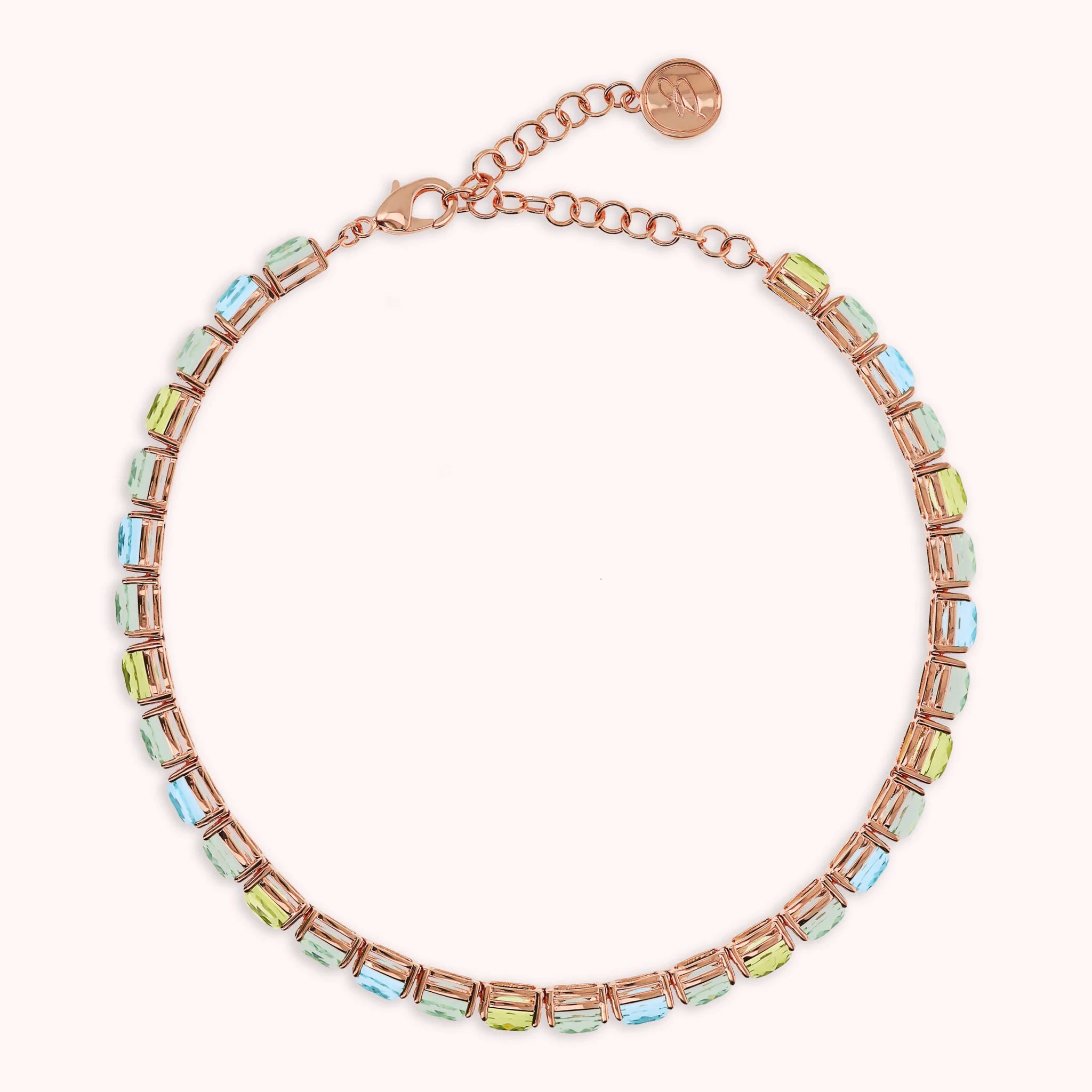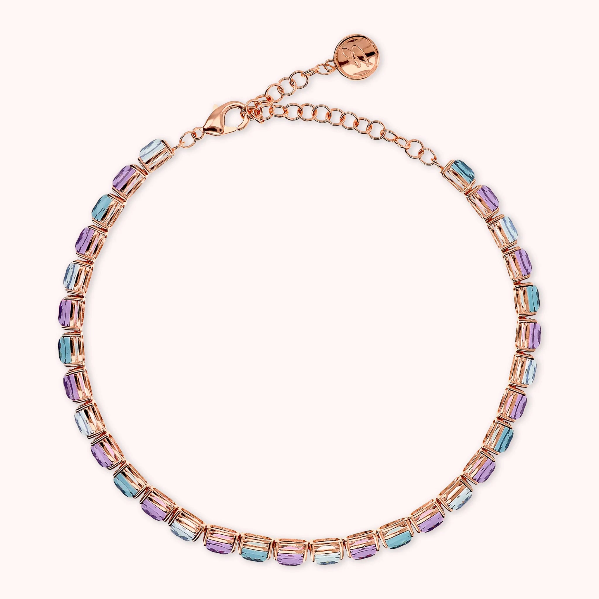 Bronzallure choker necklace made of Golden Rosé alloy, 18kt rose gold plated, entirely embellished with rectangular gem prism stones (8x11 mm) with a mosaic cut. Lobster clasp closure and 28+7 cm extension length.