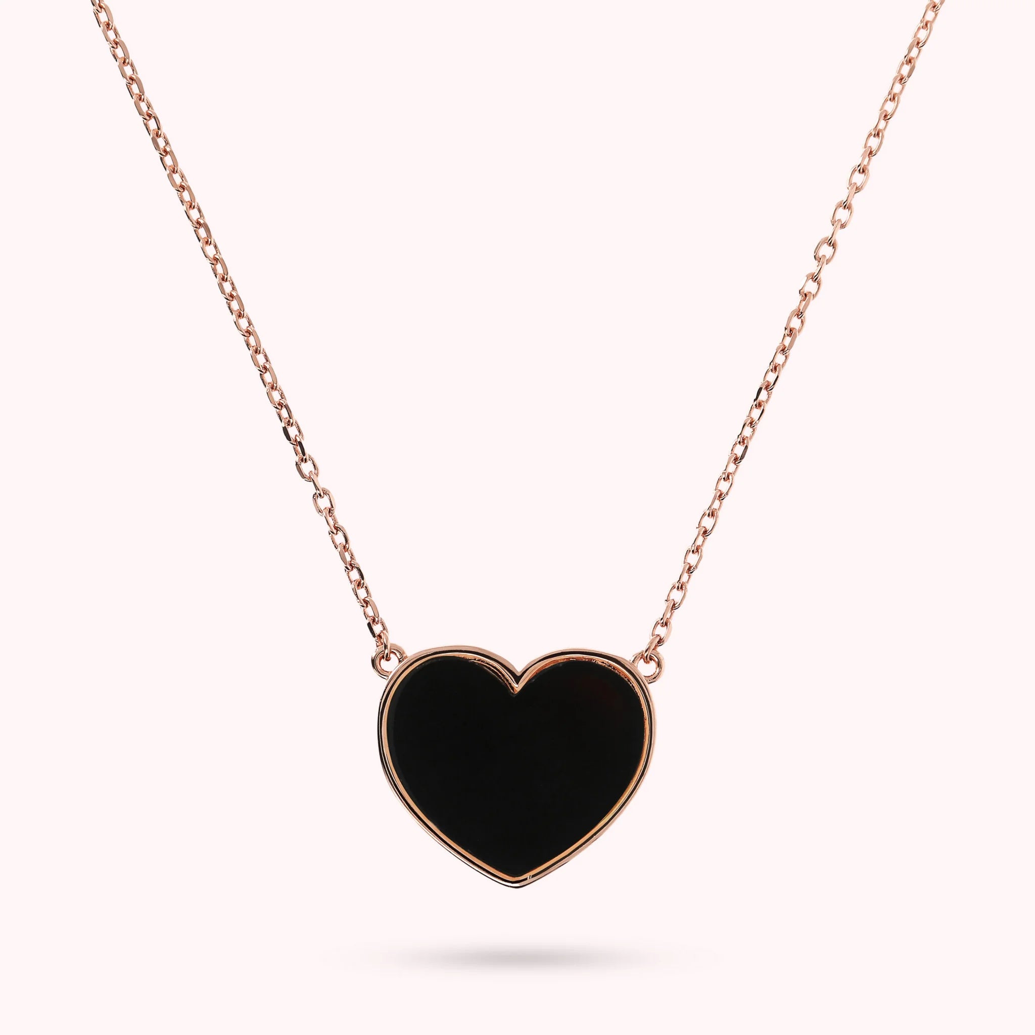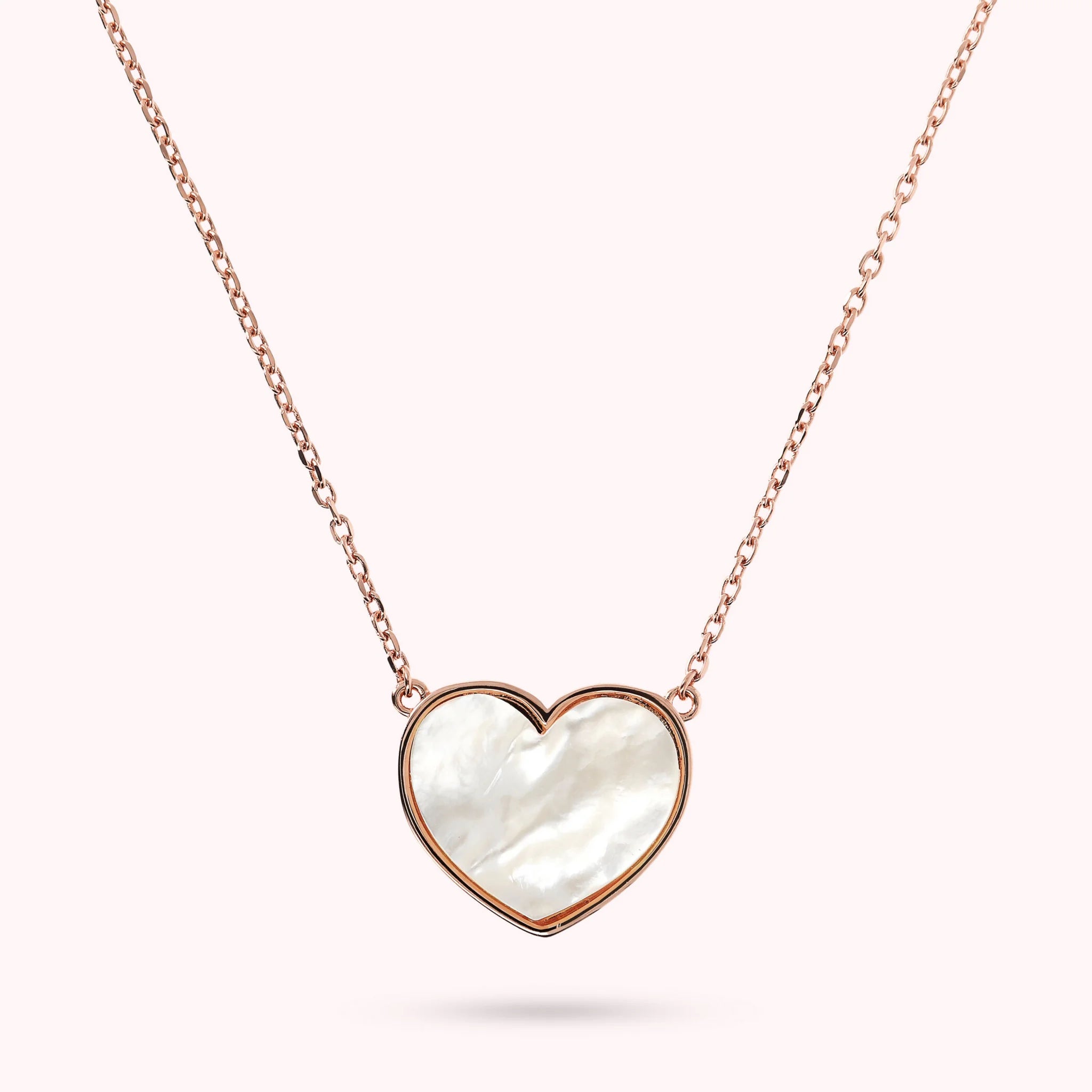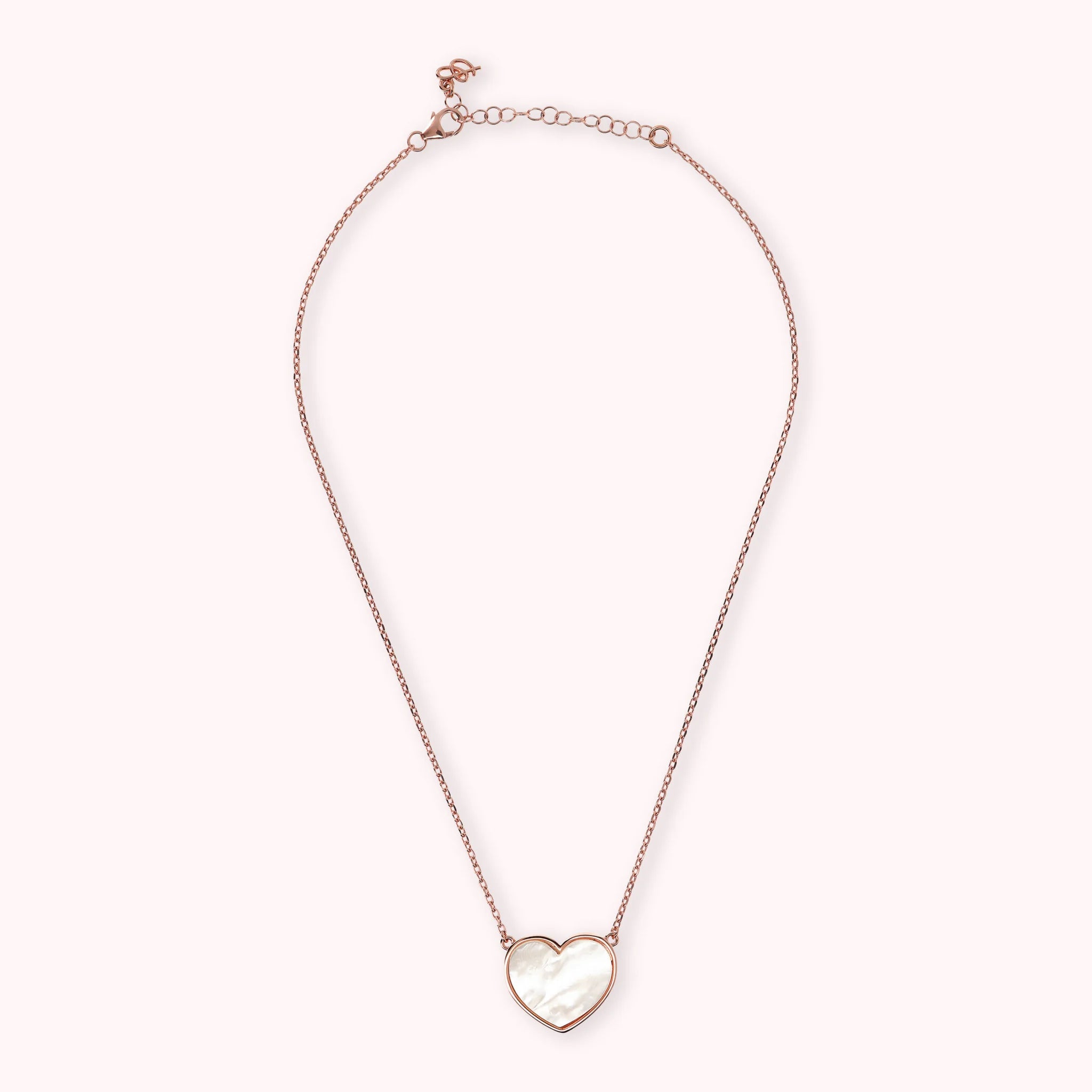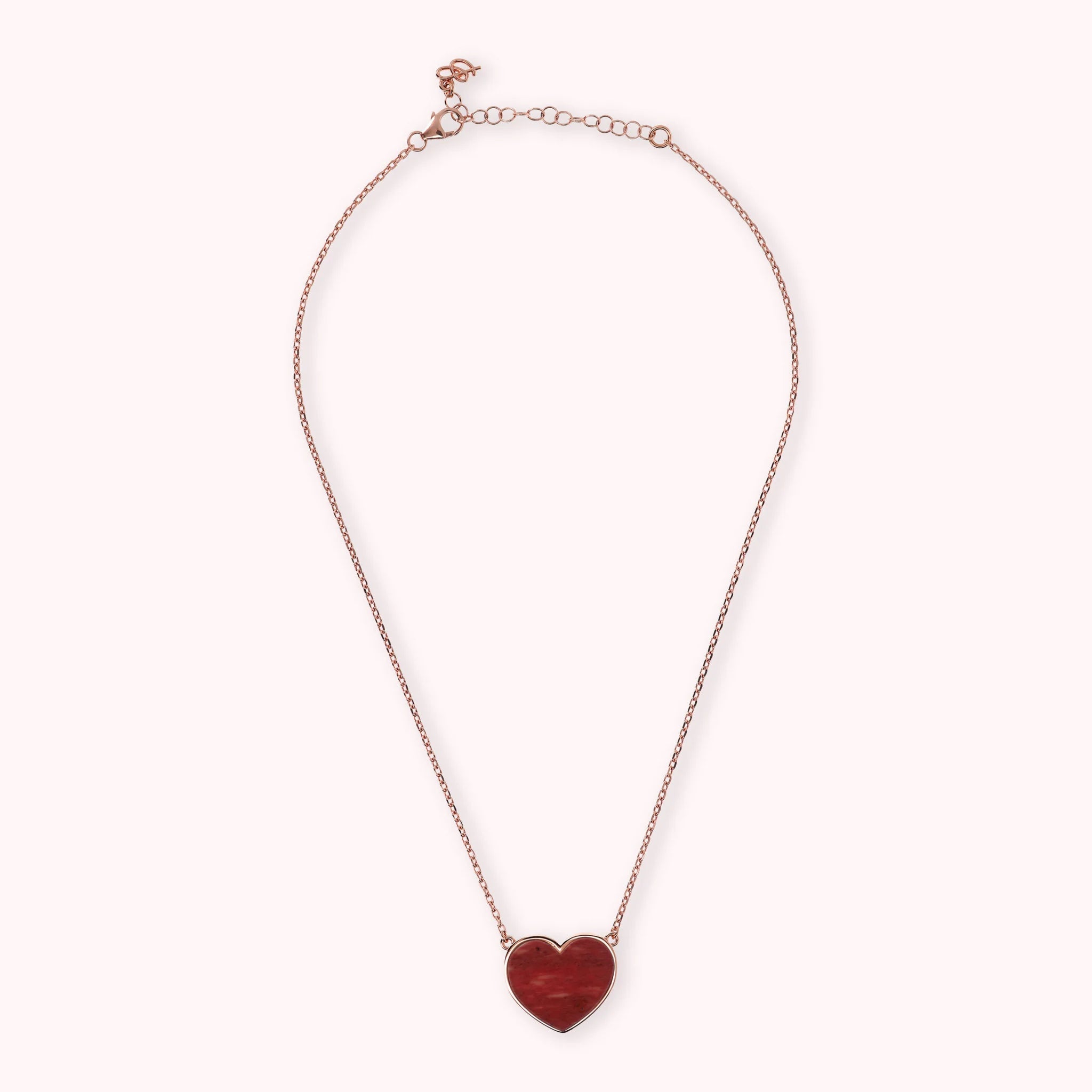 Bronzallure necklace made of Golden Rosé alloy, 18kt rose gold plated, with rolo chain embellished with a heart pendant in natural stone (2.4 cm), snap hook closure with extender.