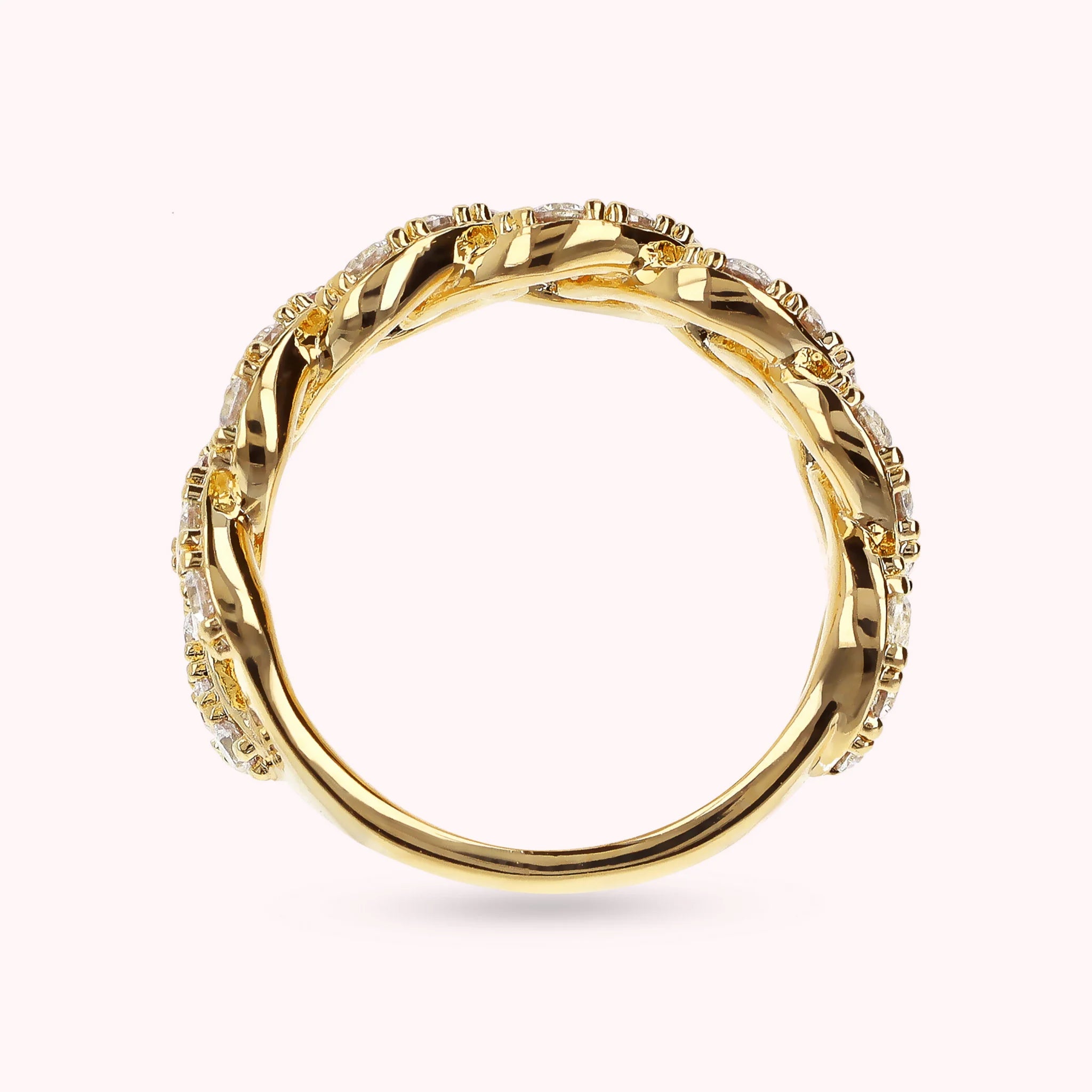 Golden Squared Chain Band Ring with Cubic Zirconia Pavé