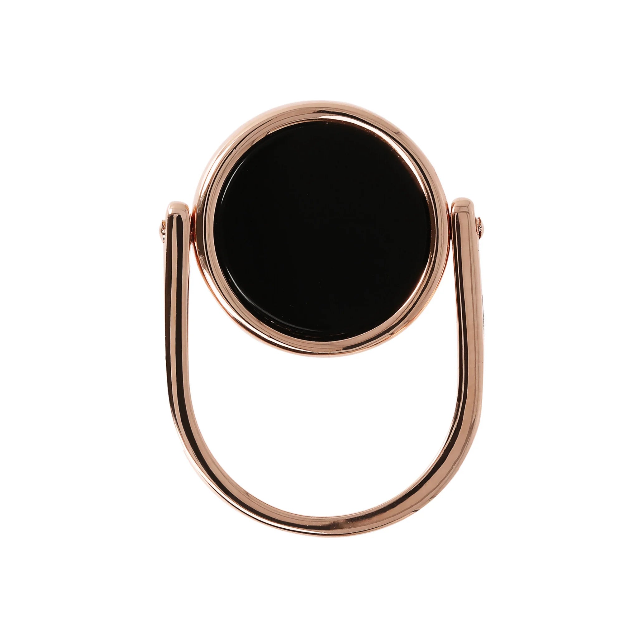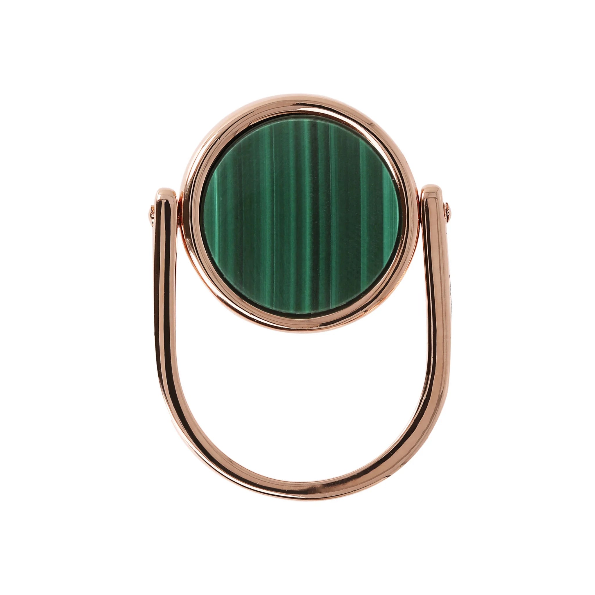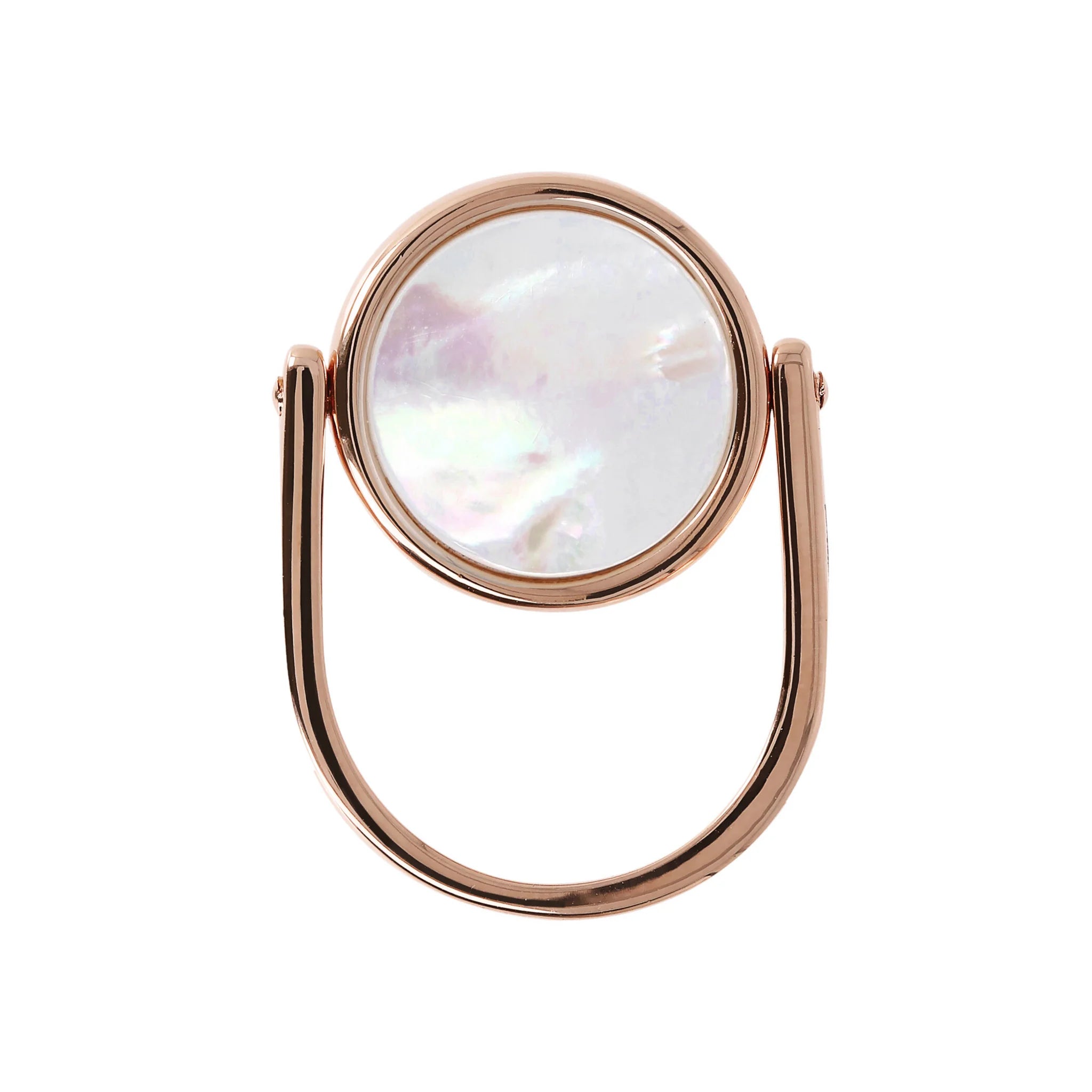 Bronzallure rotating cocktail ring made of Golden Rosé alloy, 18kt rose gold plated, embellished on one side with a round natural stone and on the other with a pierced cross-shaped element.