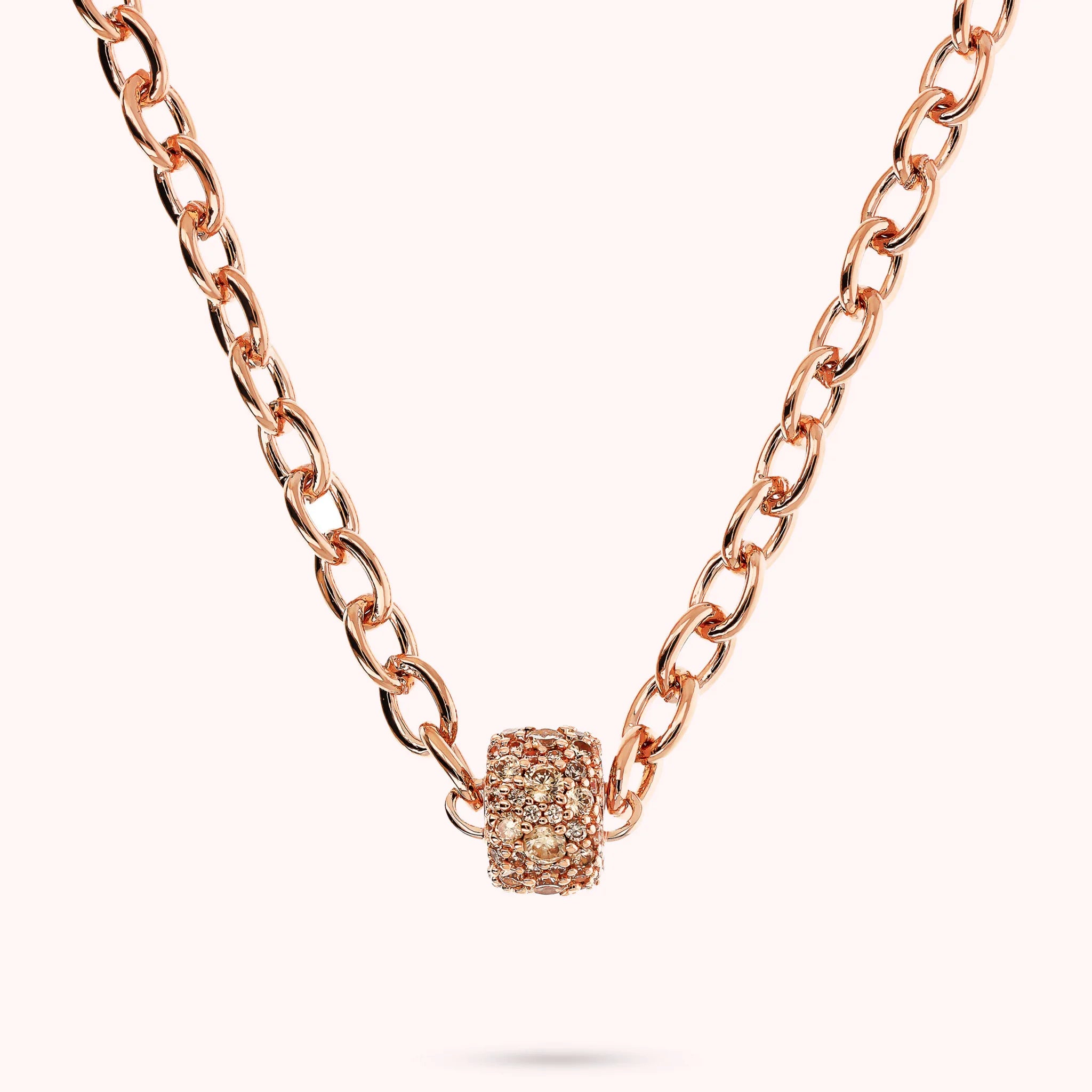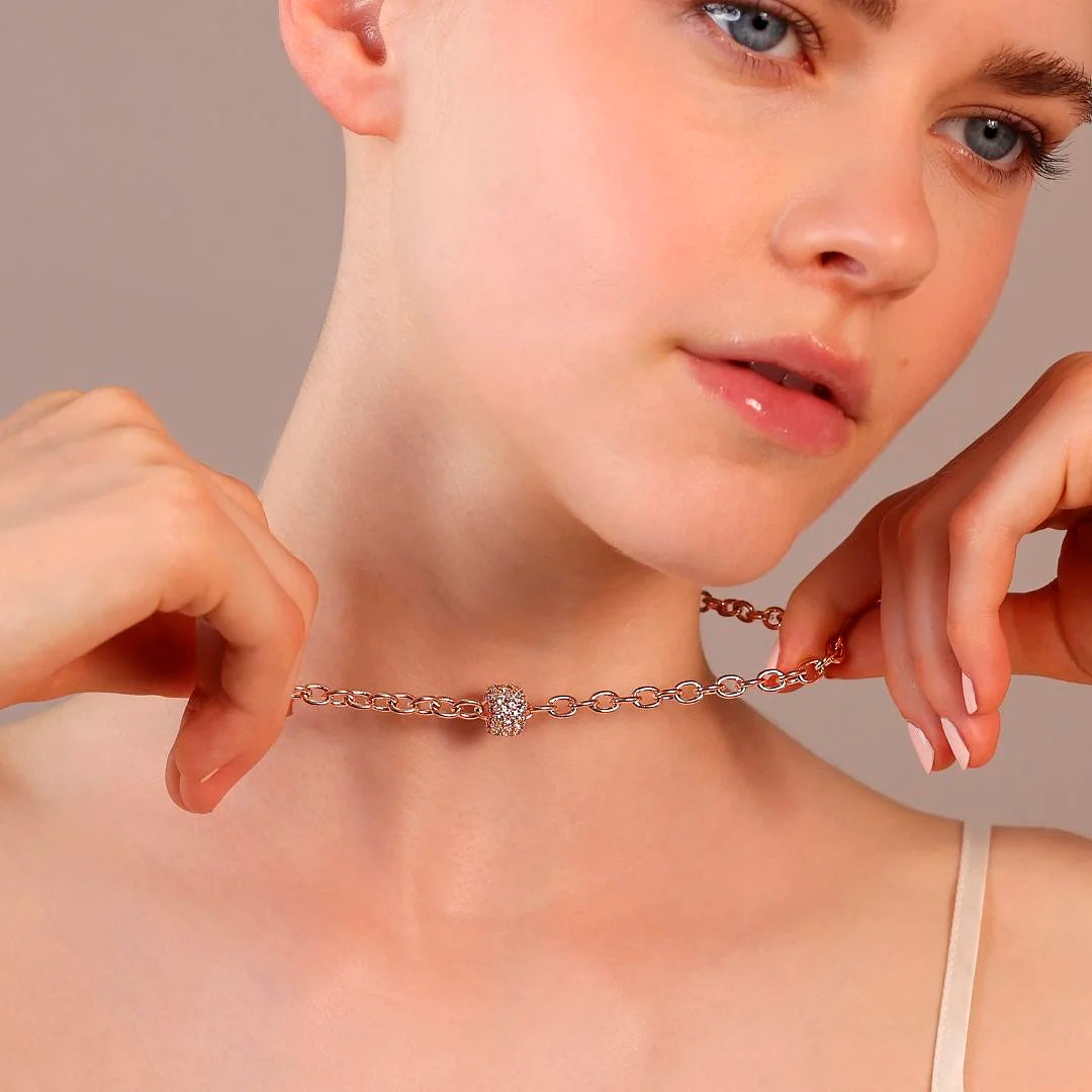 Bronzallure choker necklace made of Golden Rosé alloy, 18kt rose gold plated, with shiny oval rolo chain embellished with a washer-shaped pendant in cubic zirconia pavé, luminous quality. Length 40+4 cm extension. Lobster clasp closure.
