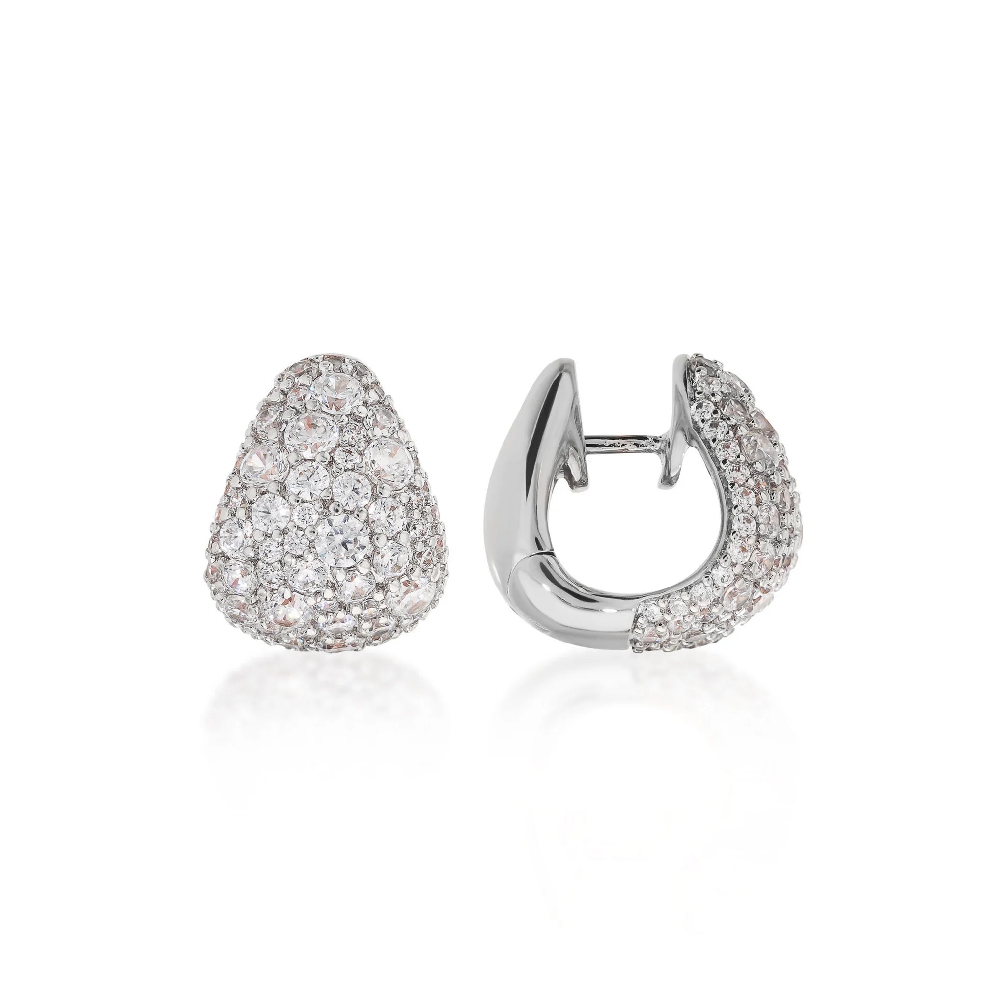 Bronzallure stud earrings made of Golden Rosé alloy, plated with 18kt white gold, featuring a drop design with a pavé surface of cubic zirconia, luminous quality.