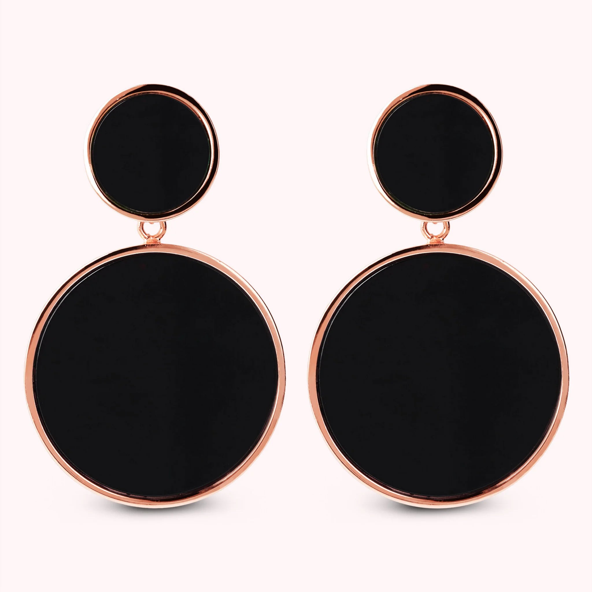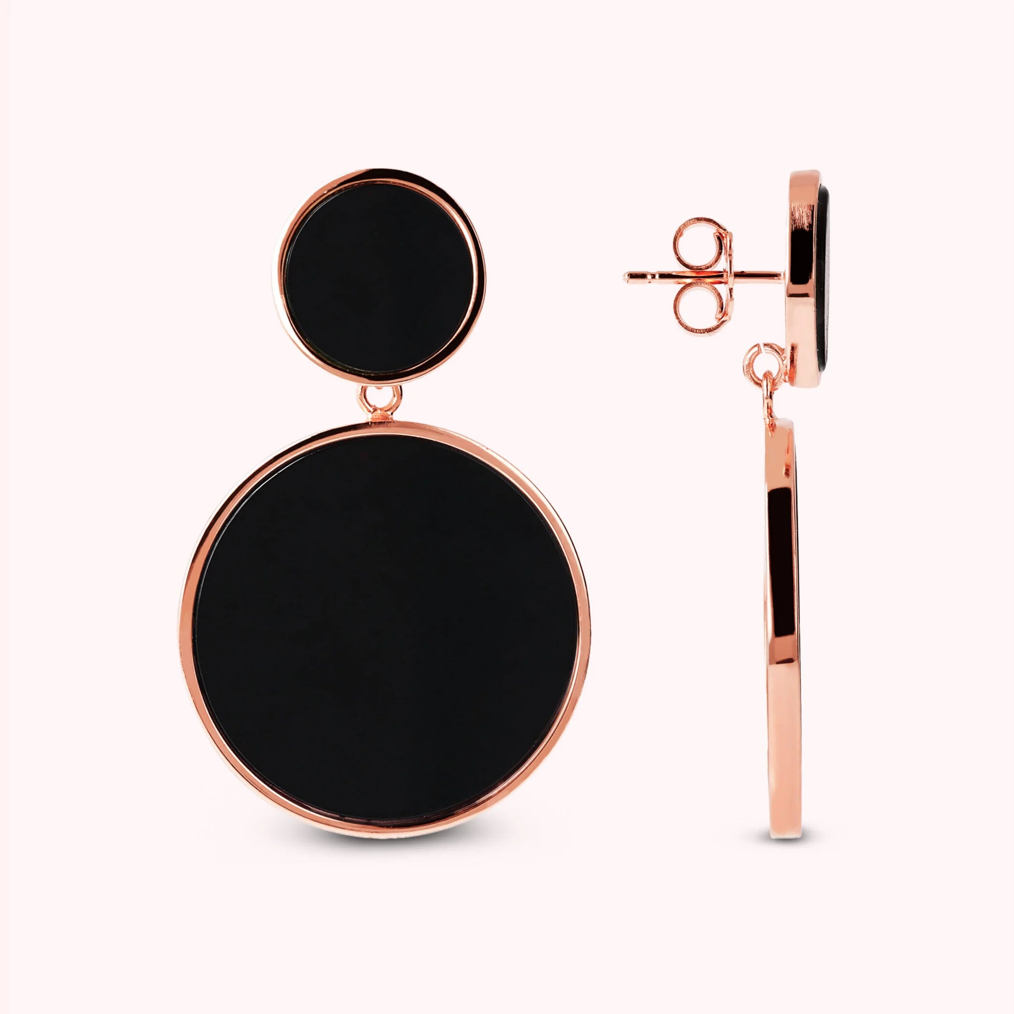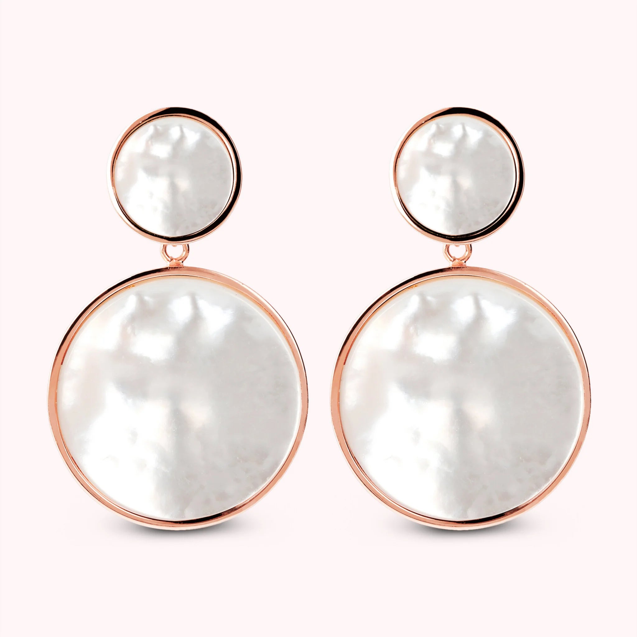 Bronzallure pendant earrings made of Golden Rosé alloy, 18kt rose gold plated with double disc with natural stone or pearl, one small (1.2 cm) and one large (2.5 cm) mounted on an 18kt rose gold plated base; stud and butterfly closure.