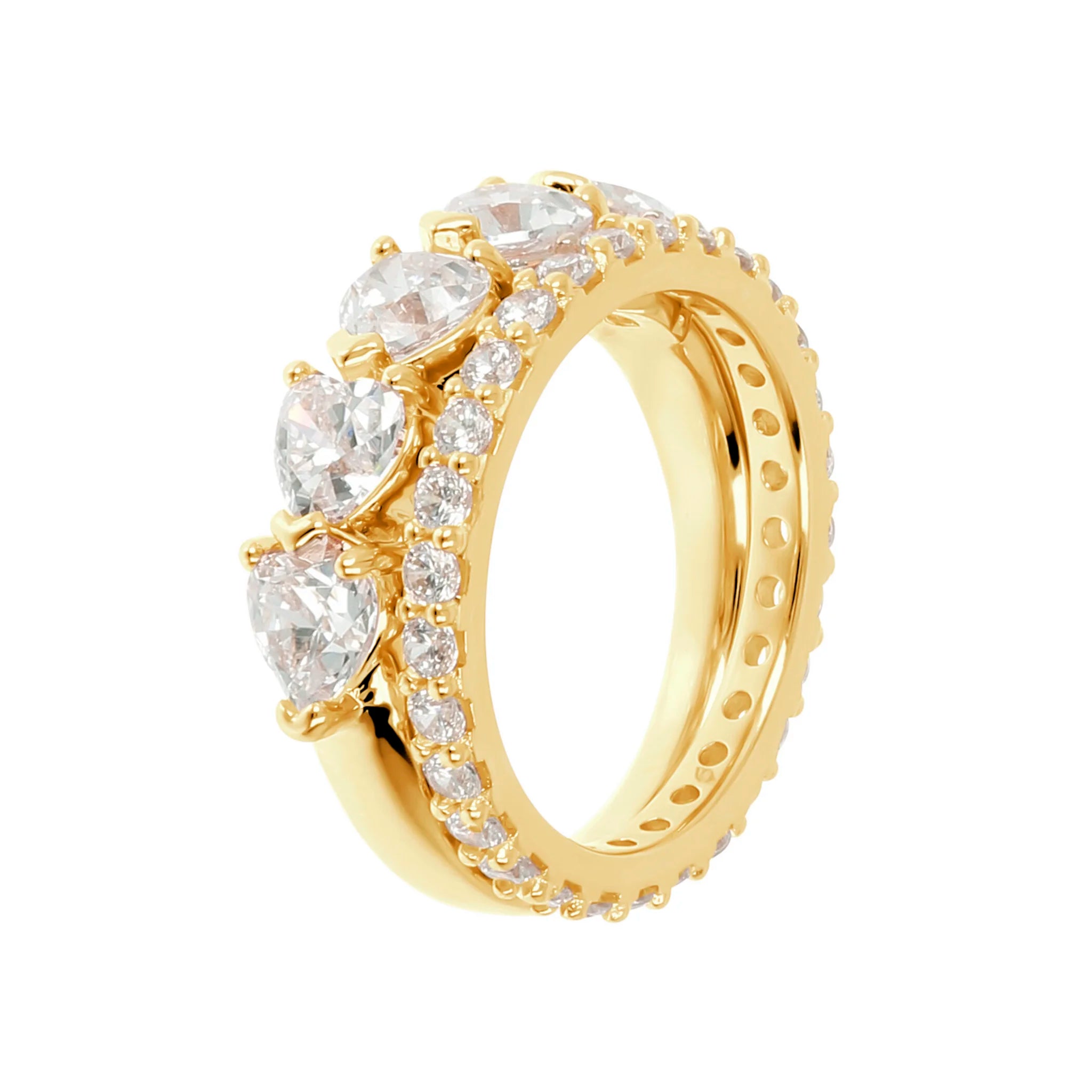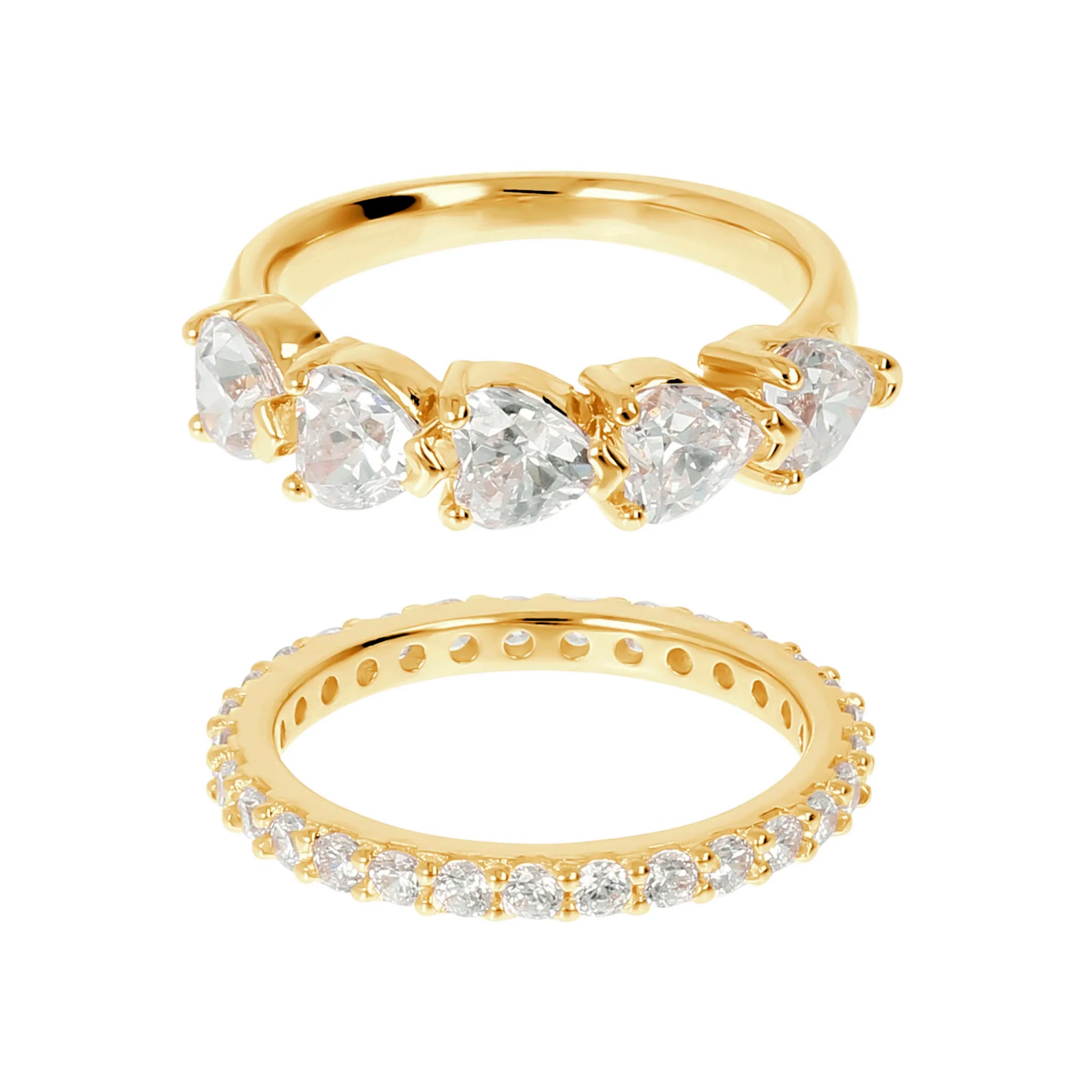 Bronzallure set of rings made of Golden Rosé alloy, 18kt yellow gold plated. The set consists of a riviera ring with hearts made of cubic zirconia and an eternity ring entirely covered with small and refined zircons.