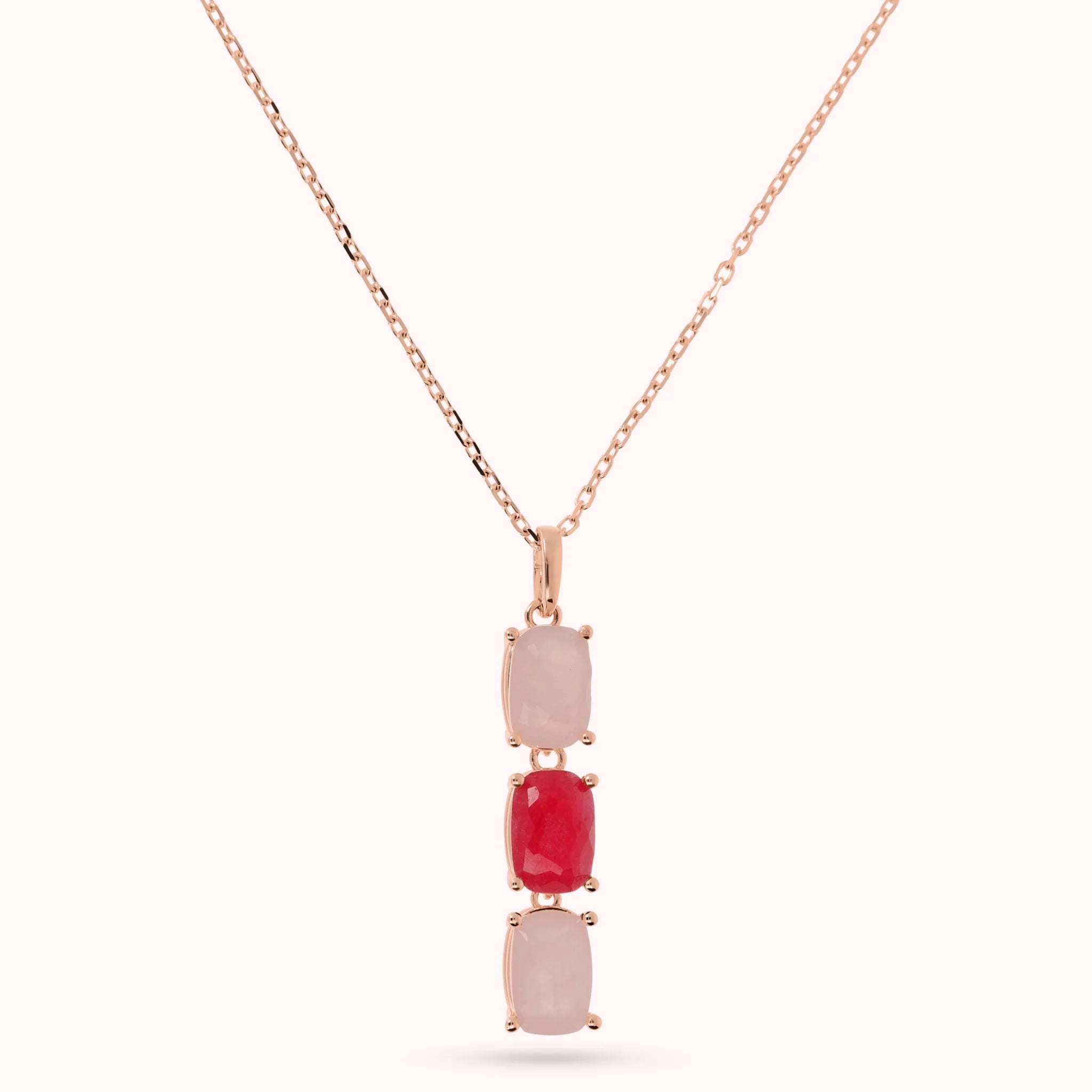 Bronzallure necklace made of Golden Rosé alloy, 18kt rose gold plated, with forzatina chain embellished with a pendant with three oval natural stones (12x8 mm); Adjustable 3-ring lobster clasp closure.