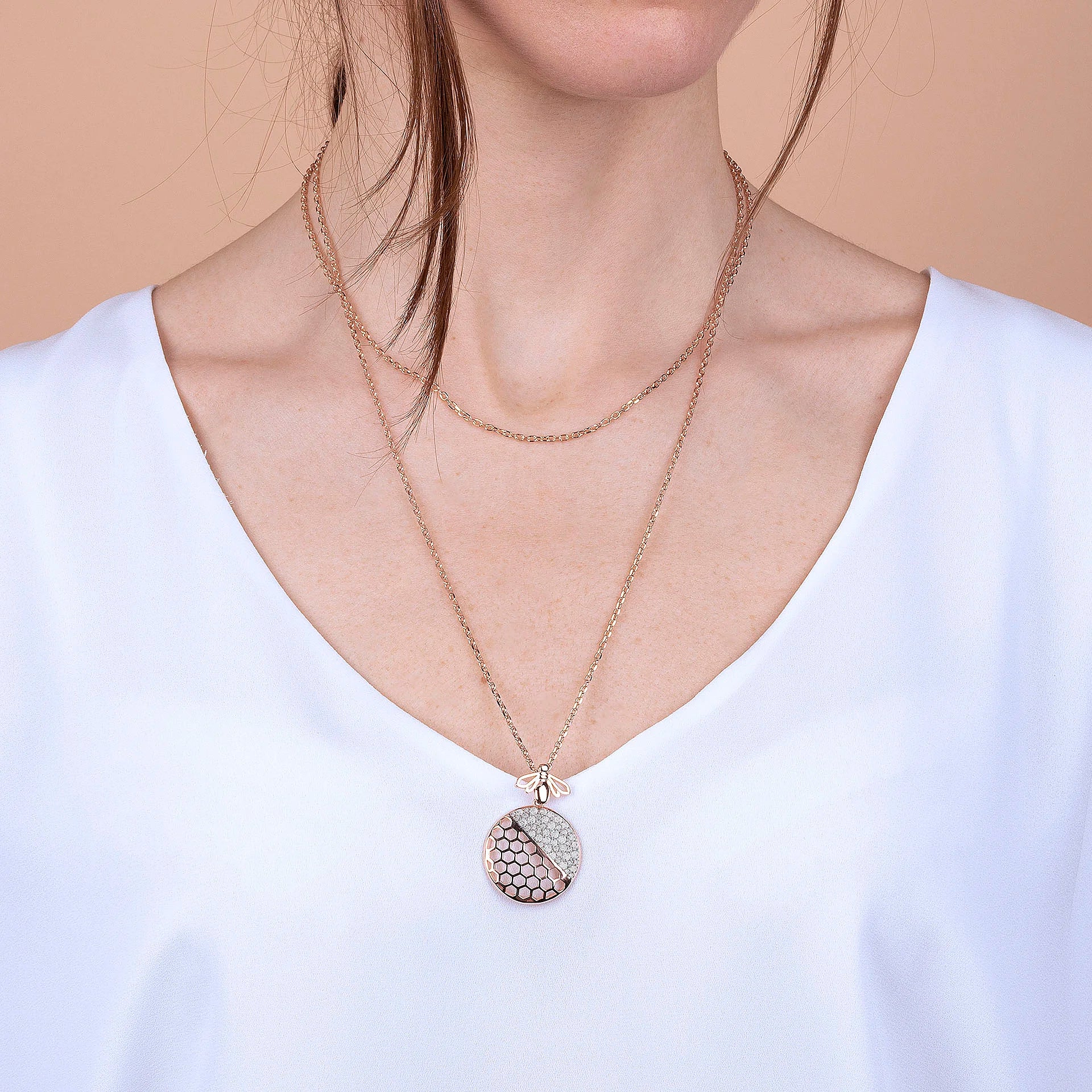 Bee Hive Pendant Necklace with Pavé
