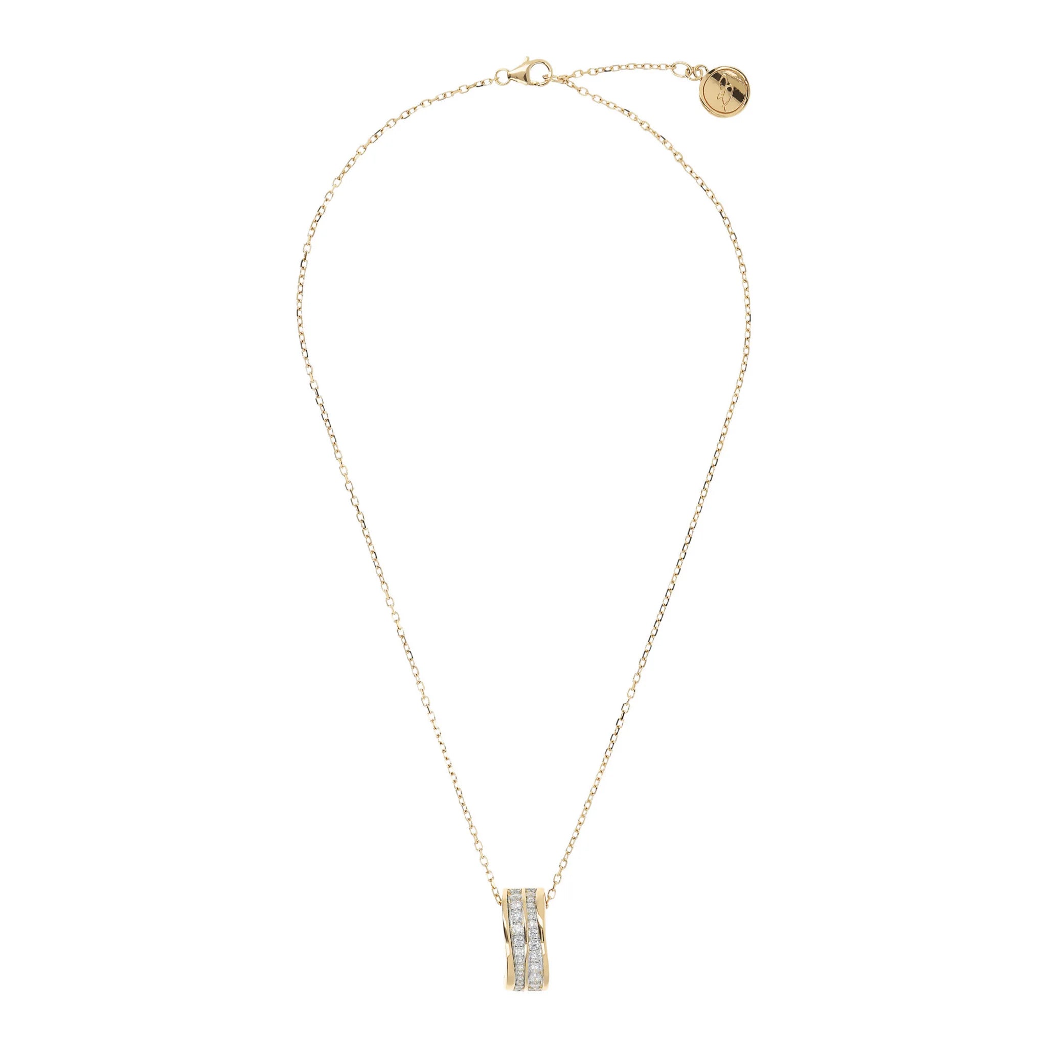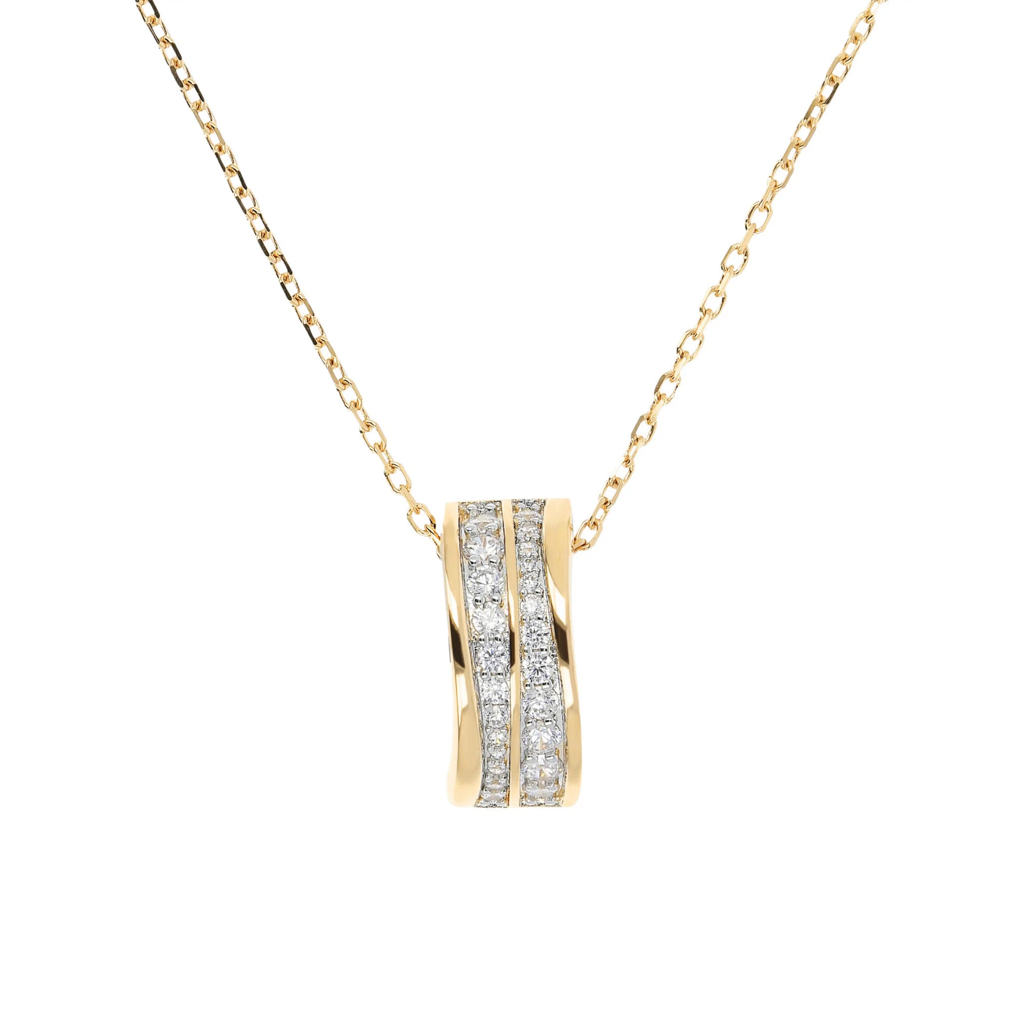 Golden Forzatina Necklace with Double Wave Pendant in Cubic Zirconia