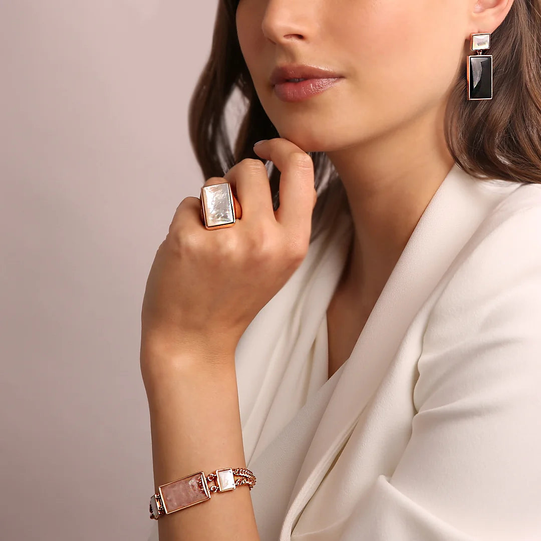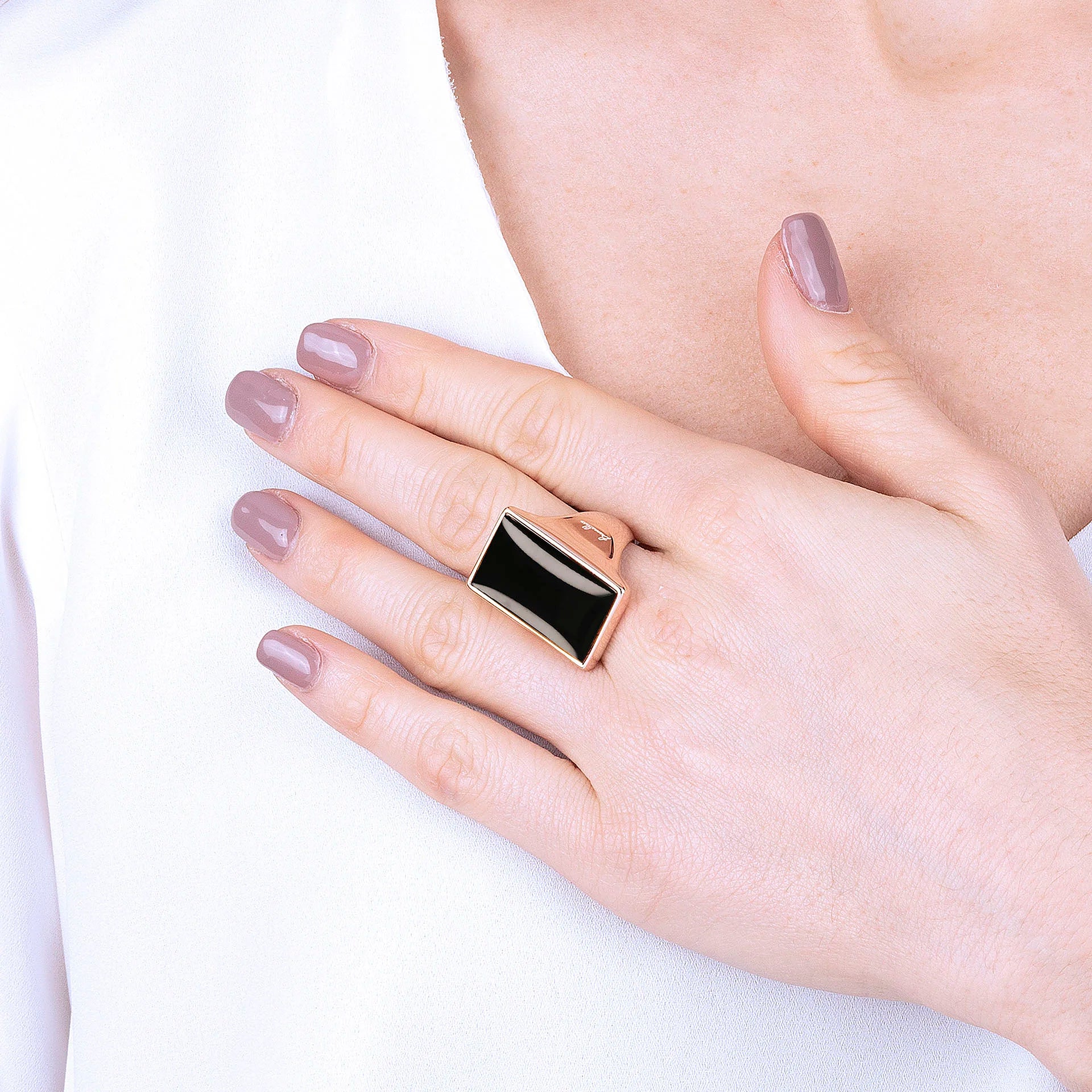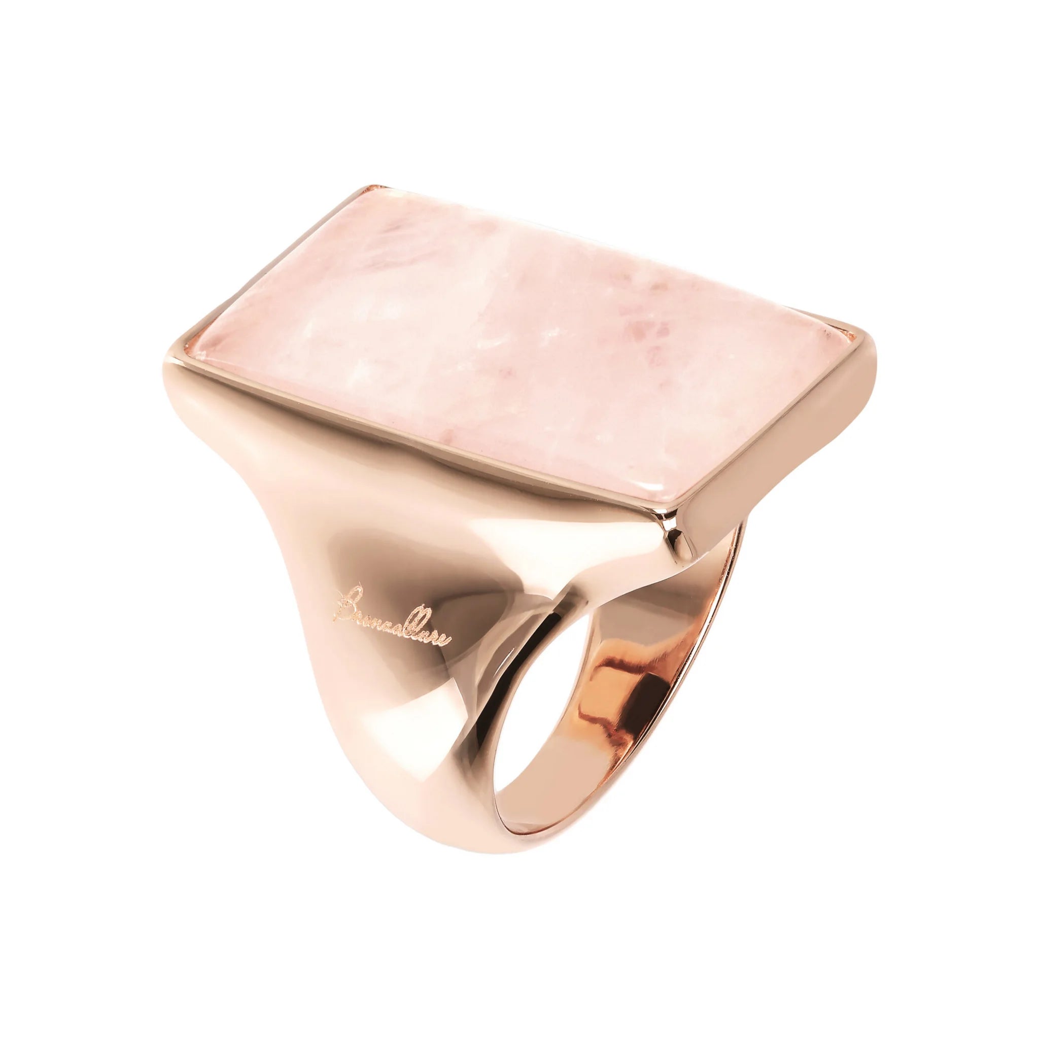 Bronzallure chevalier ring made of Golden Rosé alloy, 18kt rose gold plated, embellished with a natural stone in the center (16 mm) with a rectangular shape.