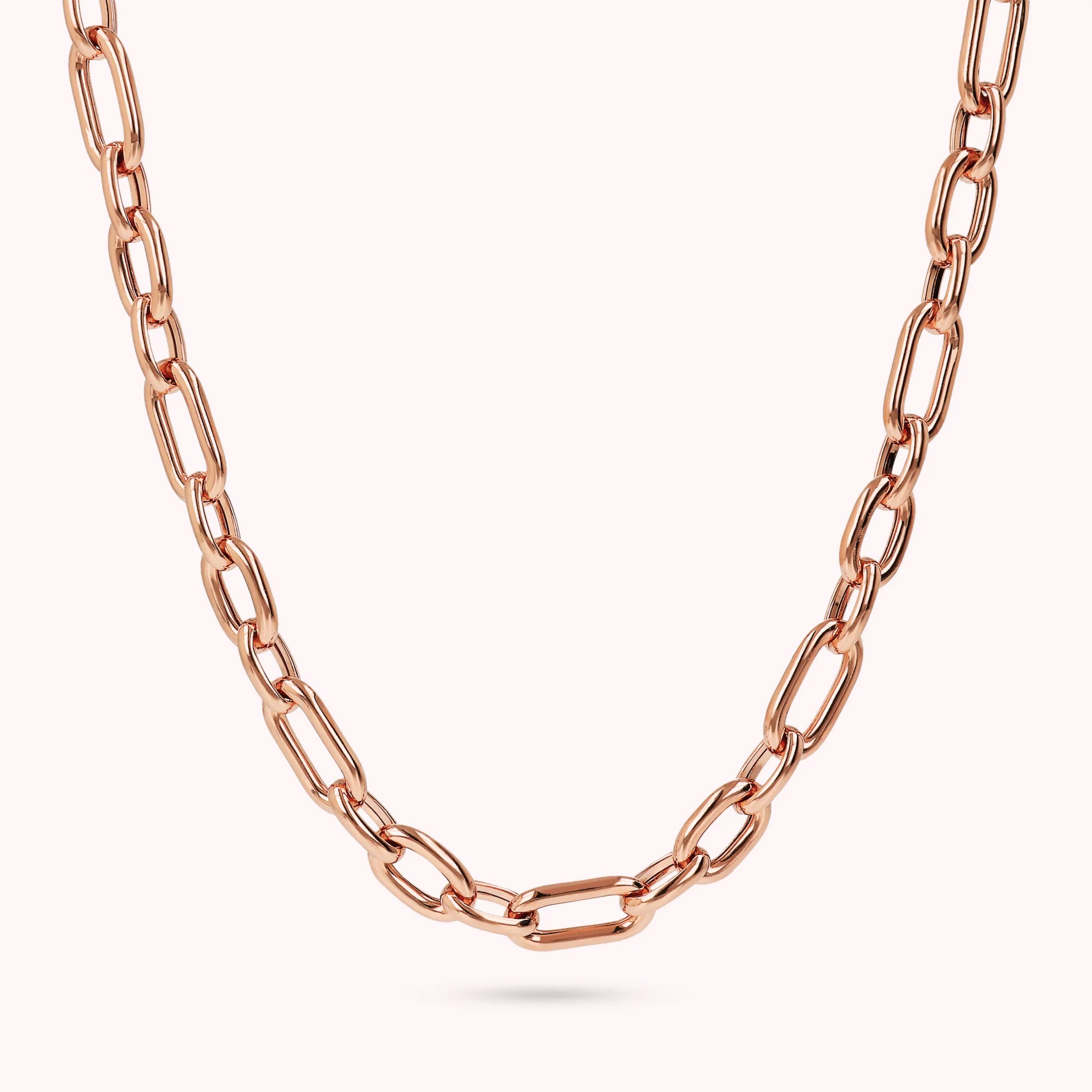 Bronzallure necklace made of Golden Rosé alloy, 18kt rose gold plated. Chain with lobster clasp, formed by alternating large and small elongated links.