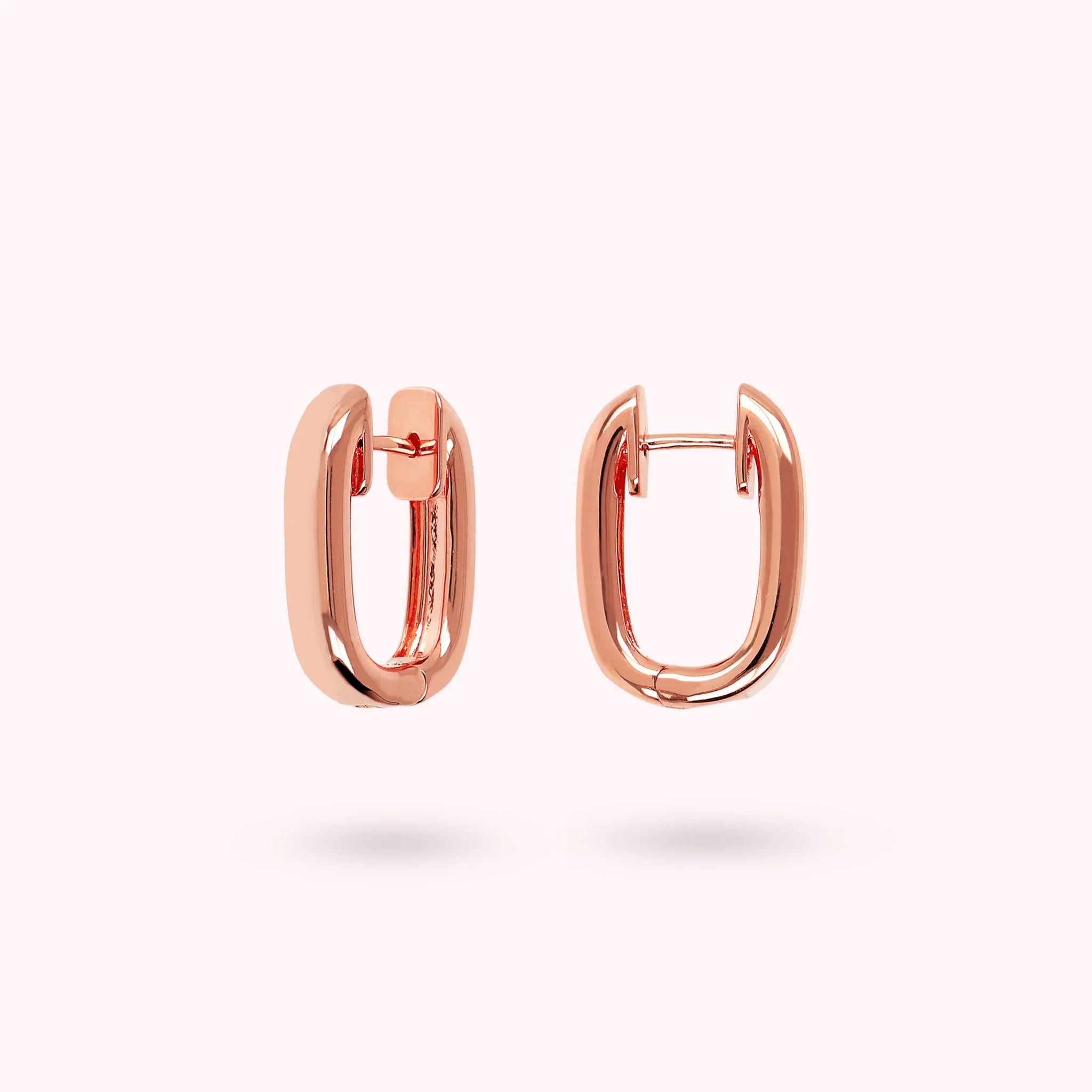 Bronzallure hoop earrings made of Golden Rosé alloy, 18kt rose gold plated, with a square oval shape; closure with interlocking pin.