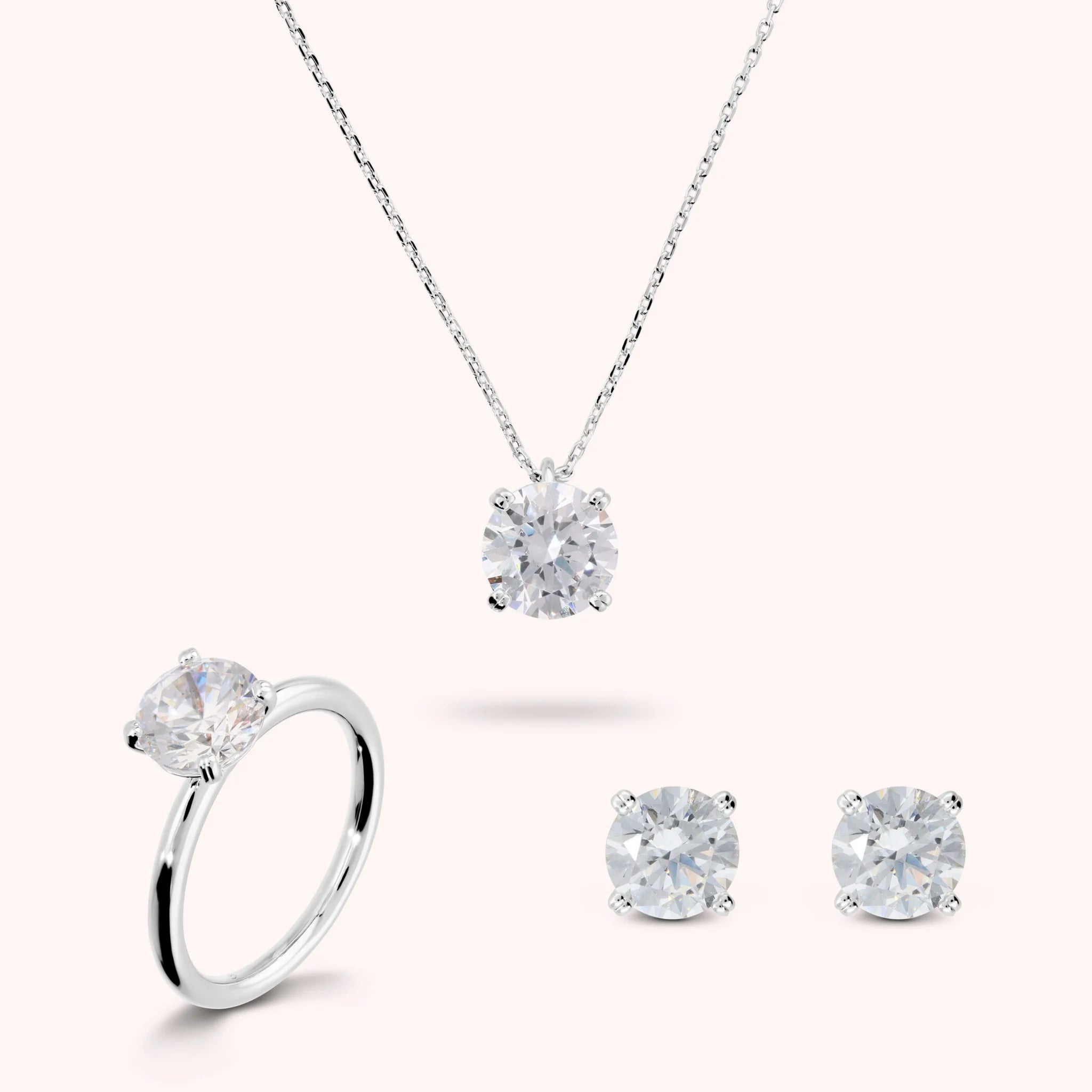 Necklace Set + Earrings + Solitaire Ring with White Cubic Zirconia Light Point